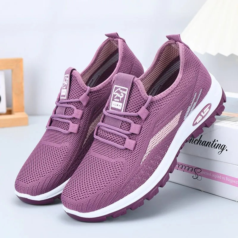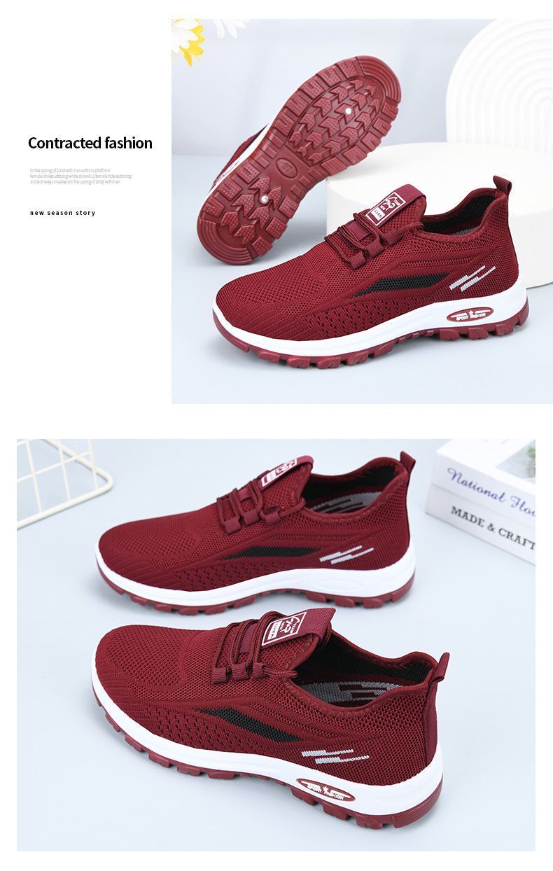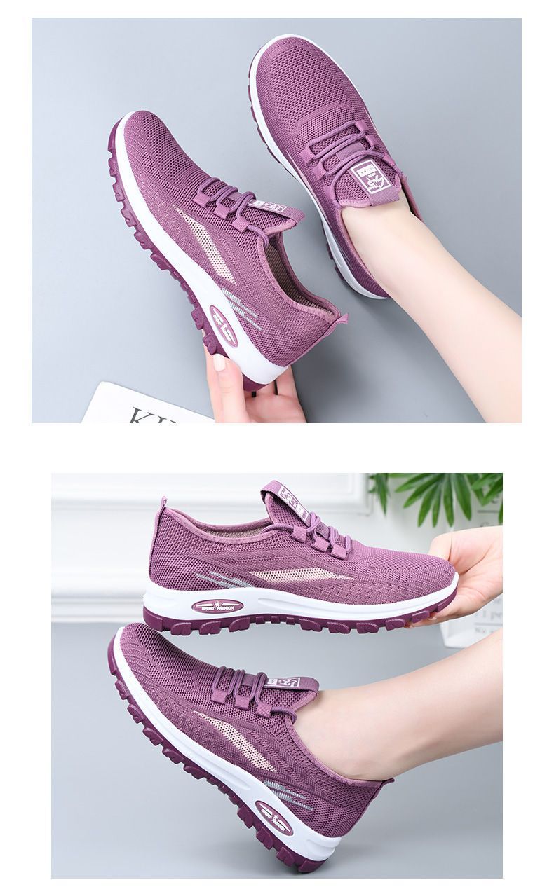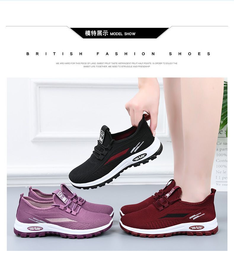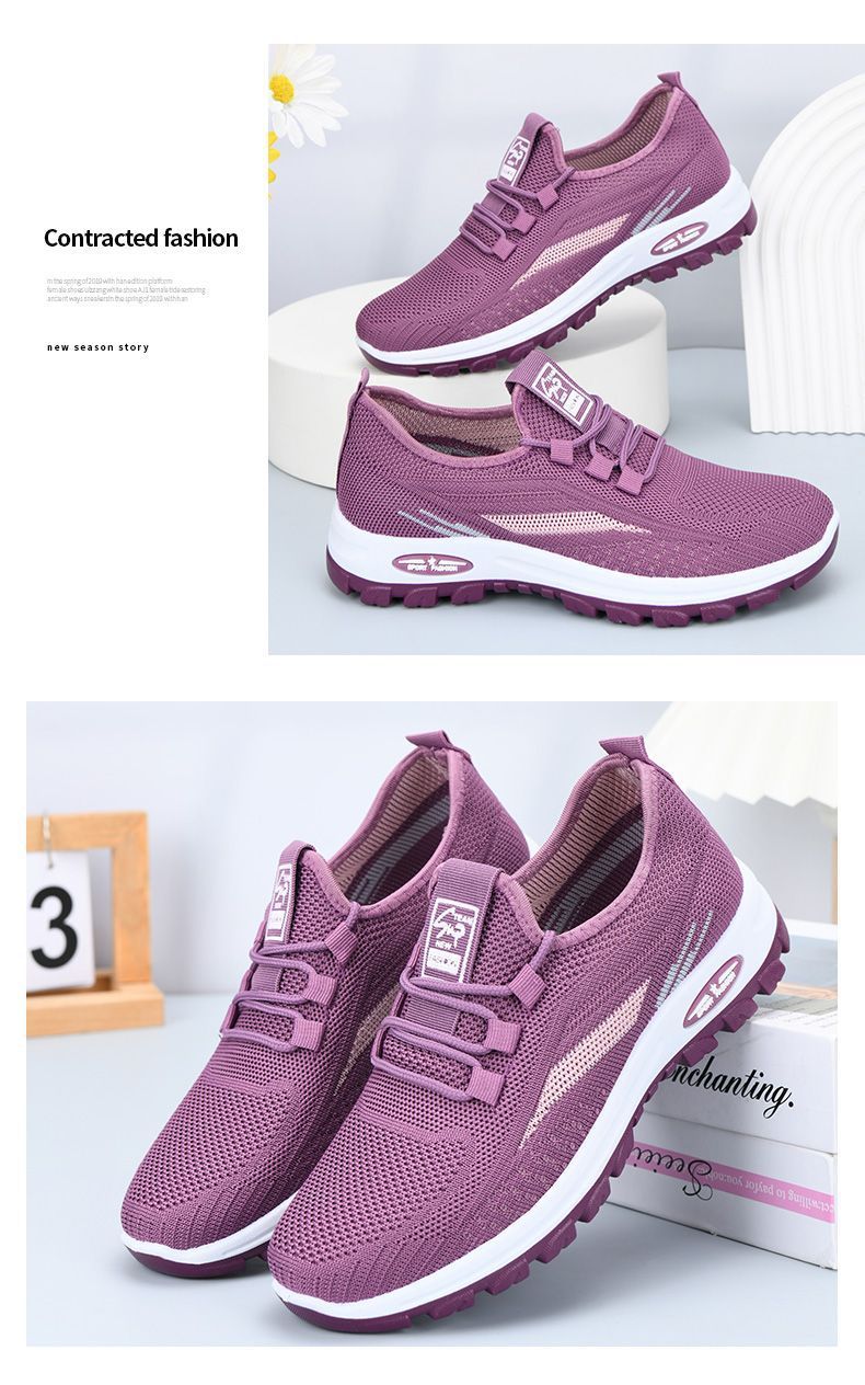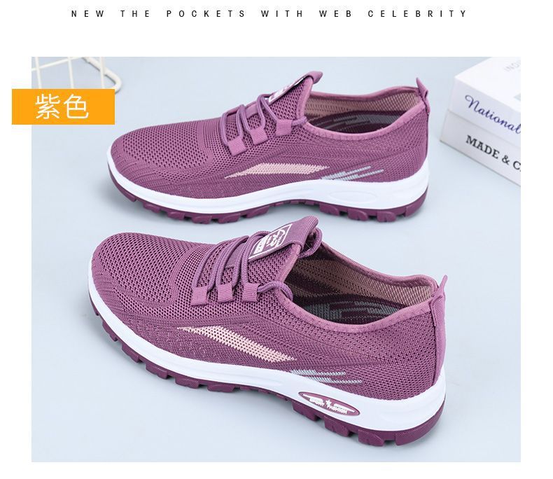 국경 간 워킹 슈즈 가을 새로운 레저 플라잉 짠 메쉬 여성용 소프트 솔 피곤하지 않은 발 올 매치 여행 엄마의 싱글 슈즈스토어 가기