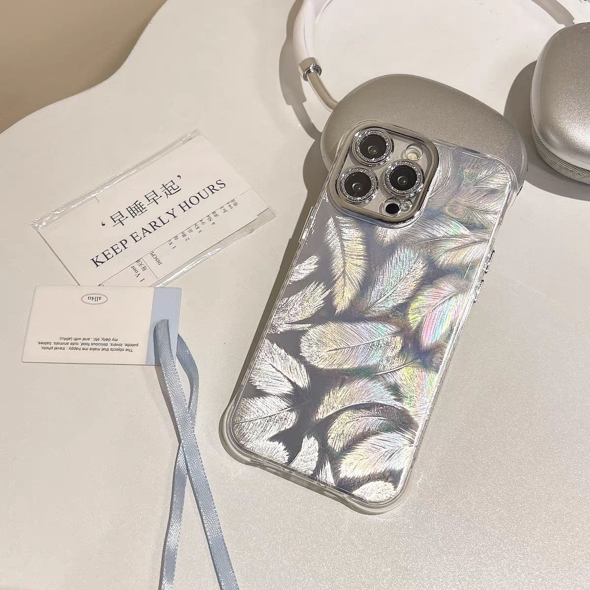 새로운 15Promax 깃털 원사 반짝이 렌즈 보호 커버 4 코너 에어백스토어 가기