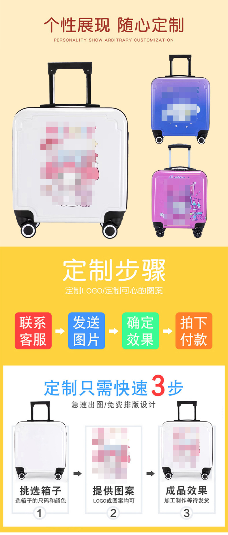 공장 도매 어린이 트롤리 케이스 인쇄 로고 귀여운 만화 수하물 아기 국경 초등학생 여행 가방스토어 가기