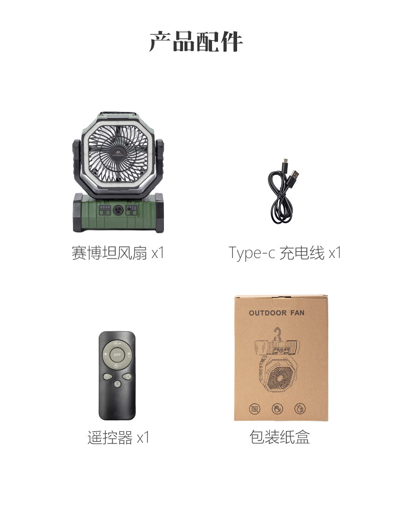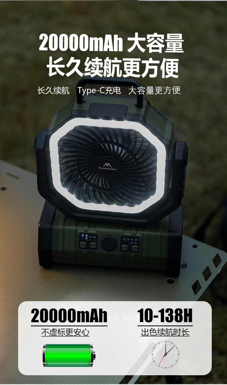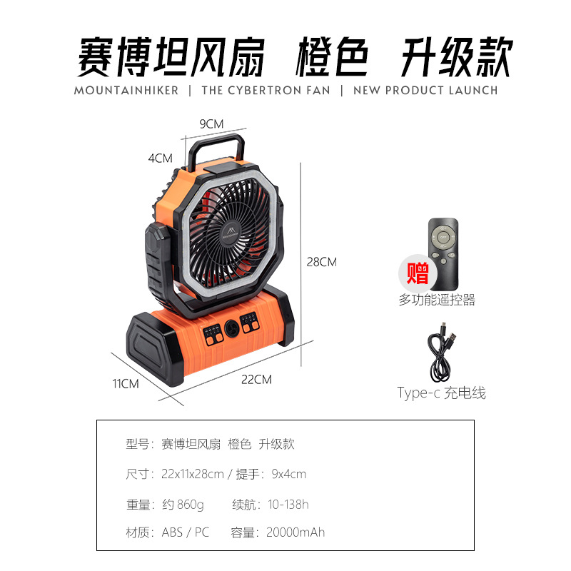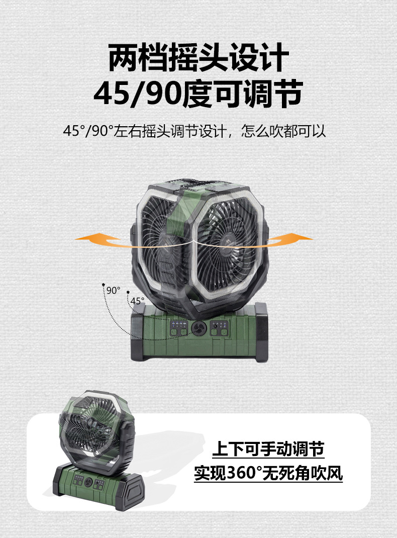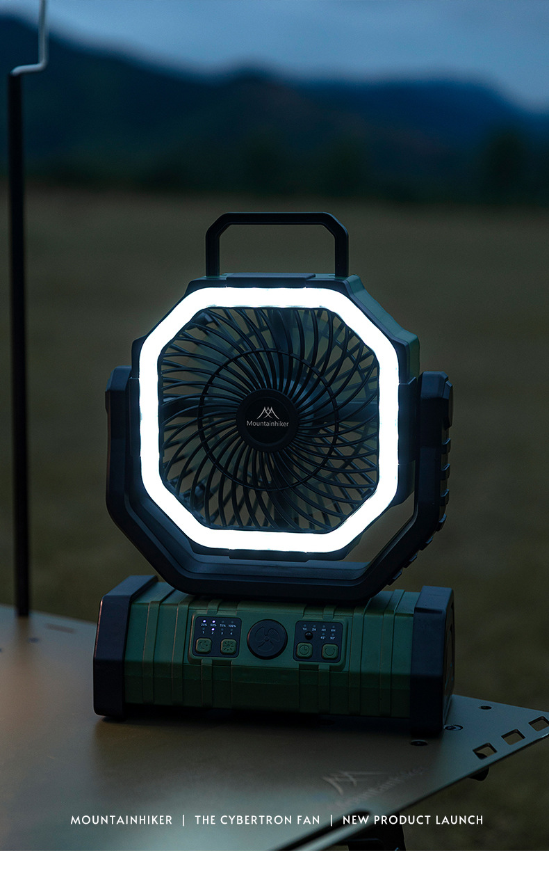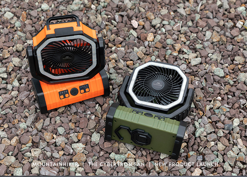 Shanzhi 고객 외부 휴대용 대용량 속도 조정 가능한 충전 캠핑 데스크 팬 데스크톱 팬 조명 사이버 트론 팬