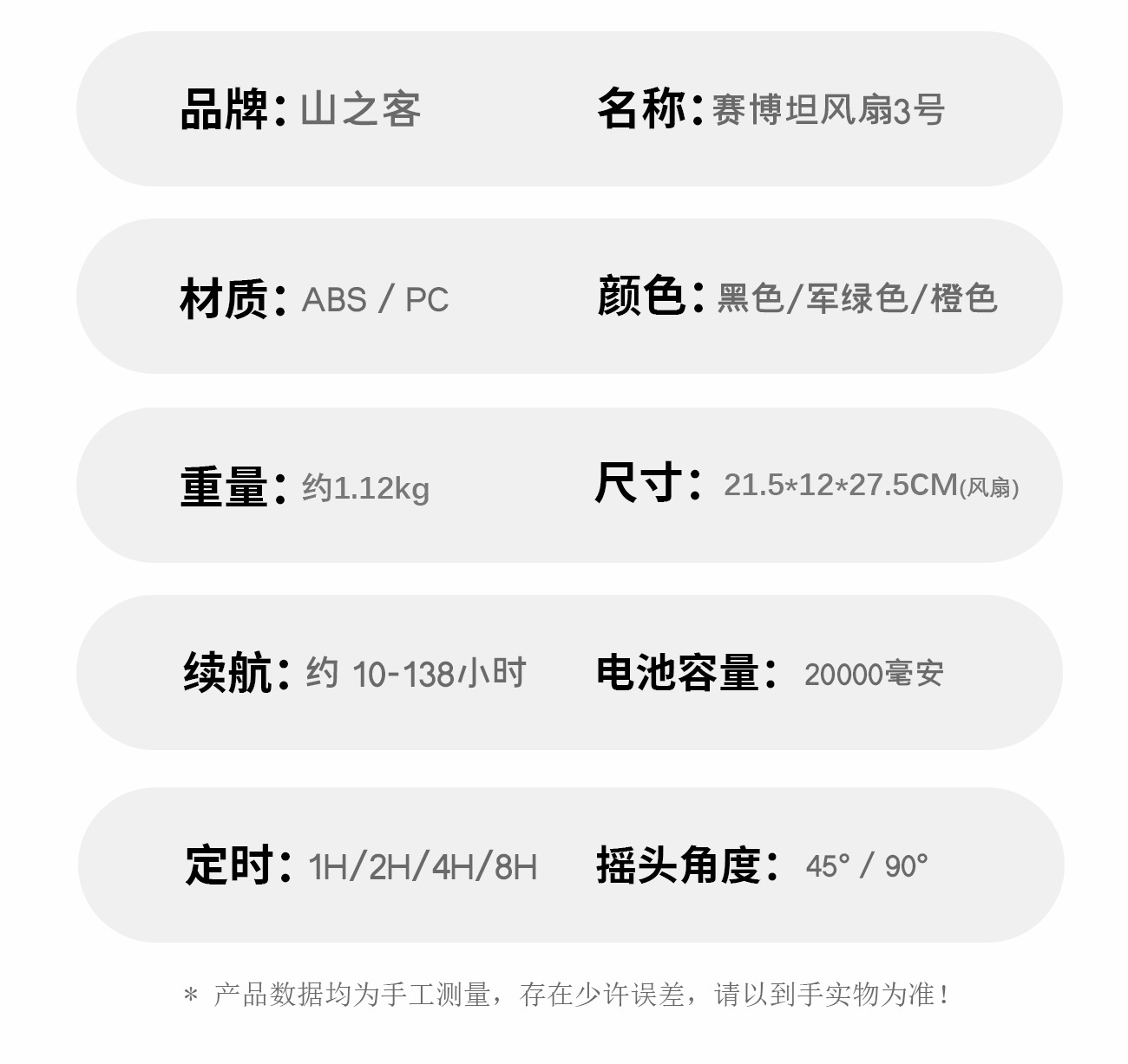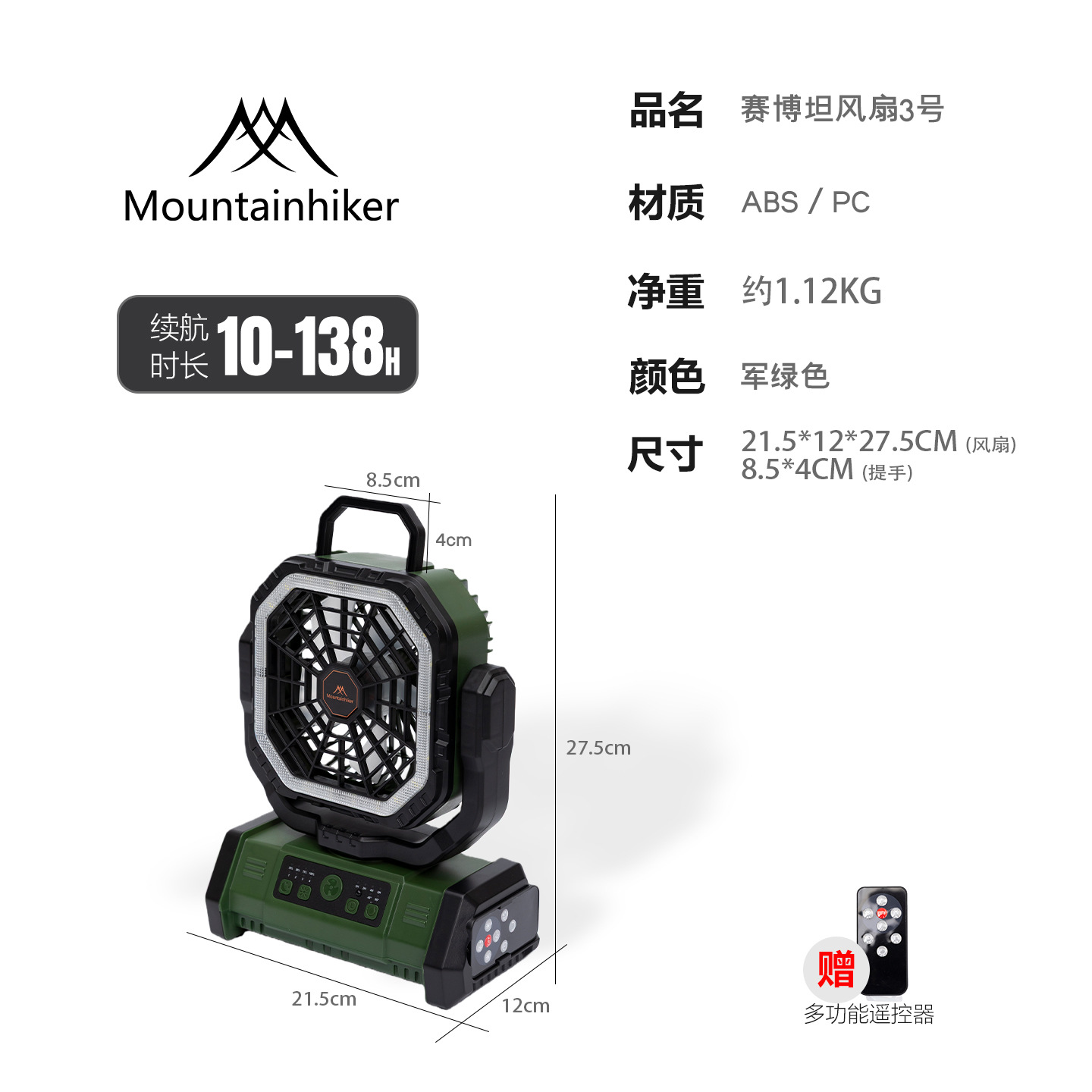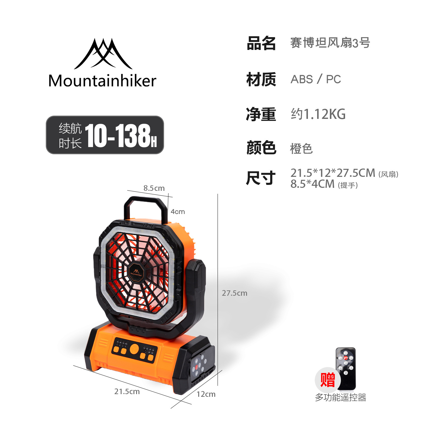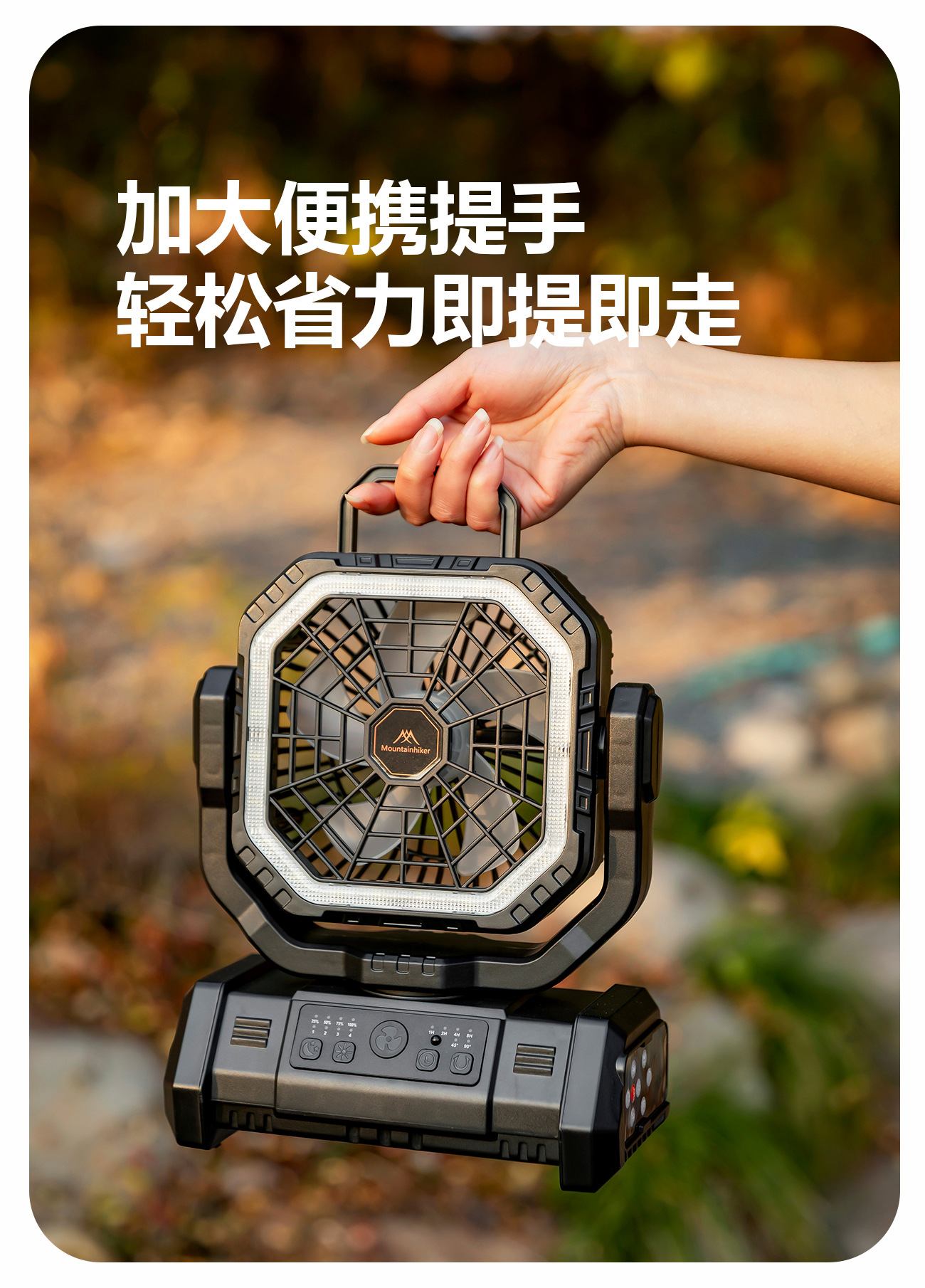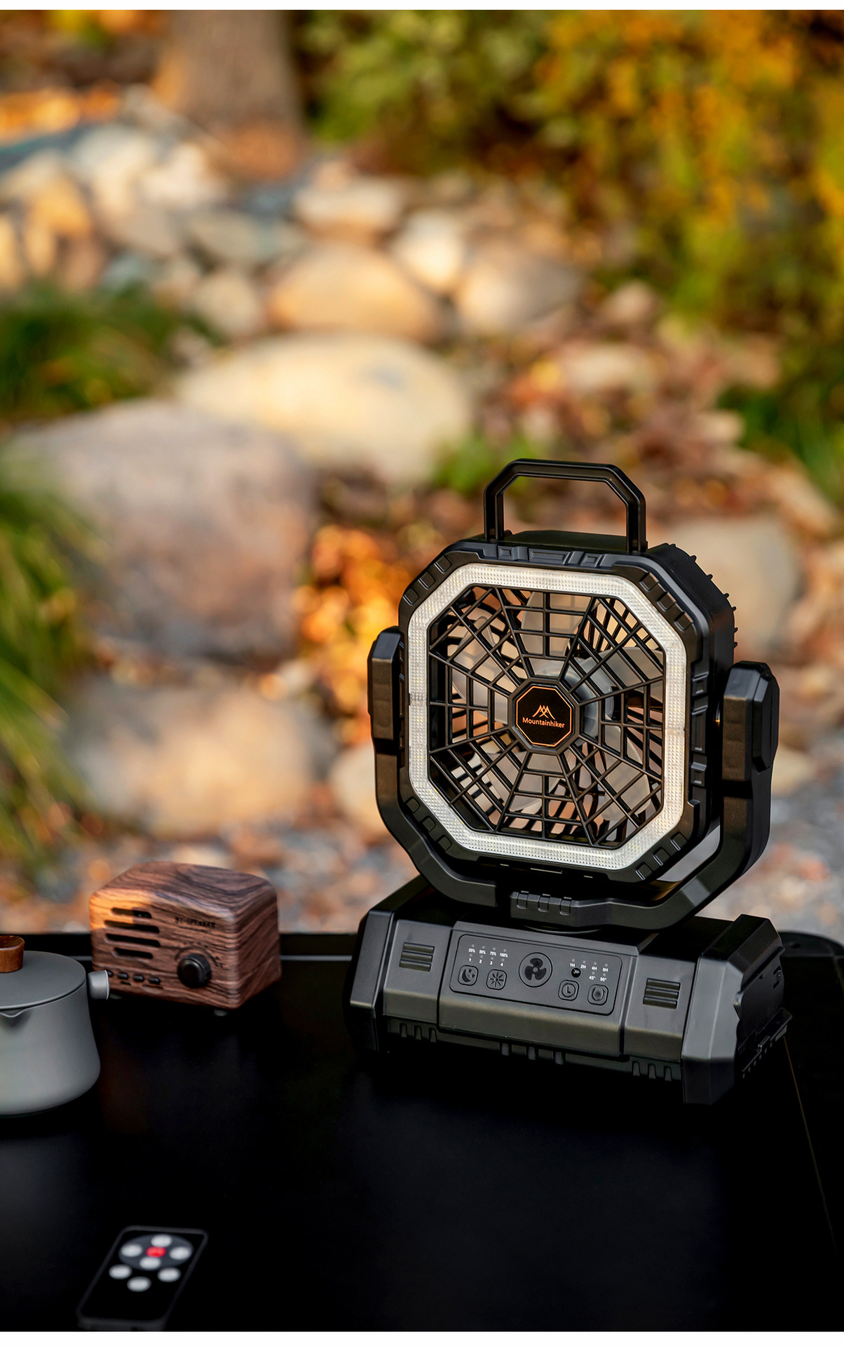 산악객 야외용 휴대용 4단계 원격 제어 충전식 캠핑 테이블 팬, 다기능 조명 기능 포함스토어 가기