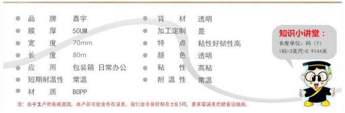 常熟市嘉宇包装制品有限公司是一家经国家相关部门批准注册的企业。公司凭着良好的信誉 、优良的服务与多家企业建立了长期合作关系。主要经营:透明胶带、彩色胶带、警示胶带、淘宝 胶带、布基胶带、养生胶带、牛皮纸胶带、美纹纸胶带、高温单/双面胶带系列、双面胶带系列、汽 车泡棉单/双面胶胶带系列、普通双面胶、PE缠绕膜拉伸膜系列、气泡膜、珍珠棉、打包带、手用封 口机、全自动打包机、打包扣等系列为一体的专业化公司。 常熟市嘉宇包装制品有限公司 本着“客户第一,诚信至上”的原则为广大客户提供优质的服务, 欢迎广大客户惠顾、洽谈业务。本公司将与你一起共创辉煌!