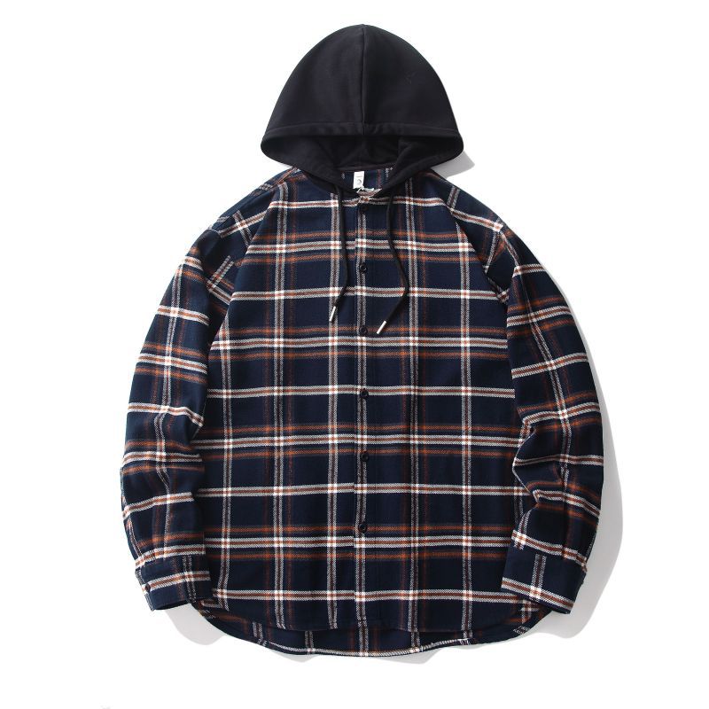 힙합 미국식 일본 복고풍 격자 무늬 소년 가을 디자인을위한 긴 소매 후드 셔츠스토어 가기
