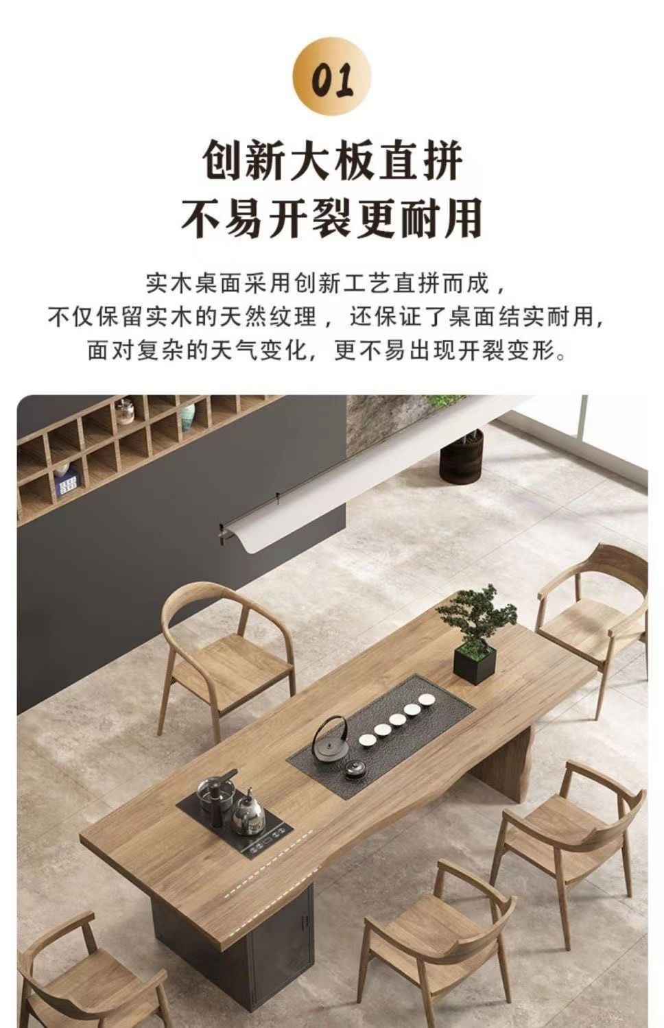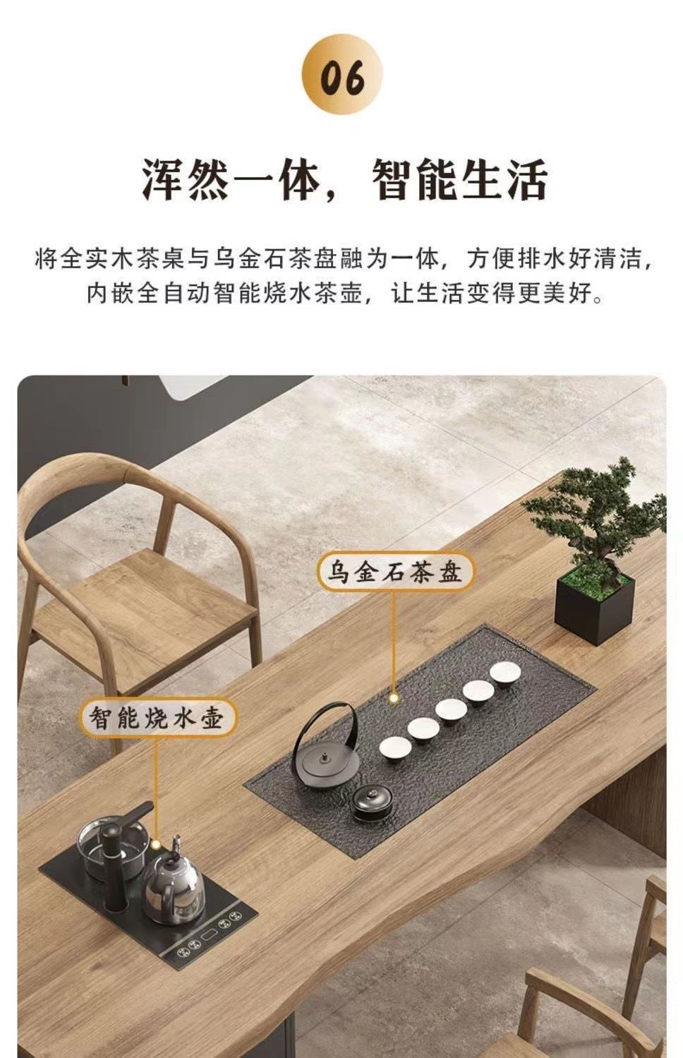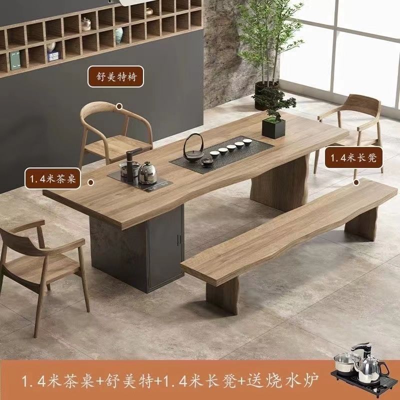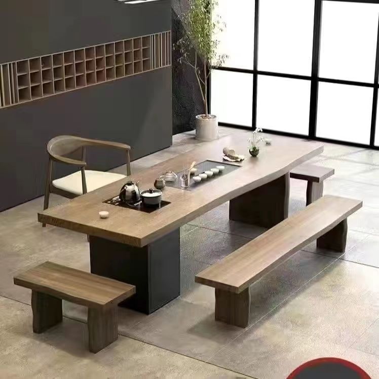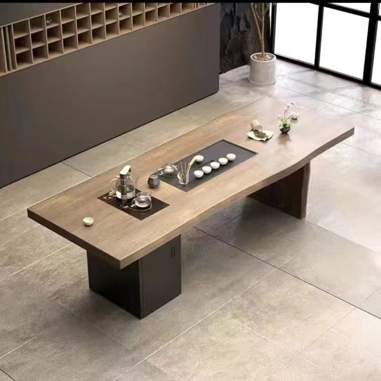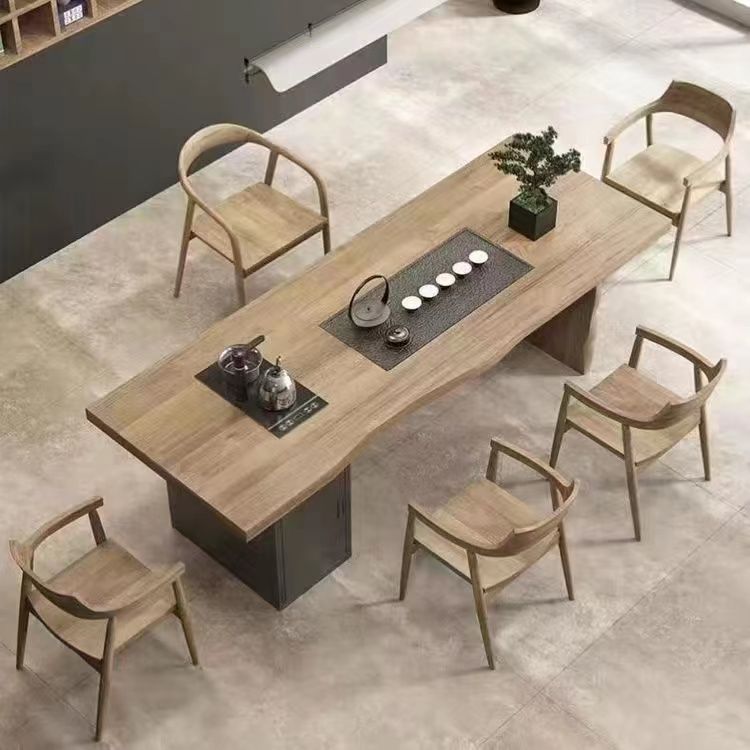 새로운 중국 스타일 풀 솔리드 우드 대형 플레이트 티 테이블과 의자 조합 현대 간단한 홈 임베디드 원피스 쿵푸 티 테이블 도매스토어 가기