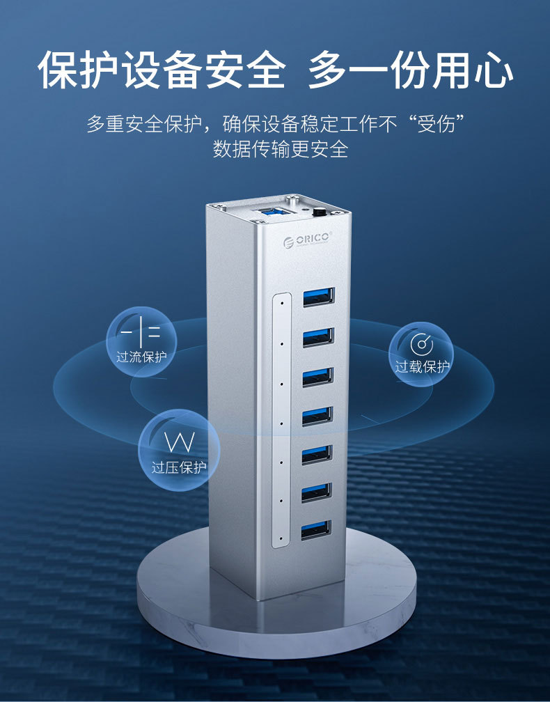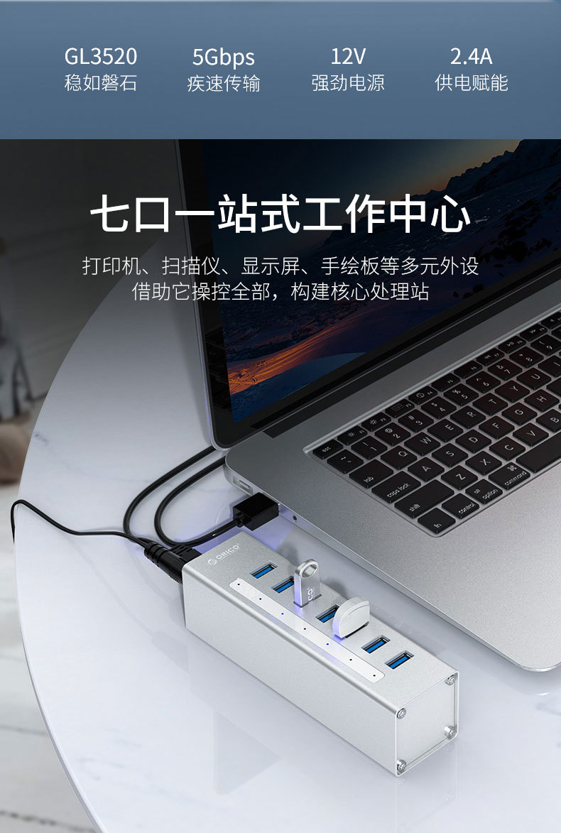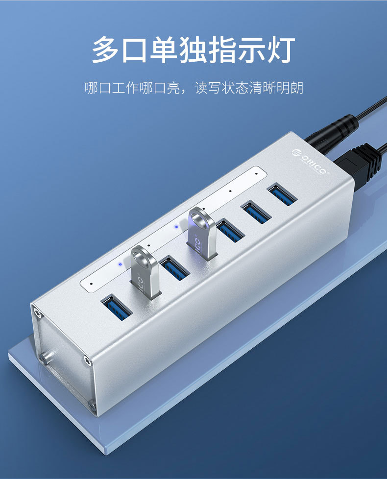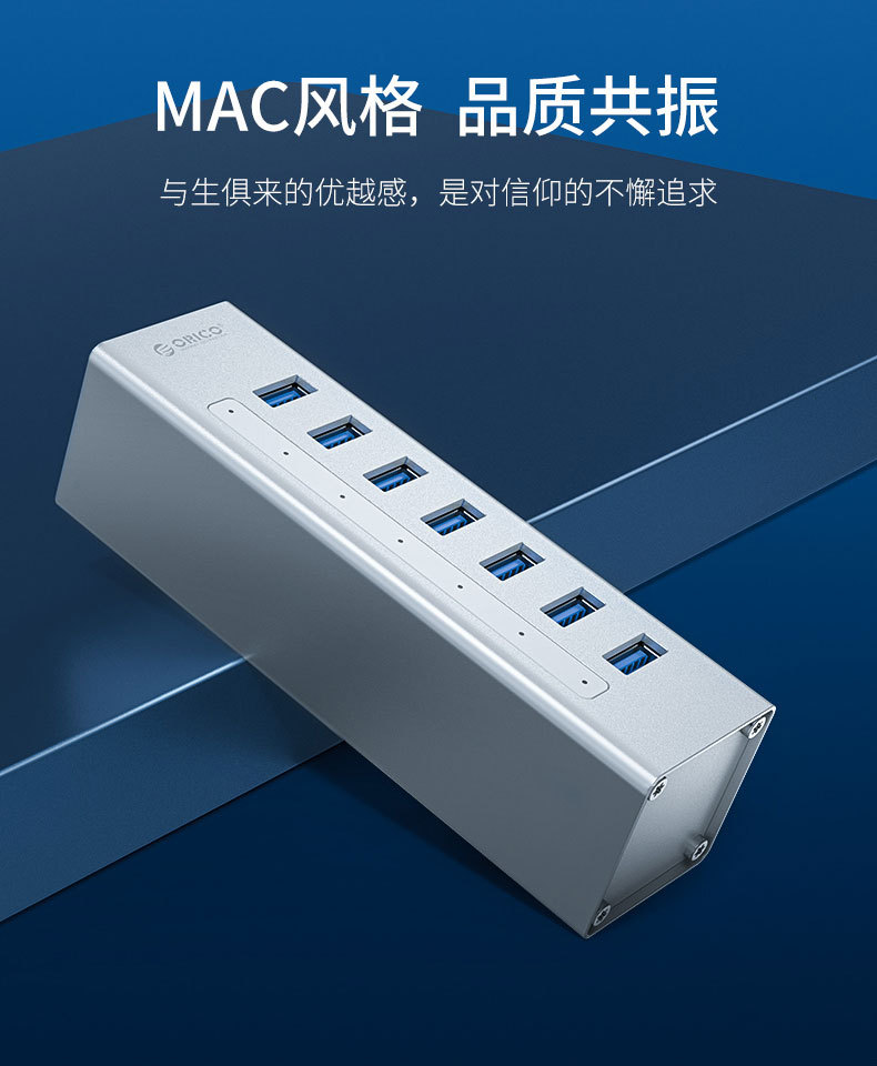 融入VIA全新版本纯正USB3.0芯片方案,结合ORICO多年扩展PCB研发经验,使A3H7拥有更低的功耗,更优越的宽带分配。采用先进的USB PHY技术可以在不同扩展通道下保持各种接口5Gbps全速运行,并保持信号完整性,接口互不干扰