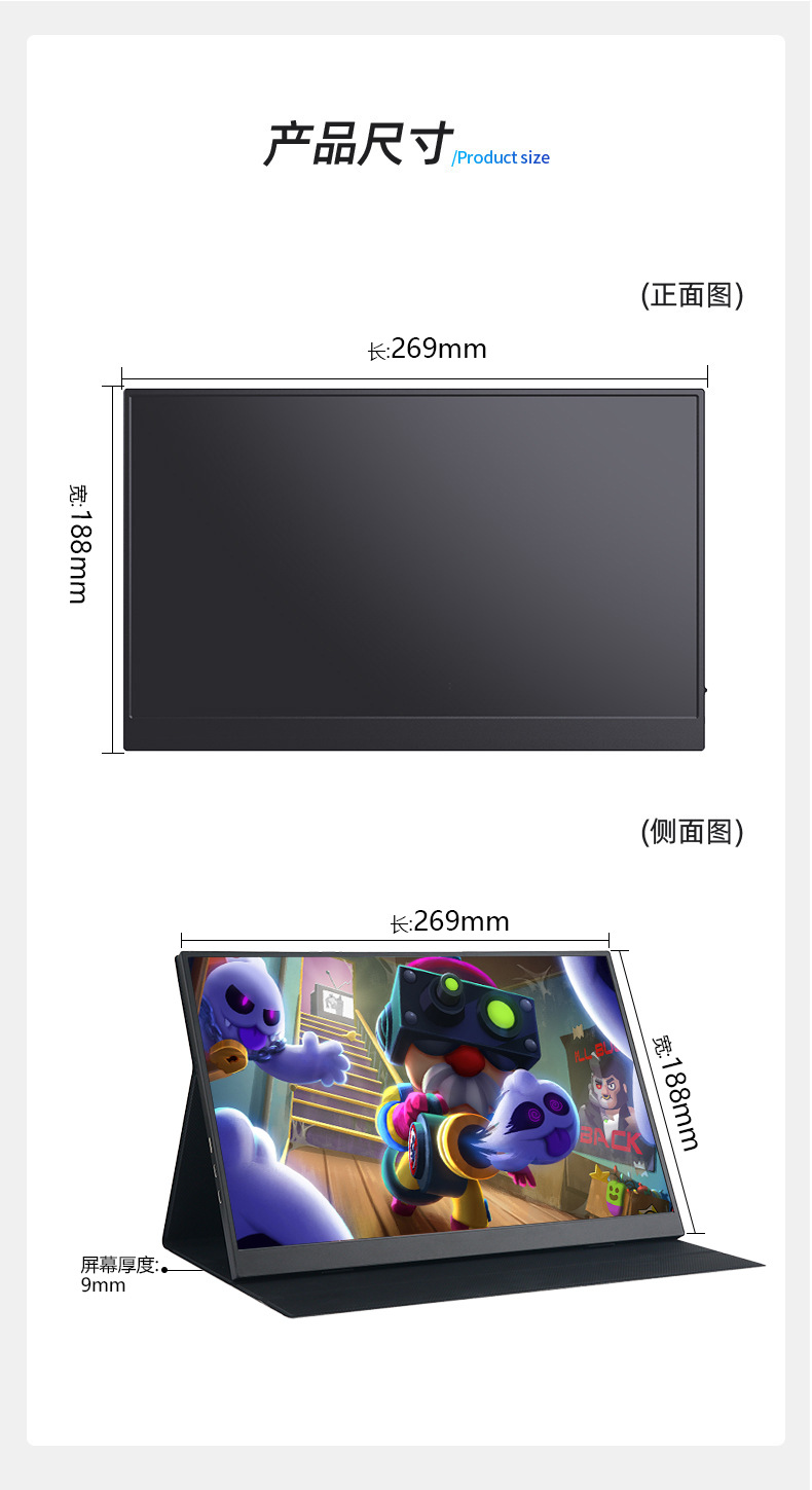12.3인치 1.2K/60HZ 일선 직접 연결 게임 휴대용 모니터 엔터테인먼트 오피스 확장 휴대용 보조 화면