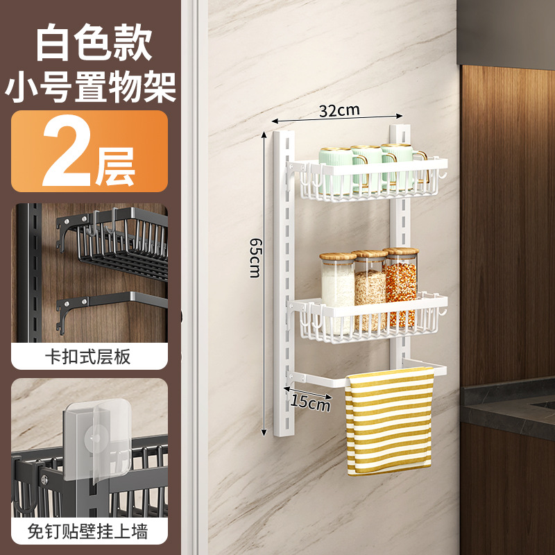 주방용 못 없이 설치 가능한 다층 조미료 병 보관대, 조절 및 분리 가능, 문 뒤 벽걸이형 수납 바구니, 벽면 수납 바구니스토어 가기