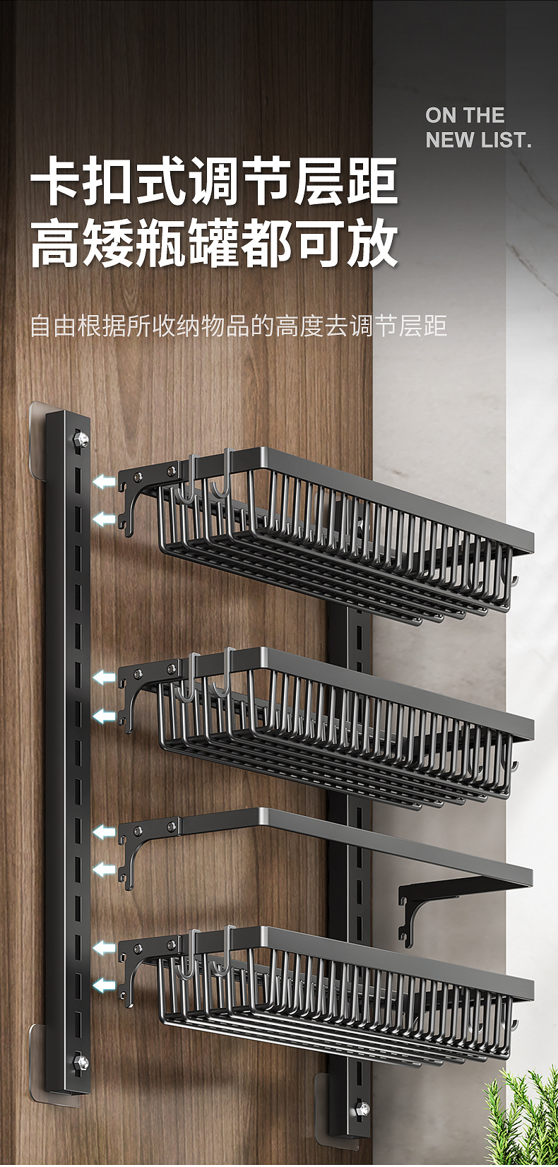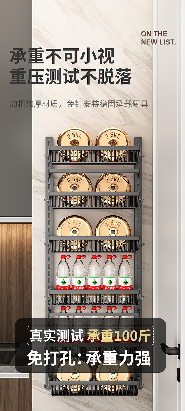 주방용 못 없이 설치 가능한 다층 조미료 병 보관대, 조절 및 분리 가능, 문 뒤 벽걸이형 수납 바구니, 벽면 수납 바구니