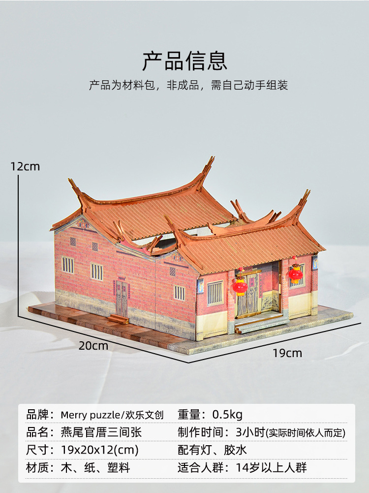 새로운 diy Cabin Guofeng Minnan Three Zhang Cuo Swallow Tail Ridge Rooms 수제 마이크로 모델 기념 선물