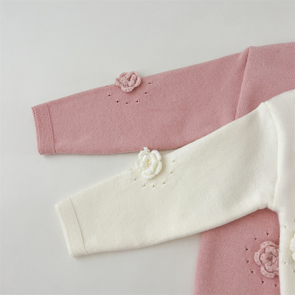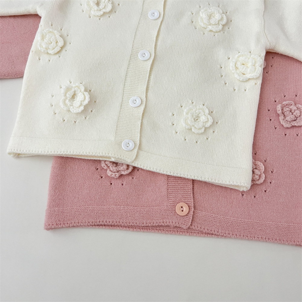 2024 가을과 겨울 새로운 소녀 수제 꽃 니트 카디건 가을과 겨울 새로운 아기 단색 양모 탑 거즈 스커트