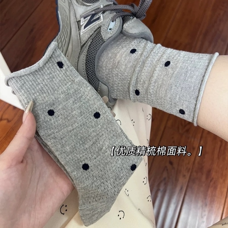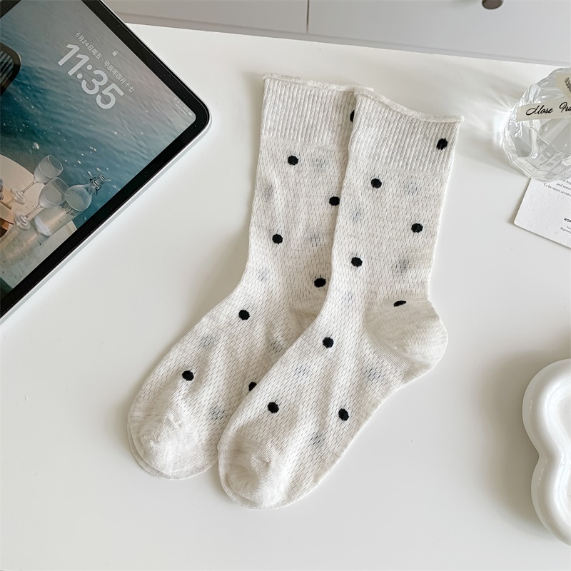 일본식 소녀의 설문 조사 도트 컬 양말 여성용 미드 양말 Ins 여름 얇은 할로우 메쉬 통기성 스택 양말