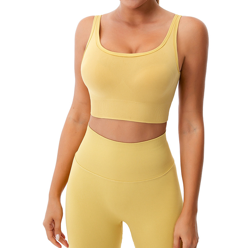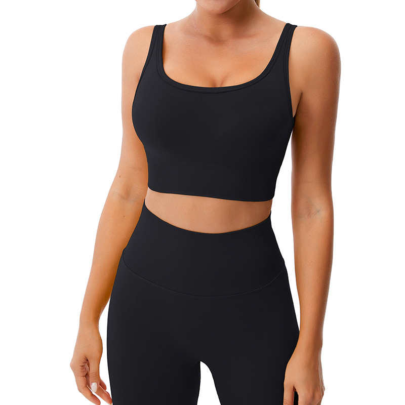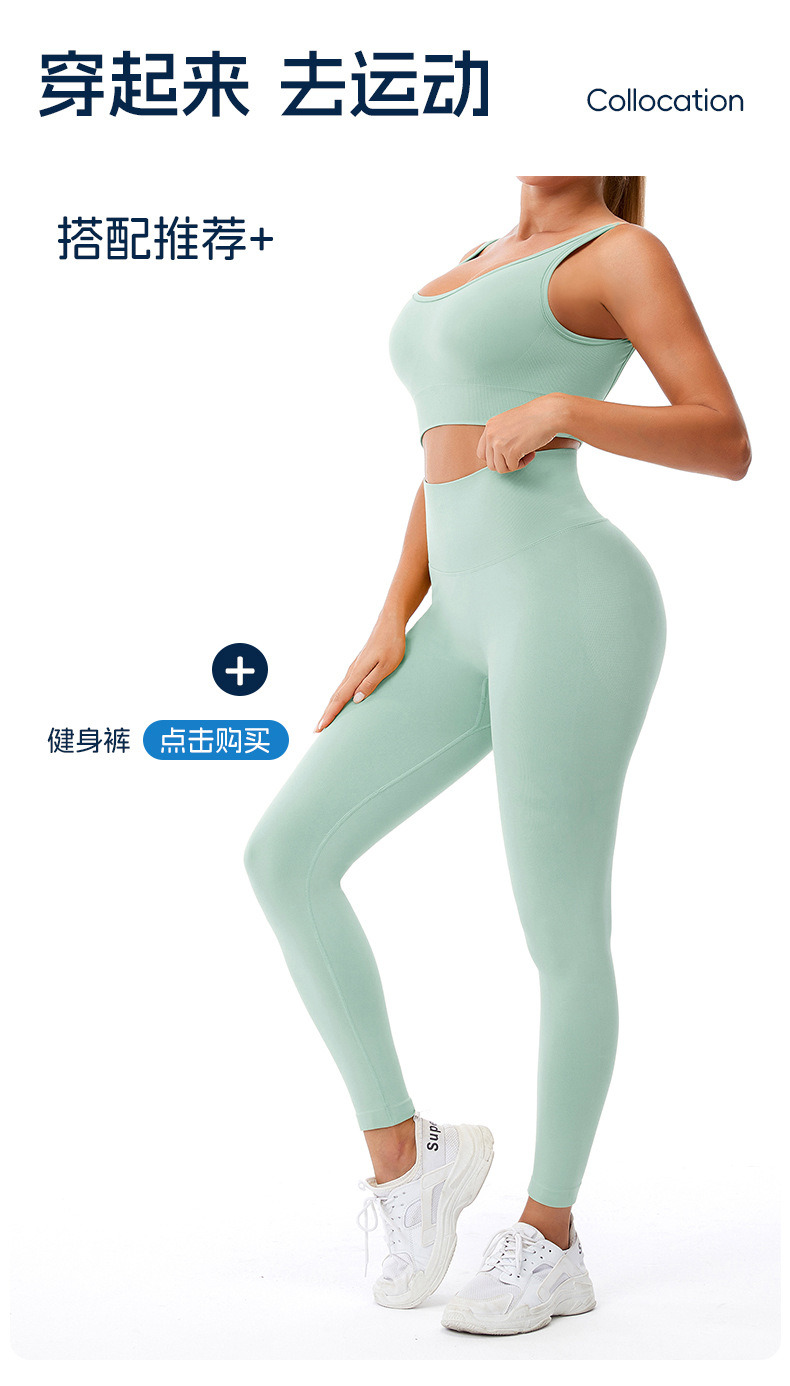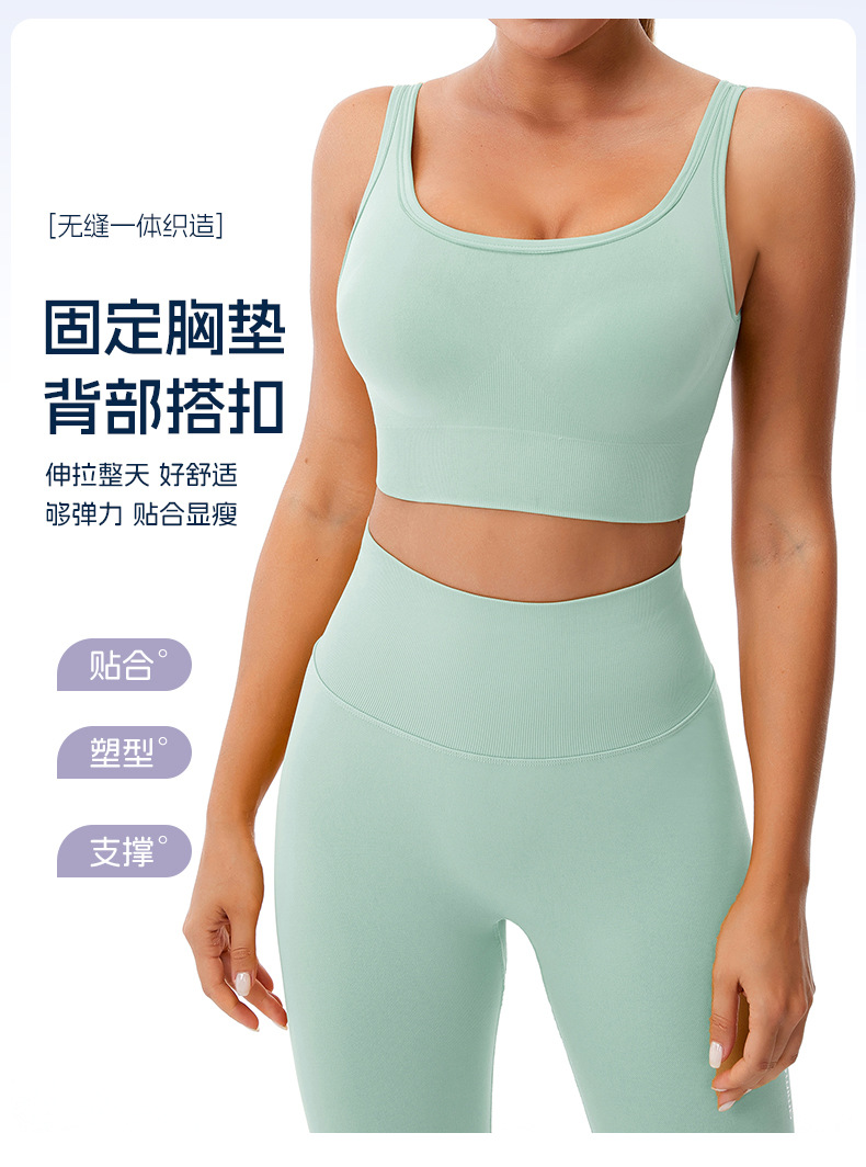 跨境健身文胸固定杯一体式胸垫运动内衣四排扣防震跑步瑜伽服背心