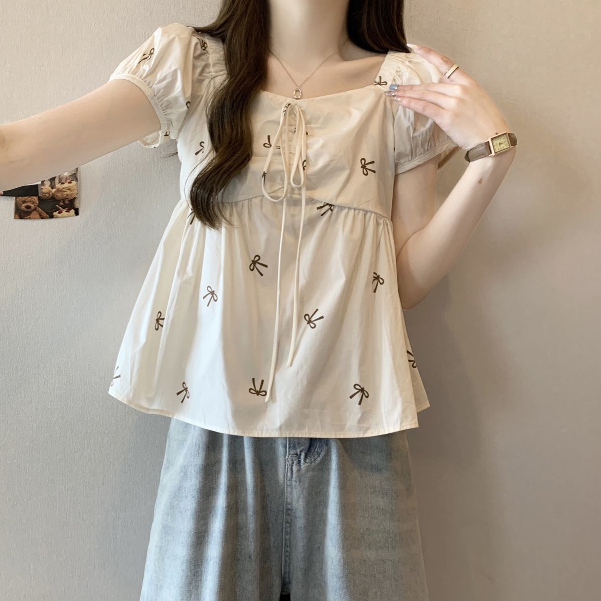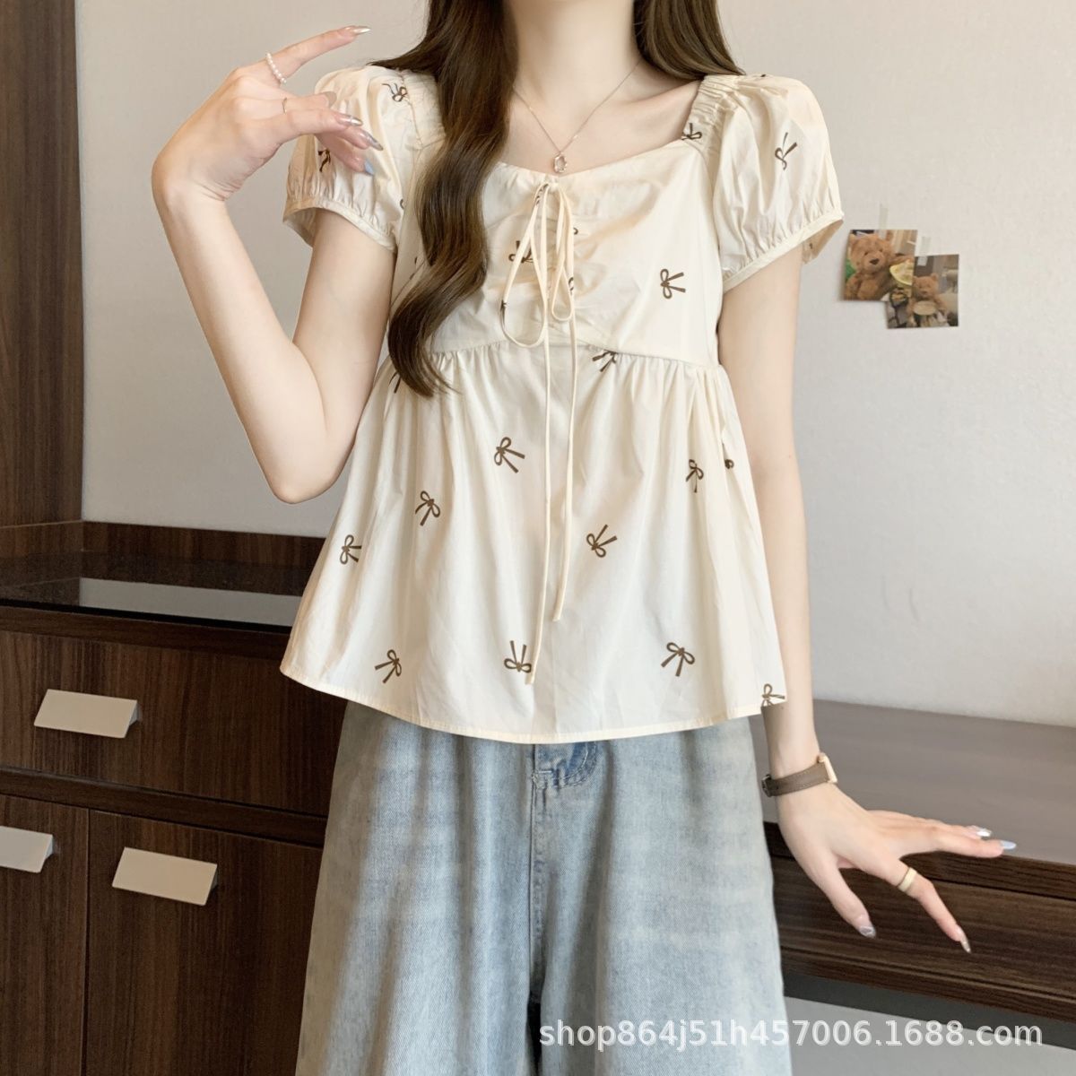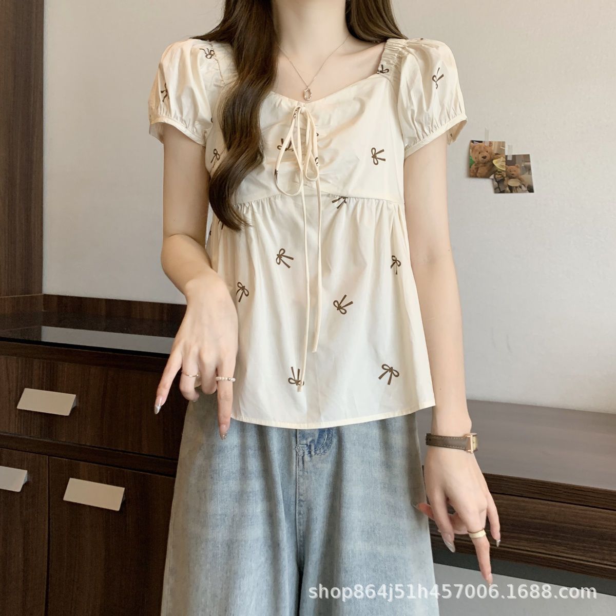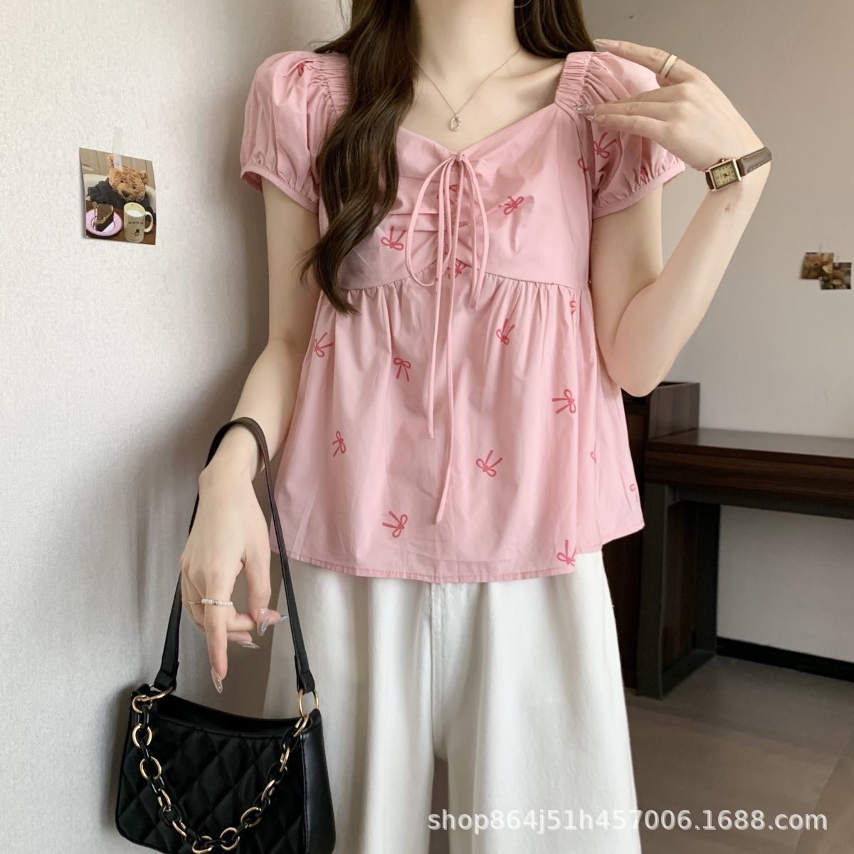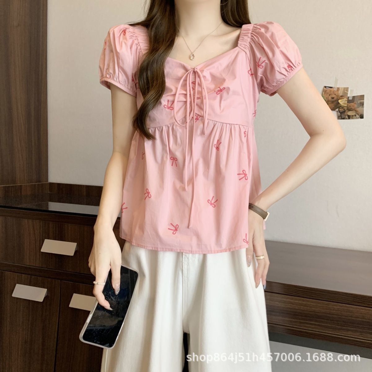 새로운 스파이스 소녀 활 인쇄 셔츠 여성의 여름 디자인 레이스 업 슬리밍 짧은 거품 여성의 여름 탑