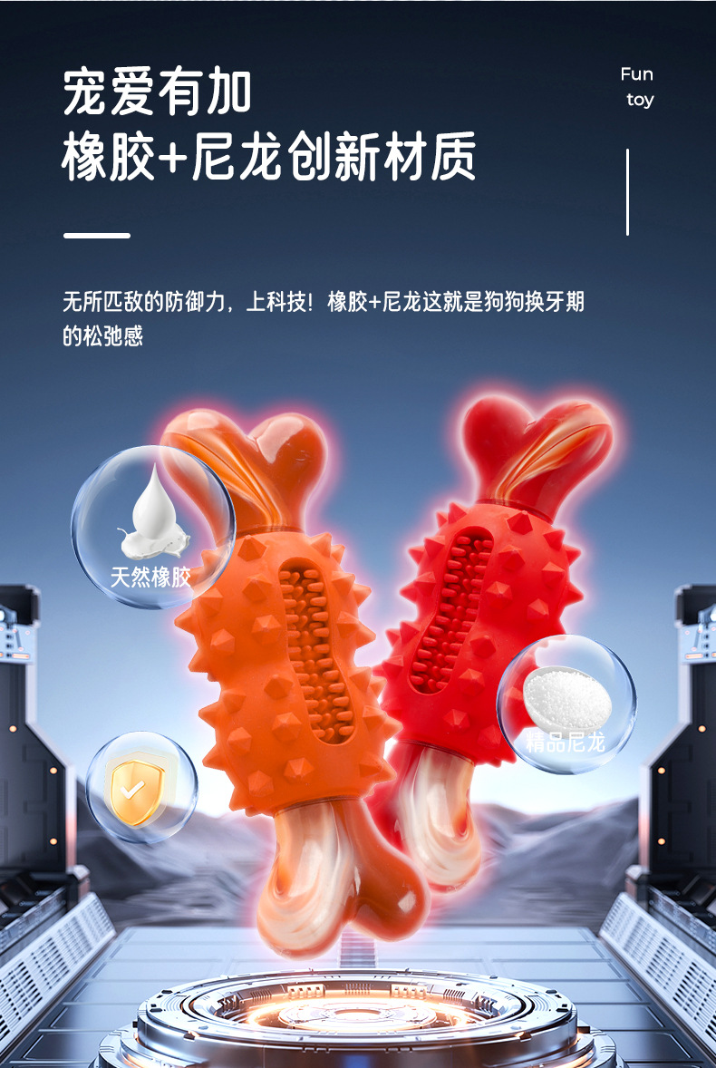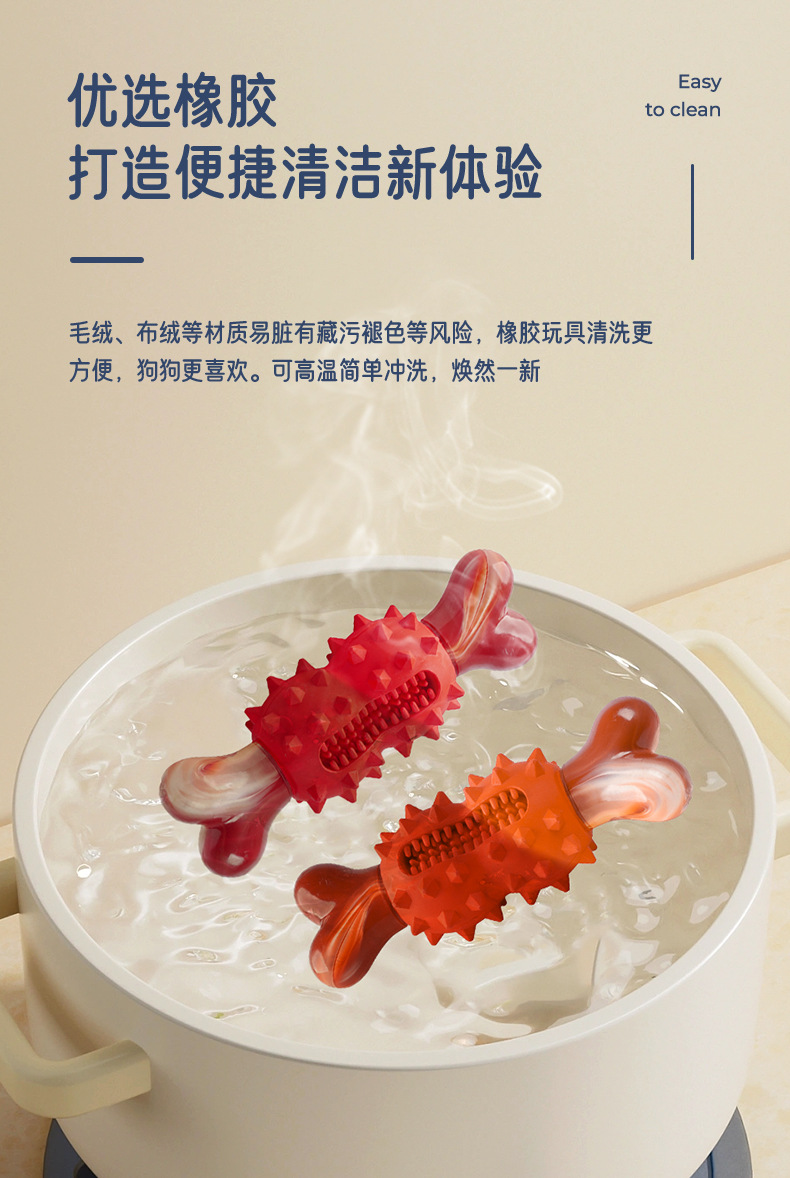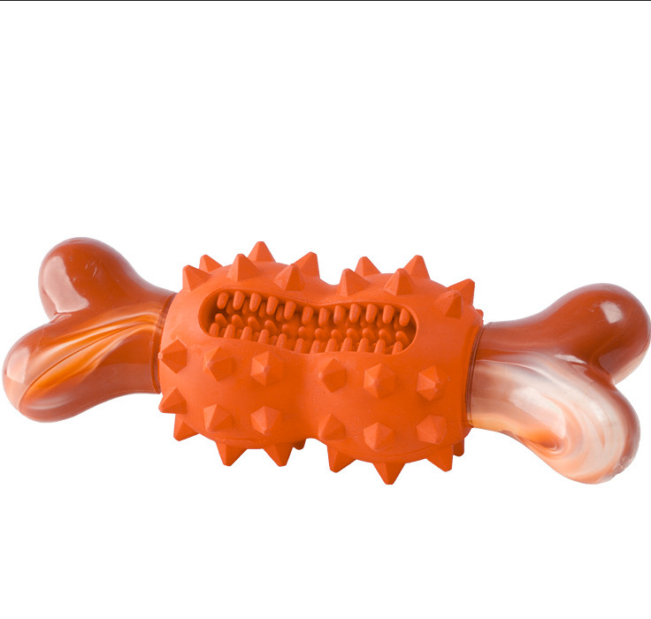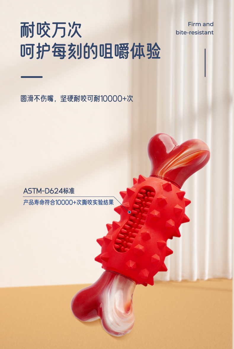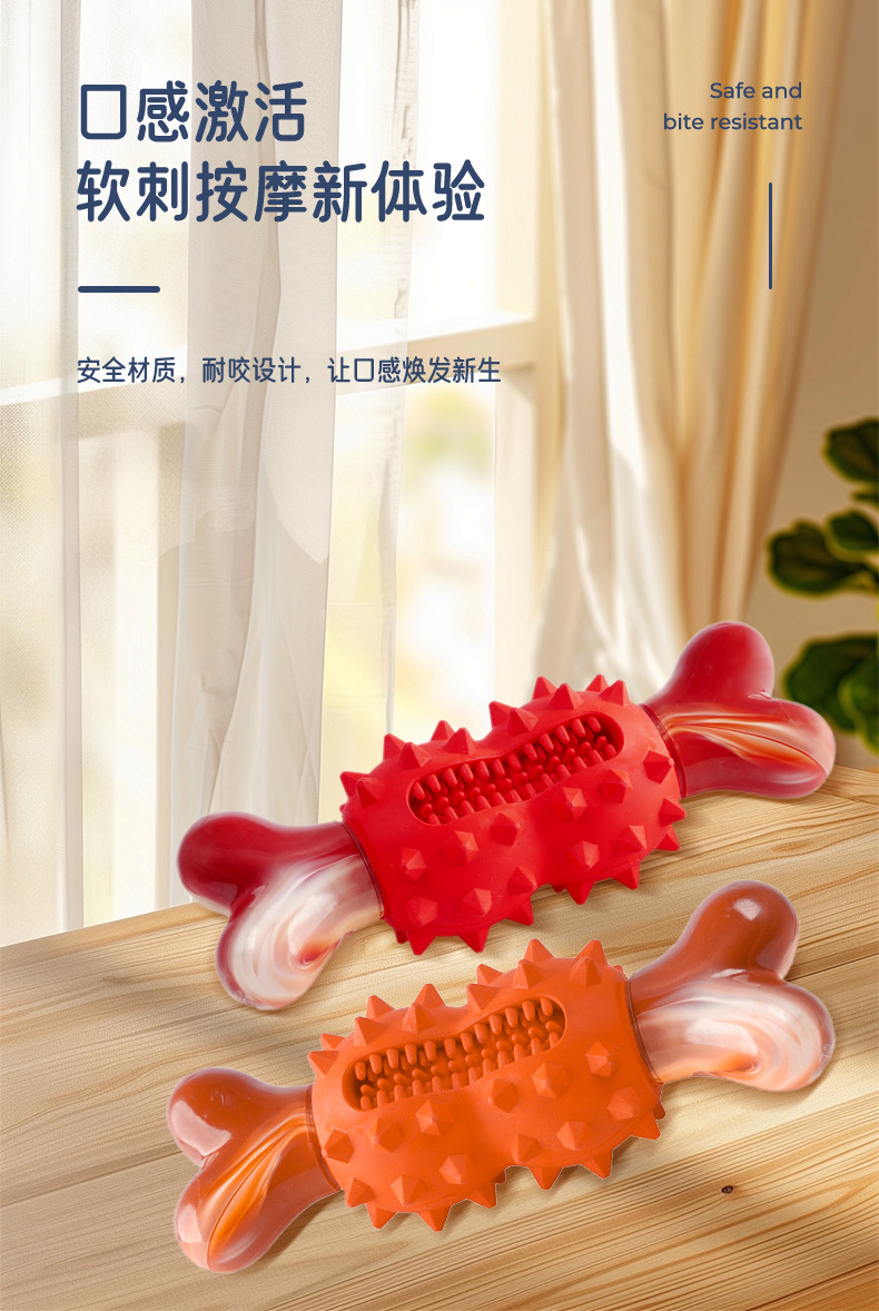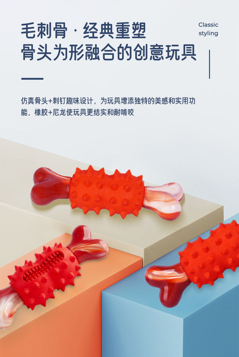 现货天然橡胶磨牙尼龙骨头洁齿狗狗玩具包胶刺骨互动自嗨解闷玩具