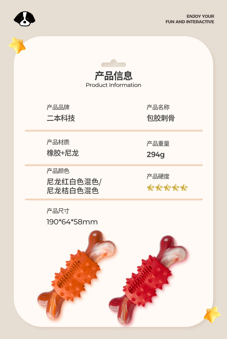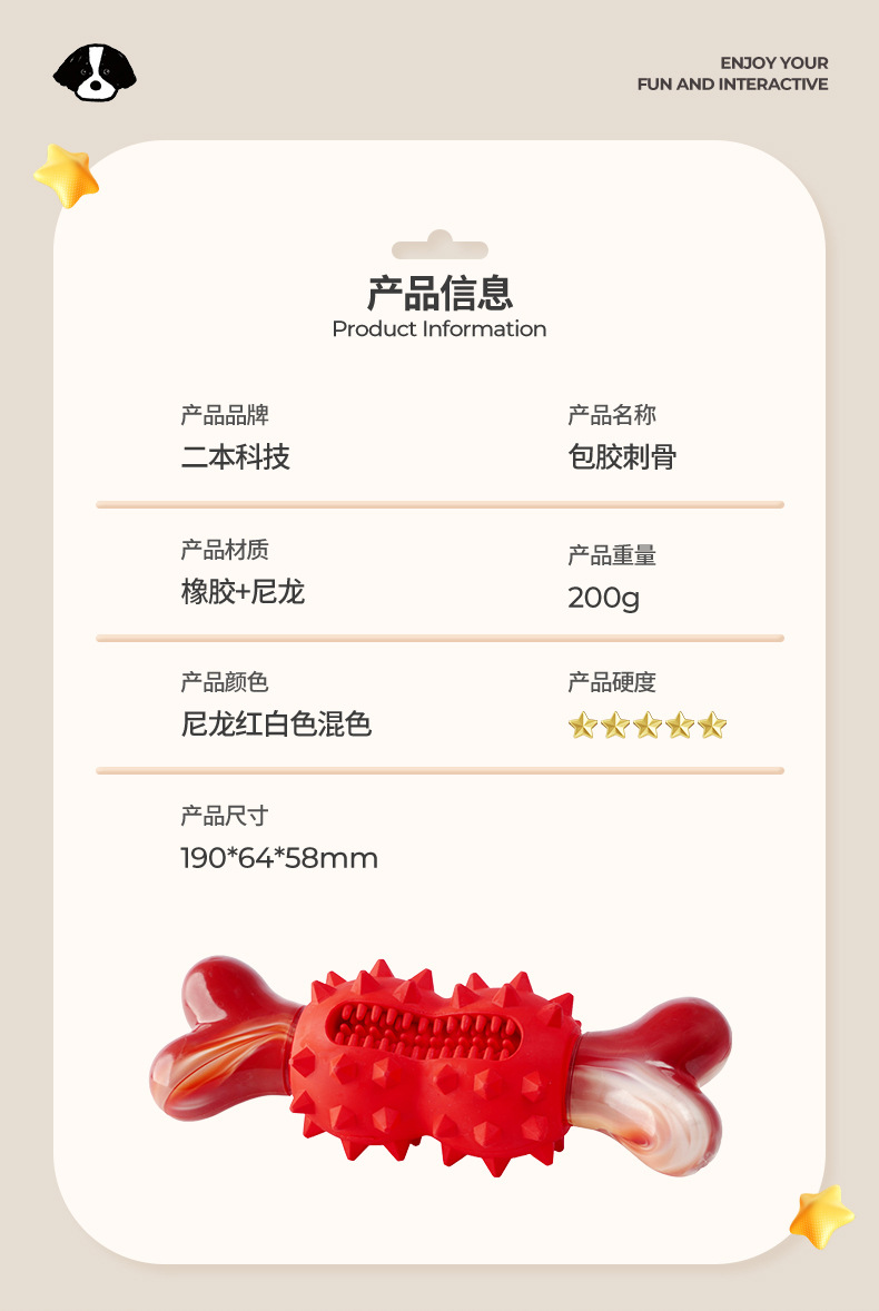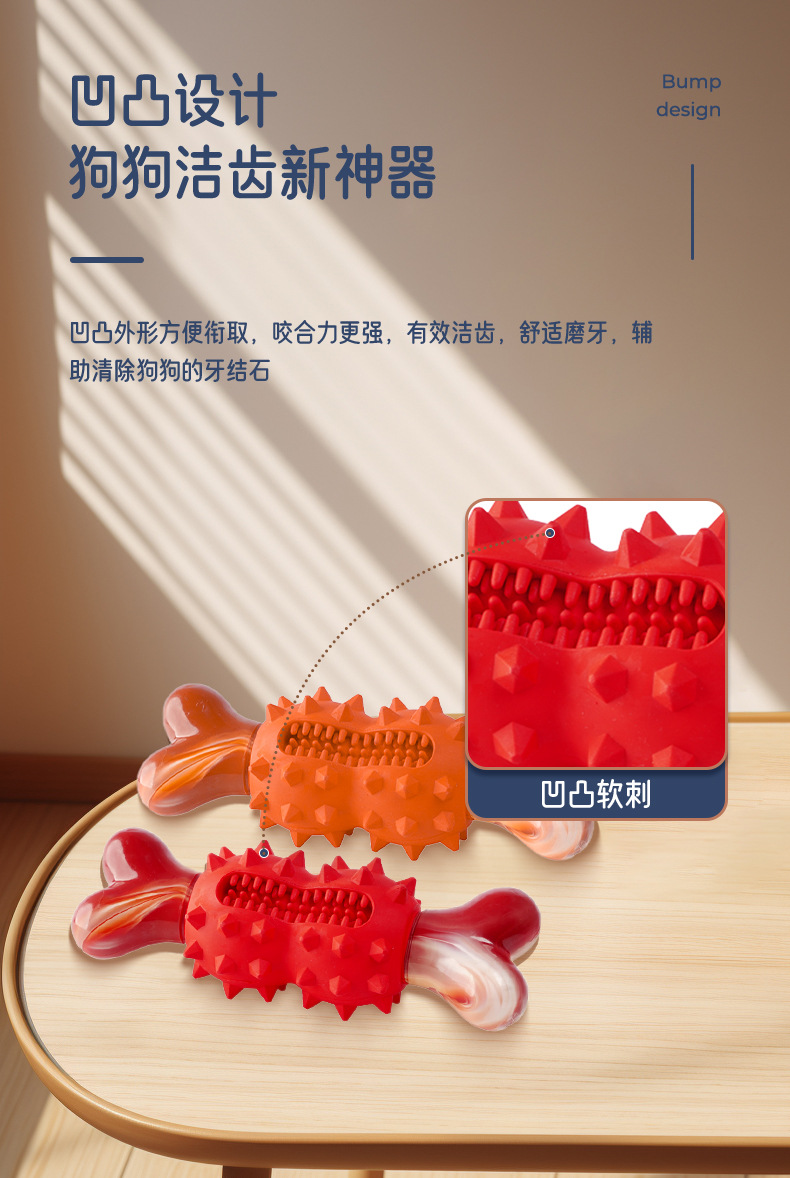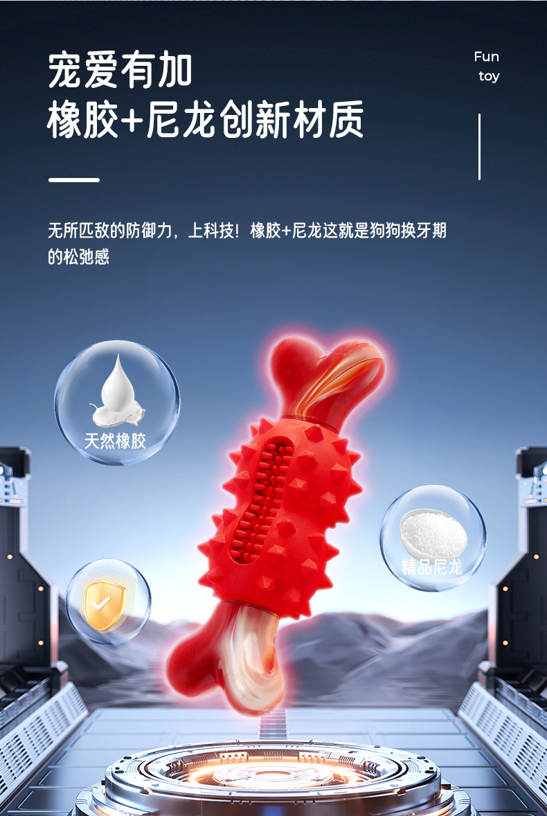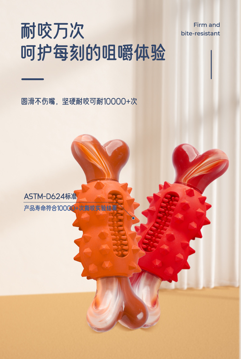 现货天然橡胶磨牙尼龙骨头洁齿狗狗玩具包胶刺骨互动自嗨解闷玩具