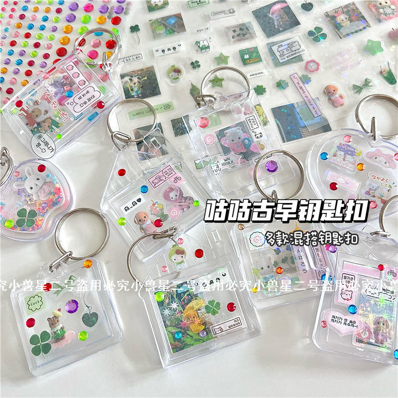 DIY 고대 초기 키 체인 투명 외계인 사진 프레임 펜던트 쿠코 홈 메이드 레트로 사진 키 체인 밀레니엄 스타일
