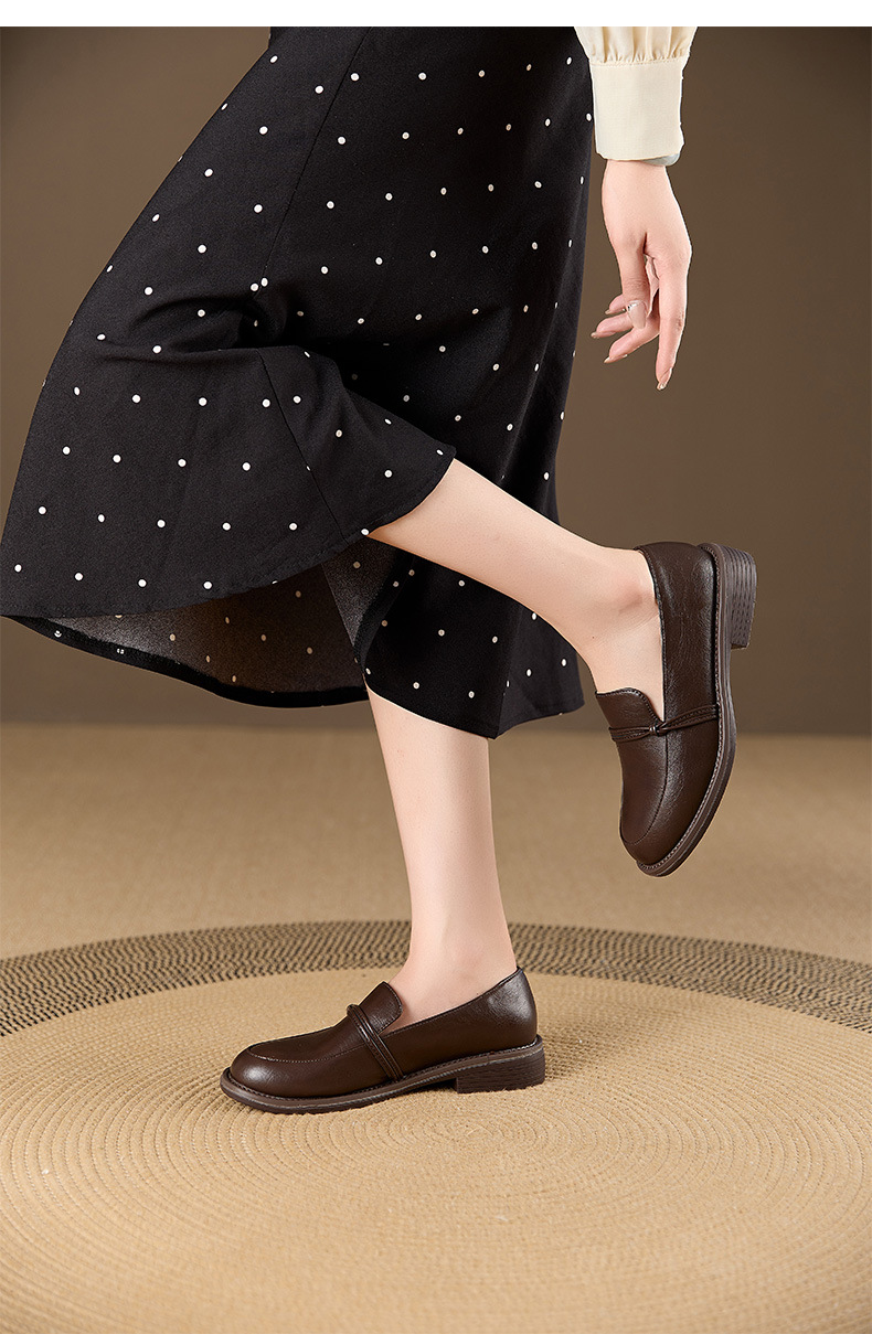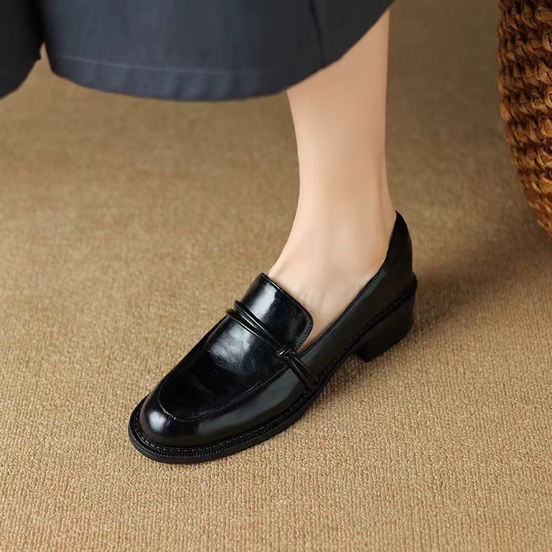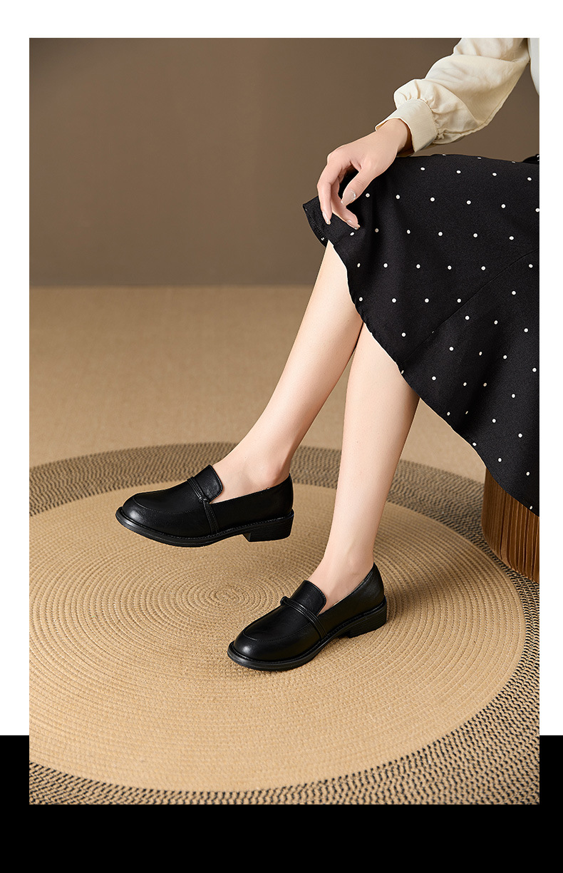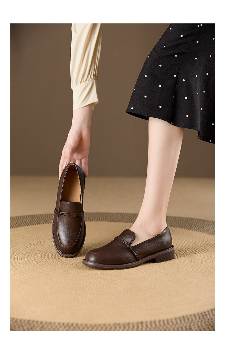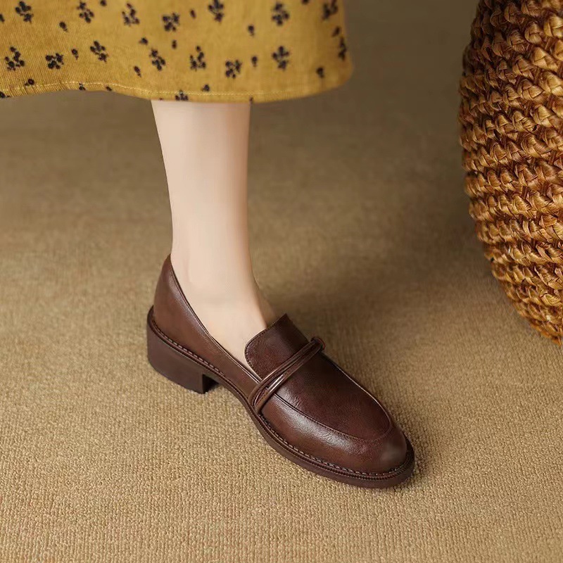 레트로 스타일 로퍼 라운드 투 플랫 슬립 온 여성용 다용도 편안한 신발 2025 봄, 가을 새로운 작은 가죽 신발스토어 가기