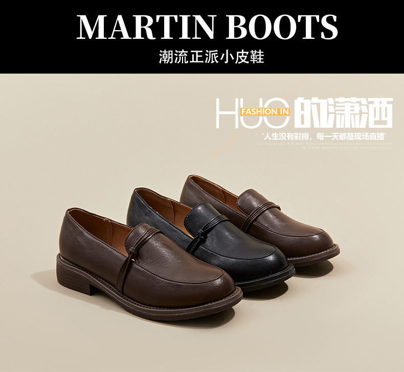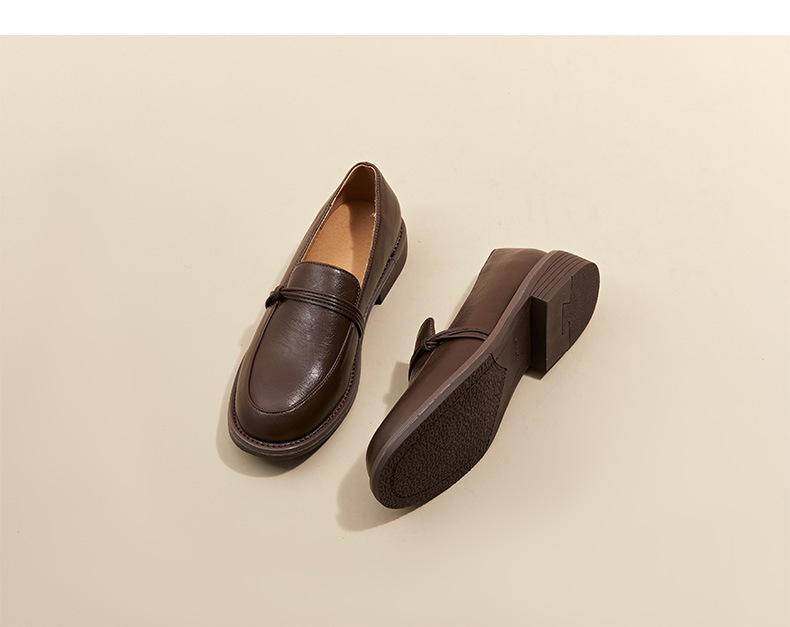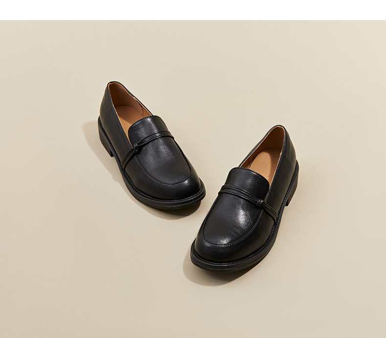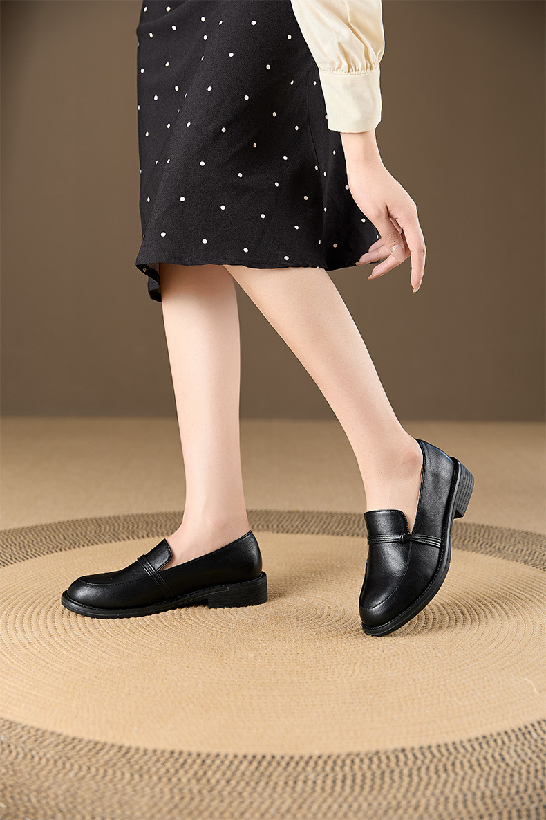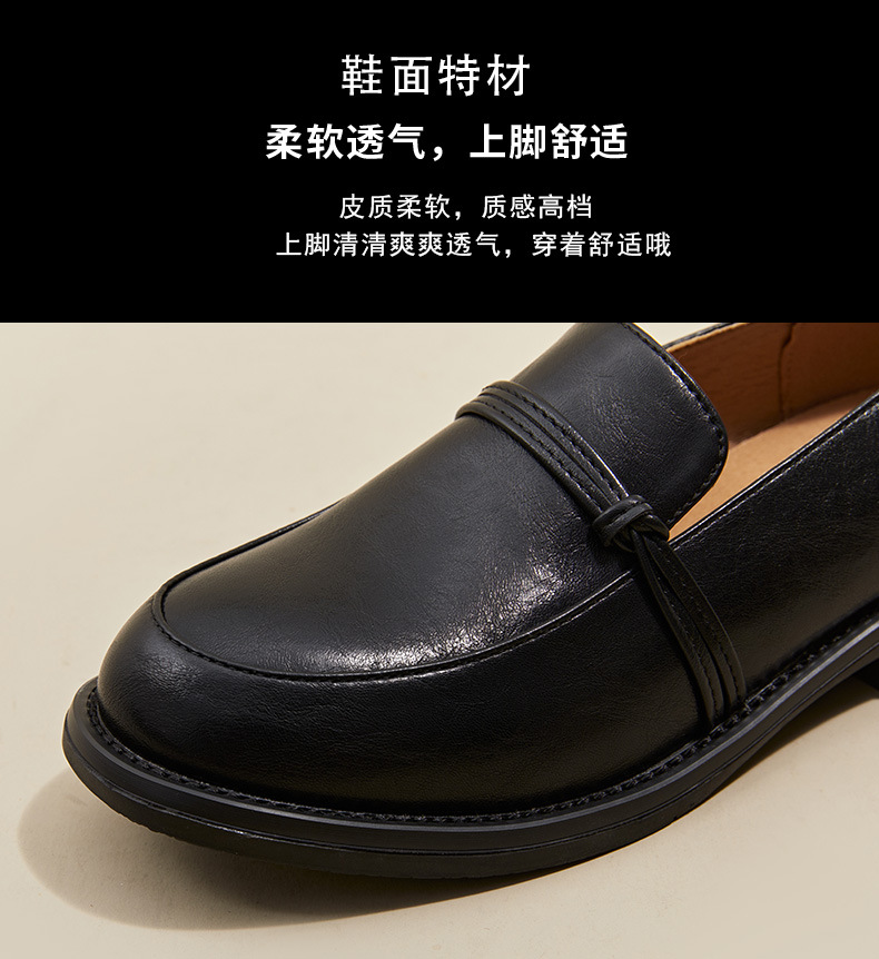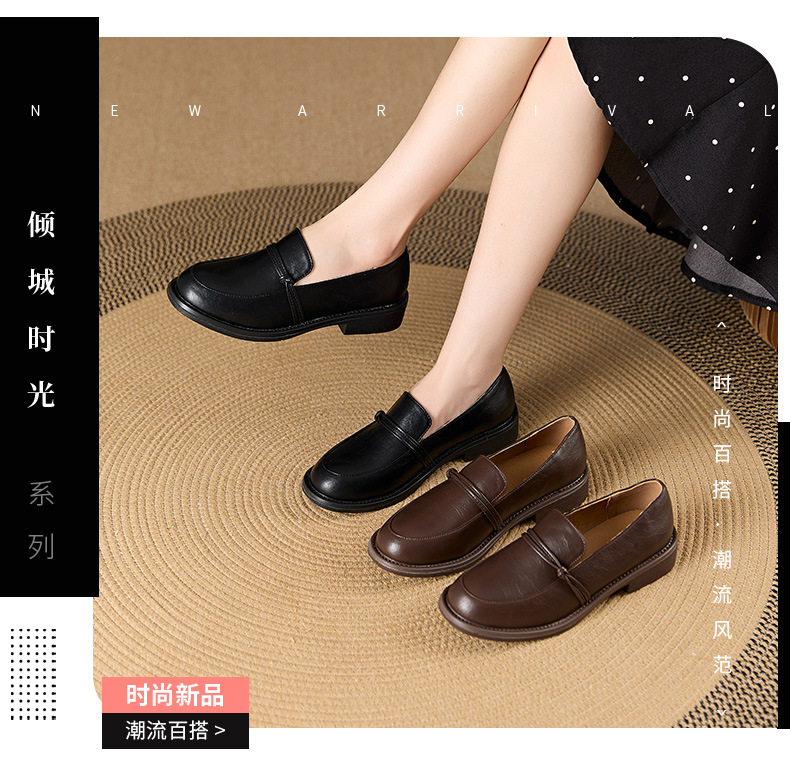 레트로 스타일 로퍼 라운드 투 플랫 슬립 온 여성용 다용도 편안한 신발 2025 봄, 가을 새로운 작은 가죽 신발스토어 가기