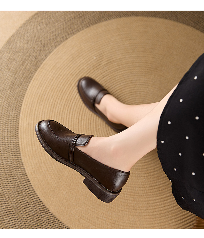 레트로 스타일 로퍼 라운드 투 플랫 슬립 온 여성용 다용도 편안한 신발 2025 봄, 가을 새로운 작은 가죽 신발
