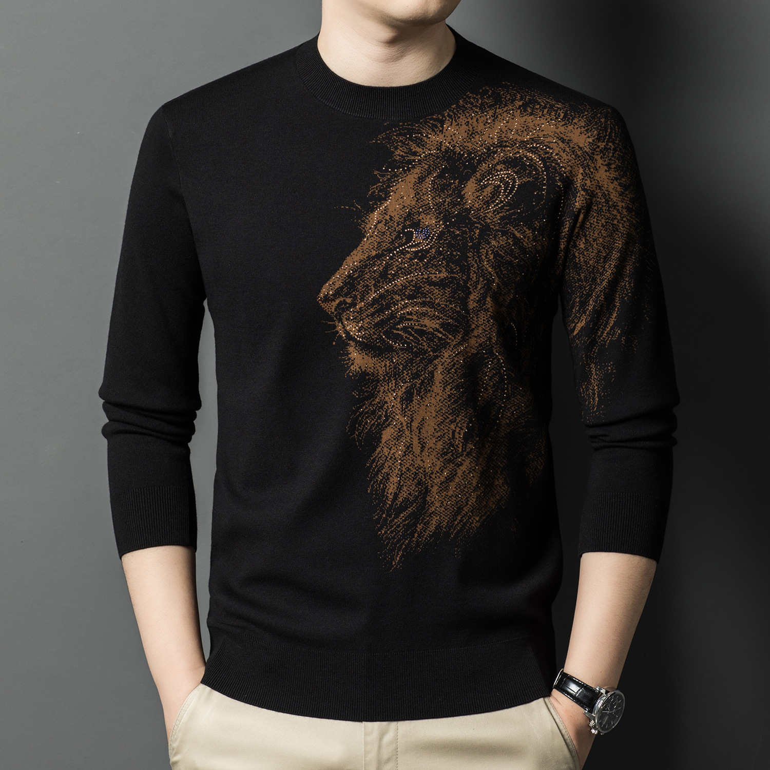 스웨터 남자 2024 가을과 겨울 새로운 도착 남자 긴팔 니트 스웨터 패션 캐주얼 라운드 넥 얇은 티셔츠베이스 셔츠스토어 가기
