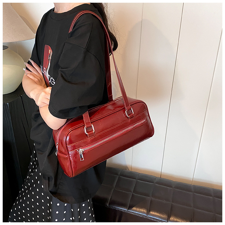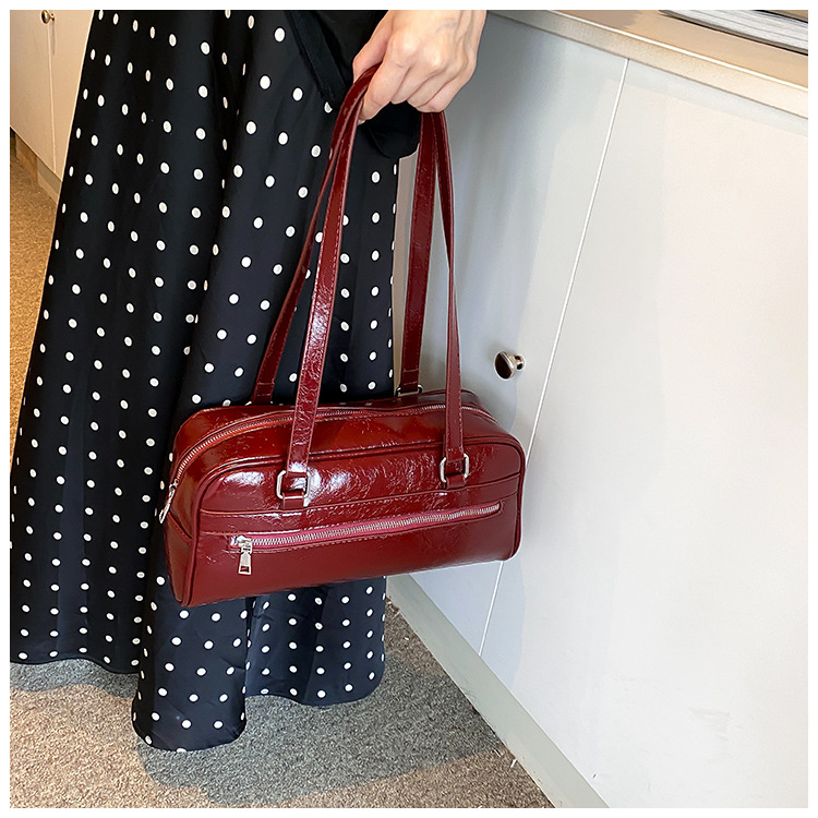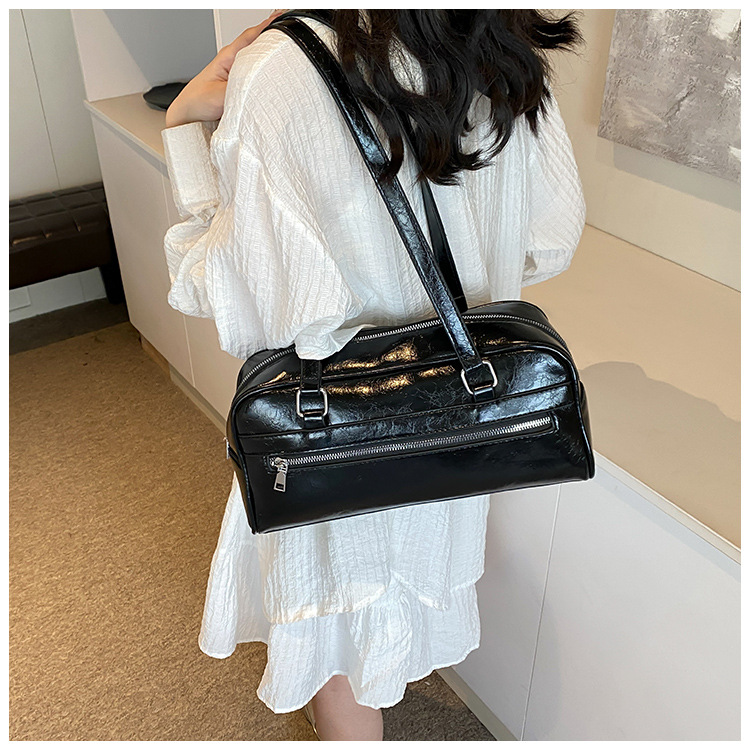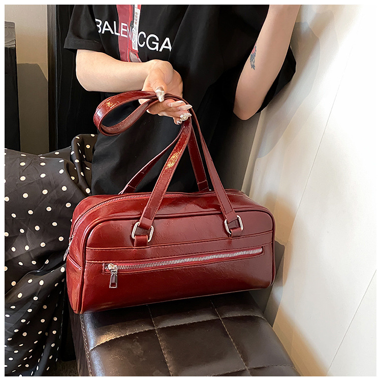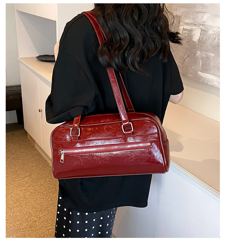 대용량 레트로 보스턴 가방 유행 유행 올 매치 휴대용 여성용 가방 단색 간단한 야외 통근 어깨 가방