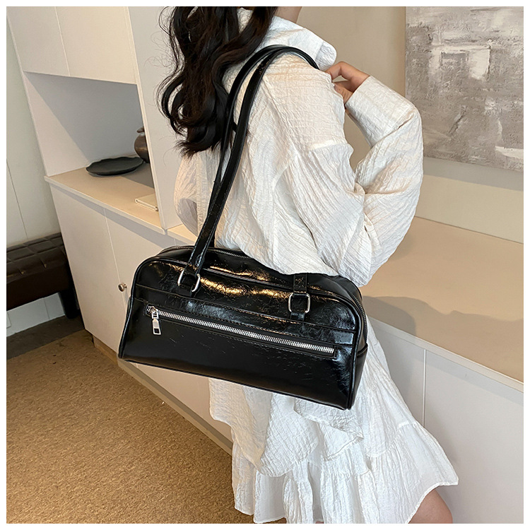 대용량 레트로 보스턴 가방 유행 유행 올 매치 휴대용 여성용 가방 단색 간단한 야외 통근 어깨 가방스토어 가기