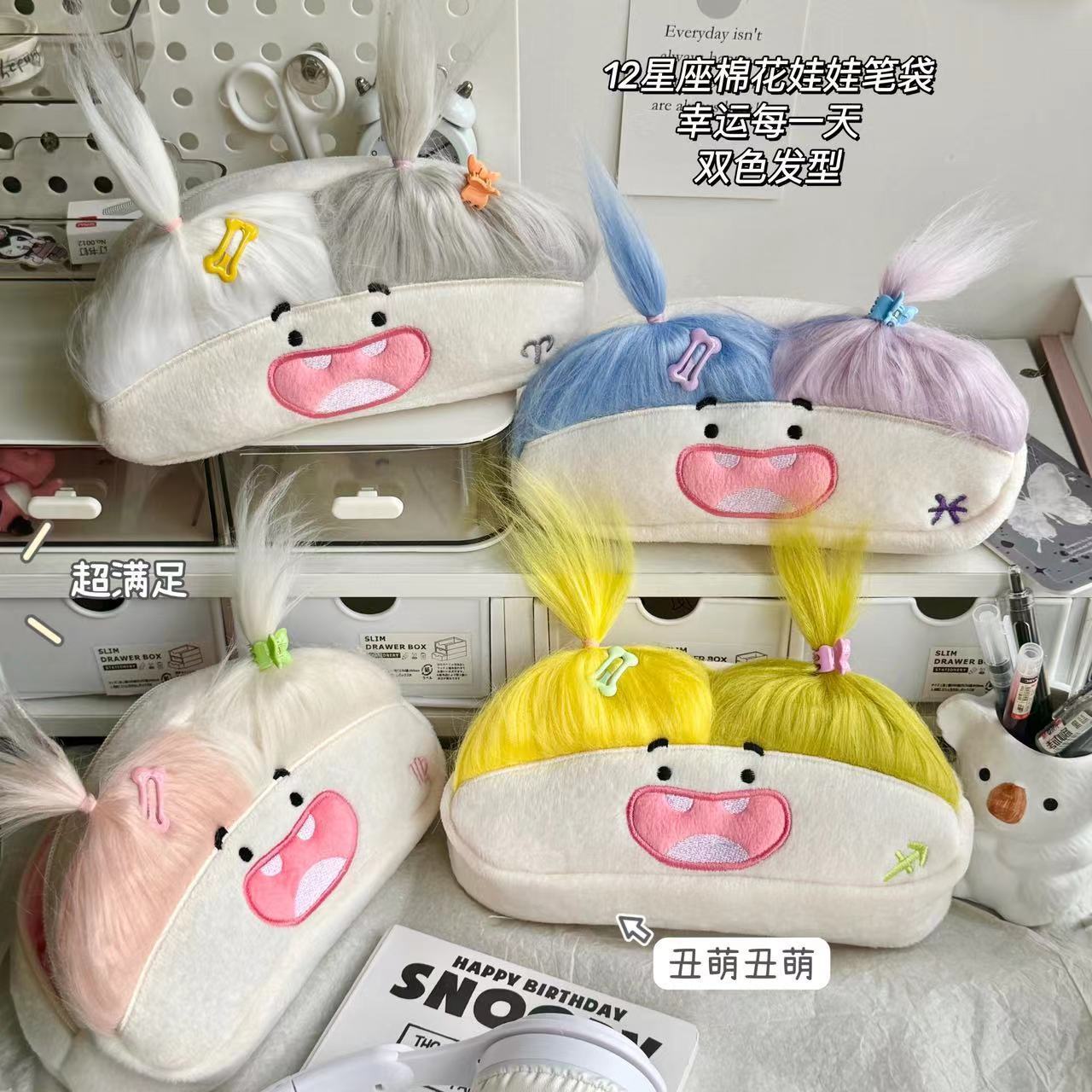 새로운 면 인형 연필 가방 귀여운 추악한 귀여운 봉제 대용량 연필 케이스 문구 창조적 인 학생 저장