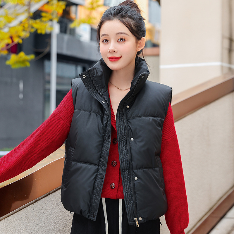 2025년 가을 겨울 신상 양가죽 다운 코튼 조끼 여성용 아우터 조끼 패셔너블 트렌디 민소매 조끼