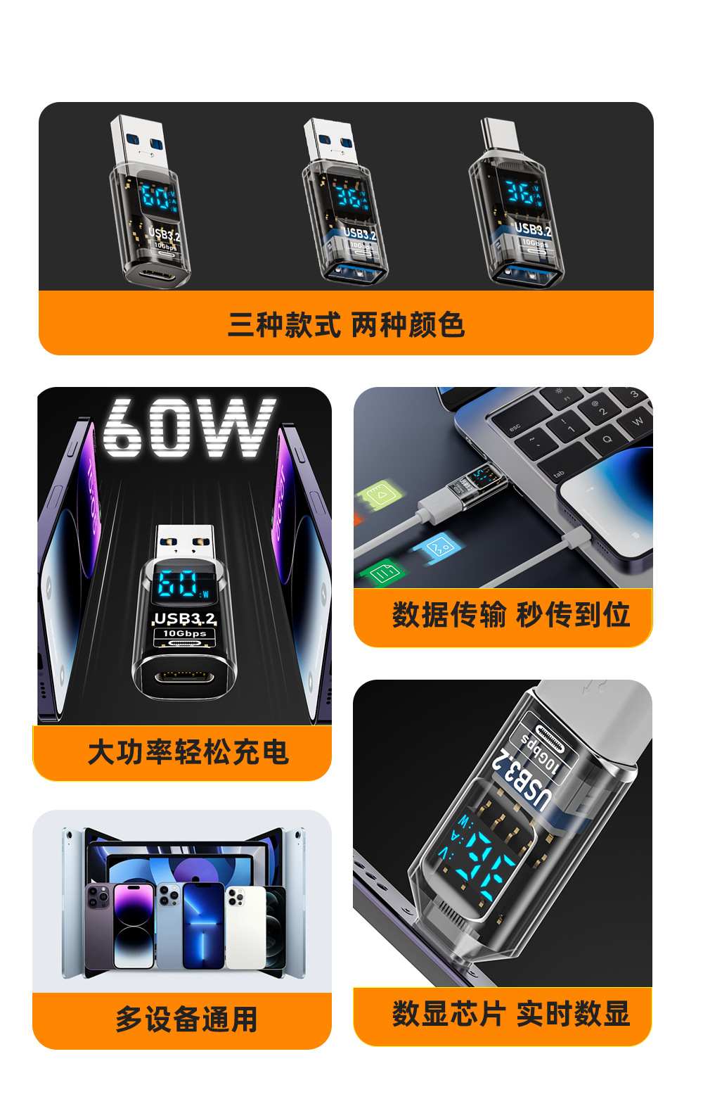 국경 usb type-c 디지털 디스플레이 어댑터 60W 빠른 충전 OTG 기능 디지털 디스플레이 데이터 라인 충전 헤드스토어 가기