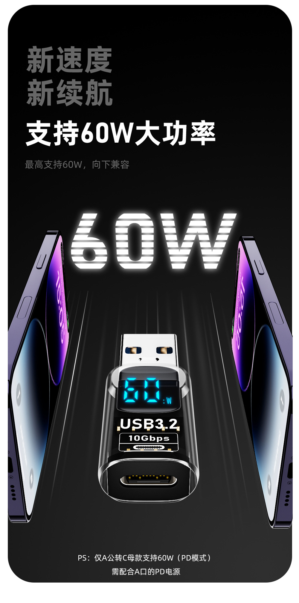 국경 usb type-c 디지털 디스플레이 어댑터 60W 빠른 충전 OTG 기능 디지털 디스플레이 데이터 라인 충전 헤드