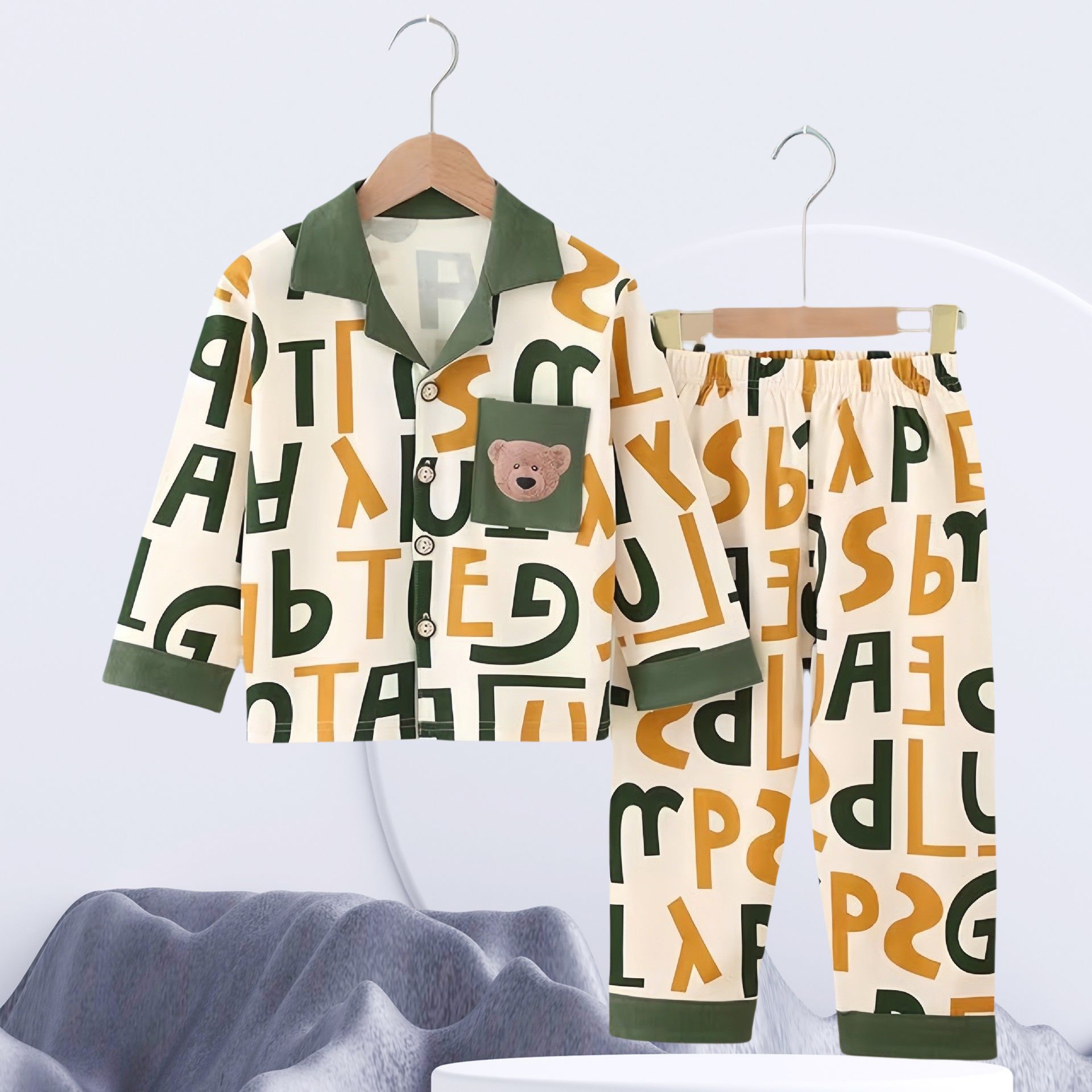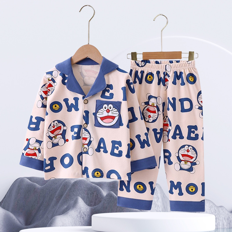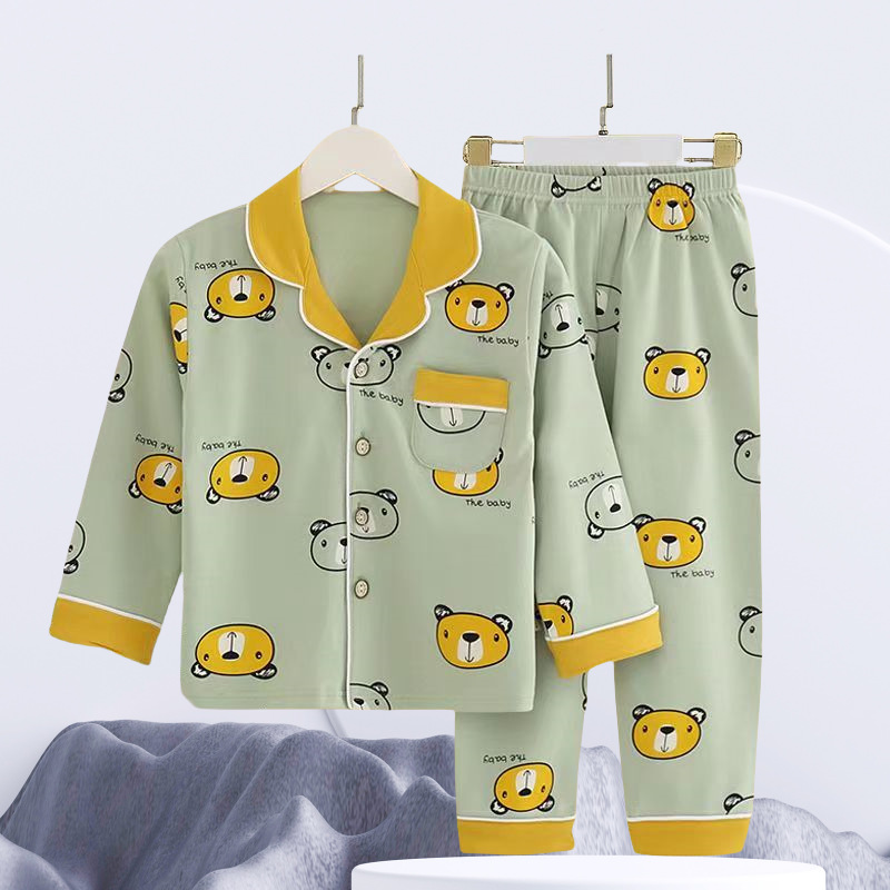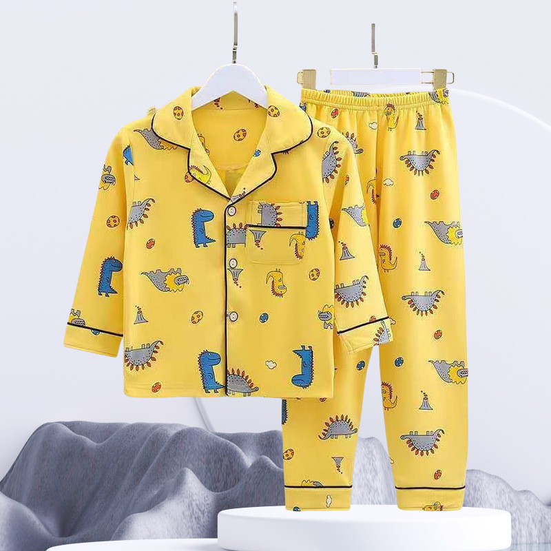 봄 가을 새 집 옷 세트 면 어린이 잠옷 어린이 옷깃 카디건 긴 소매 만화 인쇄스토어 가기