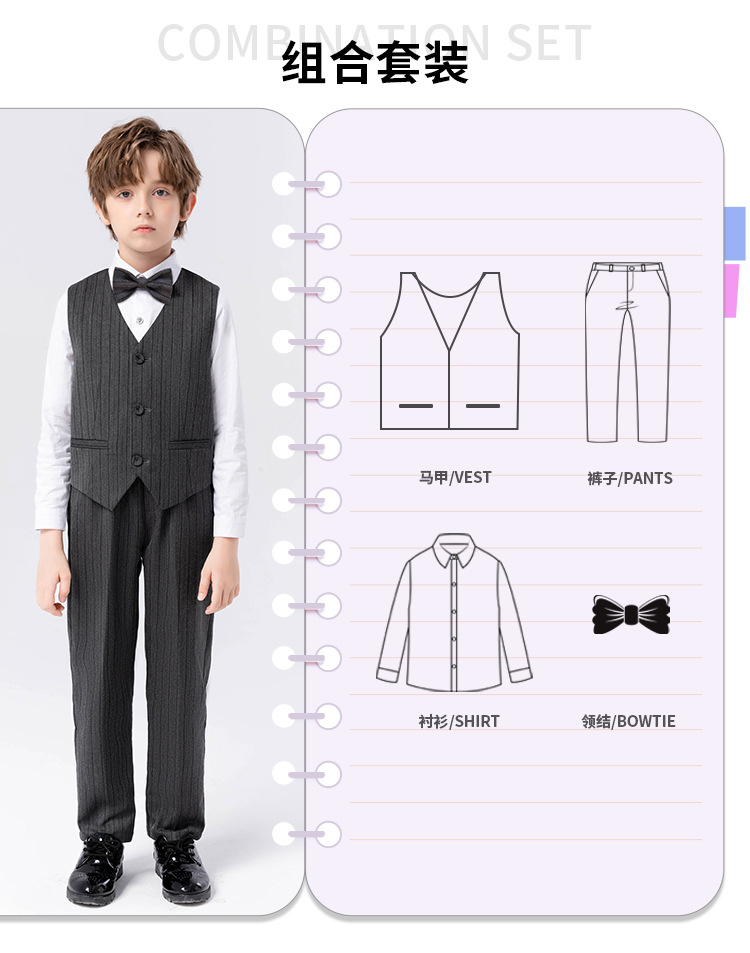 • [반팔셔츠] 다크그레이 4종세트 (반팔셔츠+조끼+바지+나비넥타이)