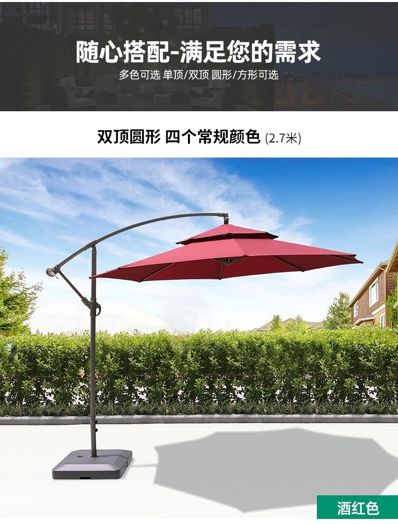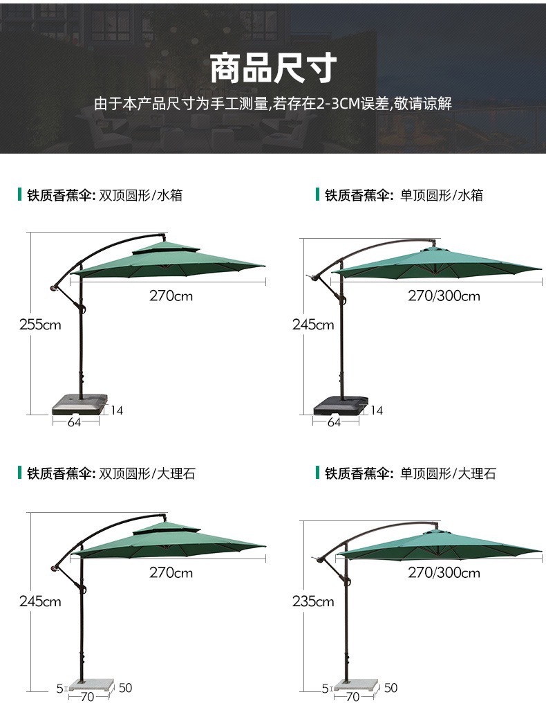 • 2.7m 쌍 상단 원형 바나나 우산 [4가지 색상 선택] 물 탱크 베이스 포함