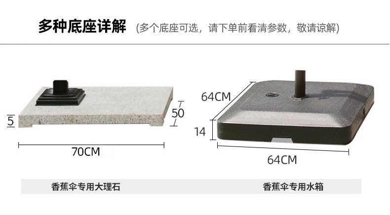 • 대리석 베이스가 있는 상단 원형 바나나 우산 2.7m 쌍 [4 색상 선택]