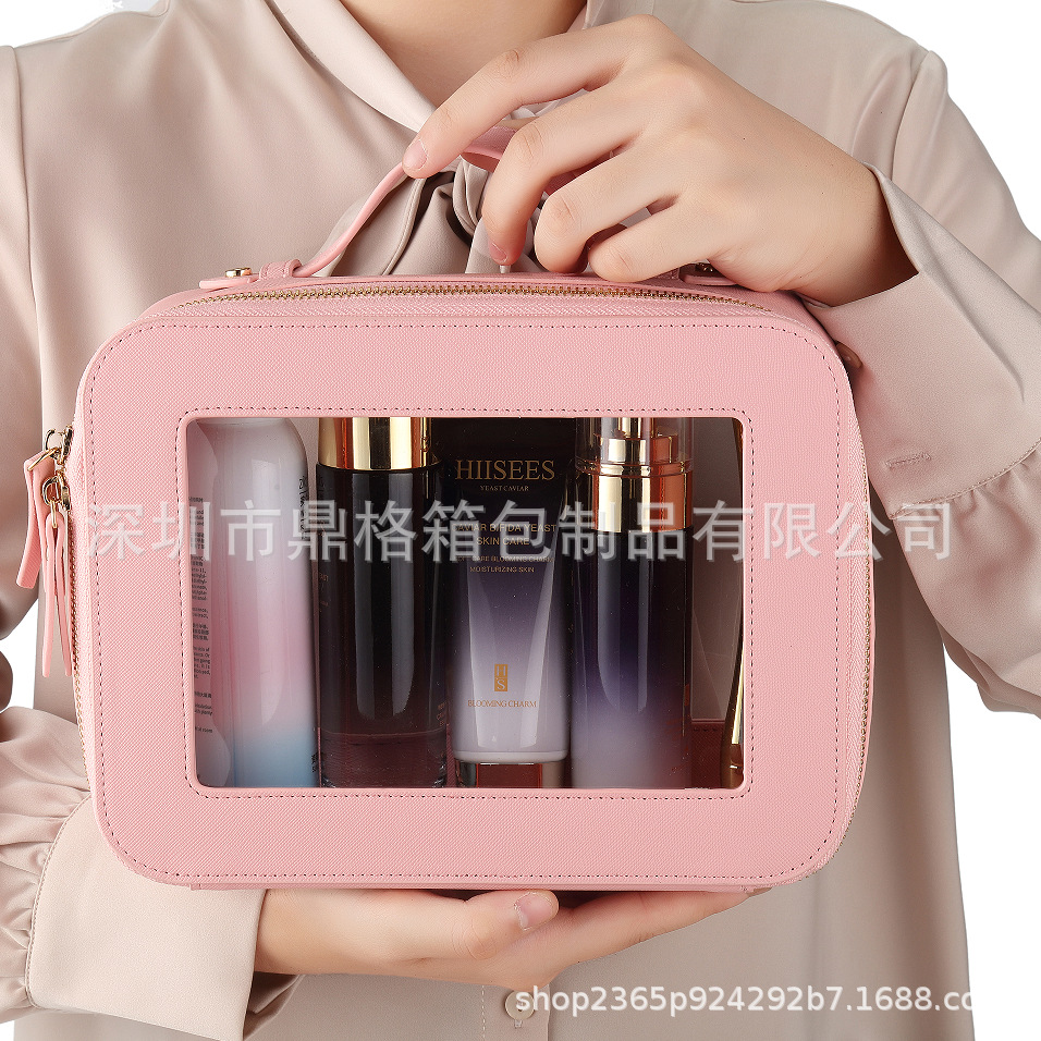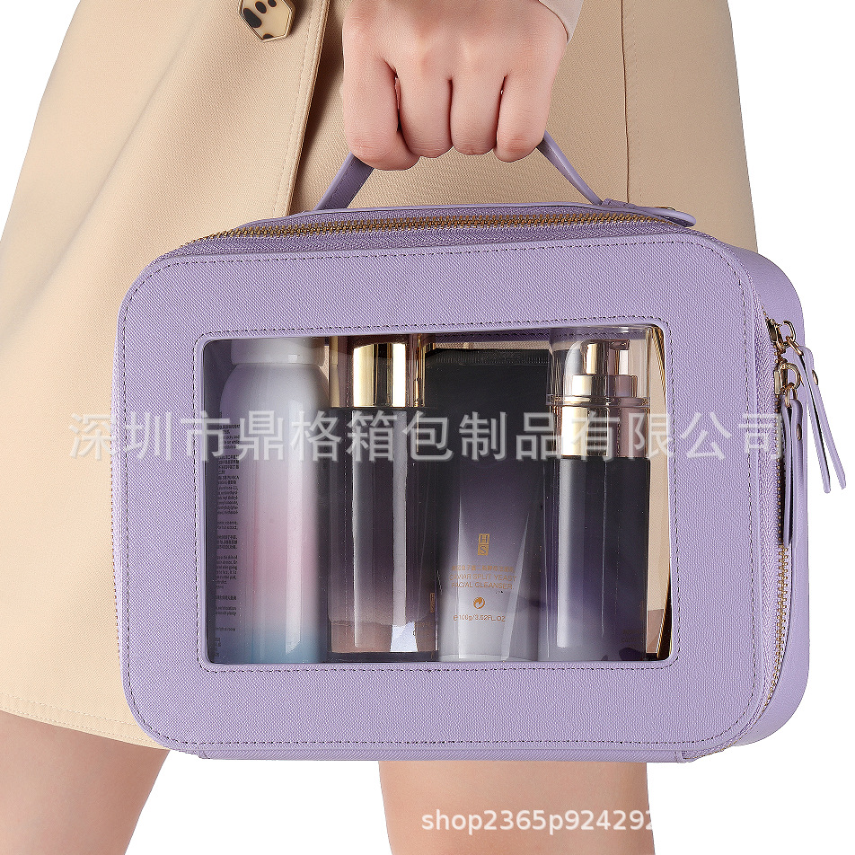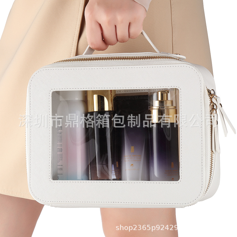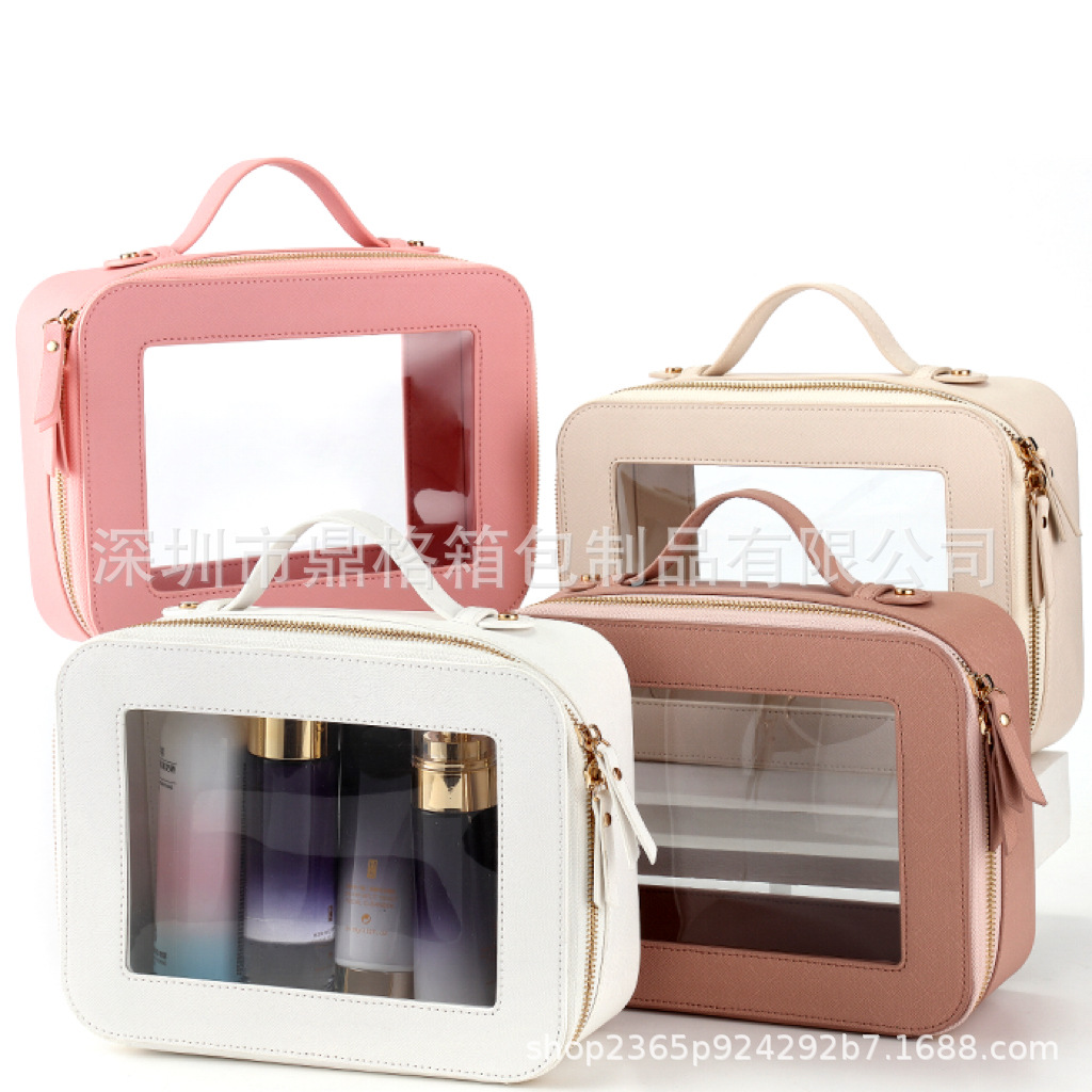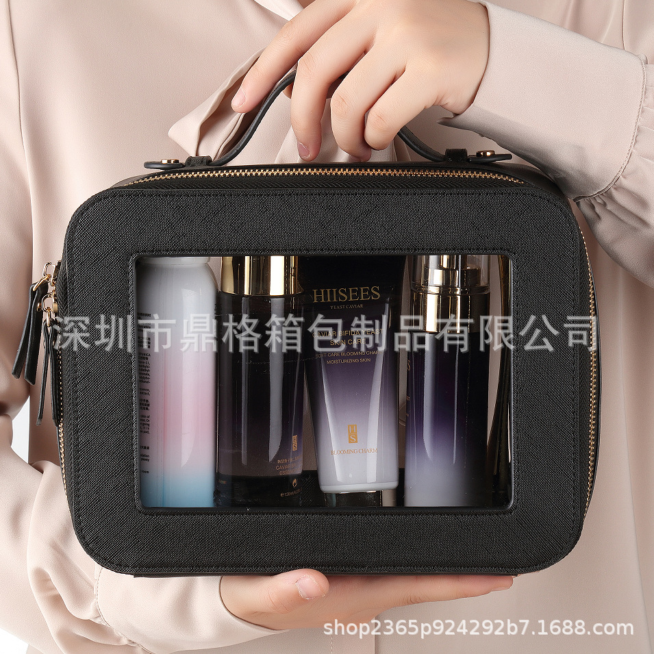 2024 새로운 아마존 국경 투명 PU 화장품 가방 여행 필수 세척 가방 대용량 저장 가방 휴대용스토어 가기