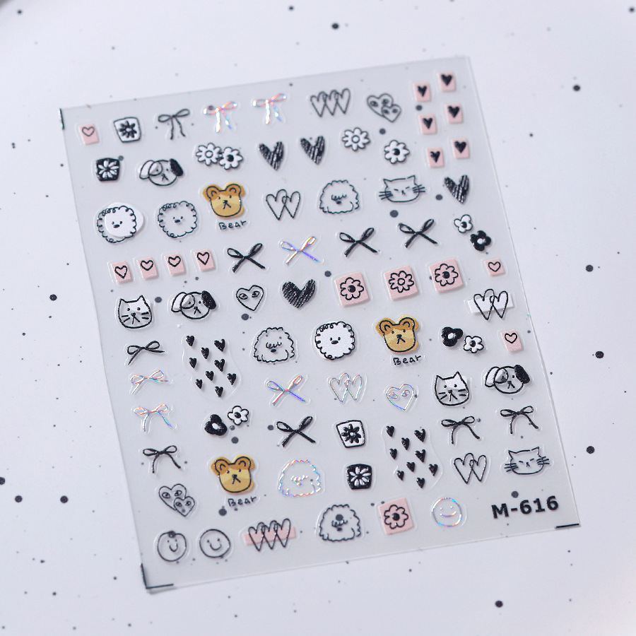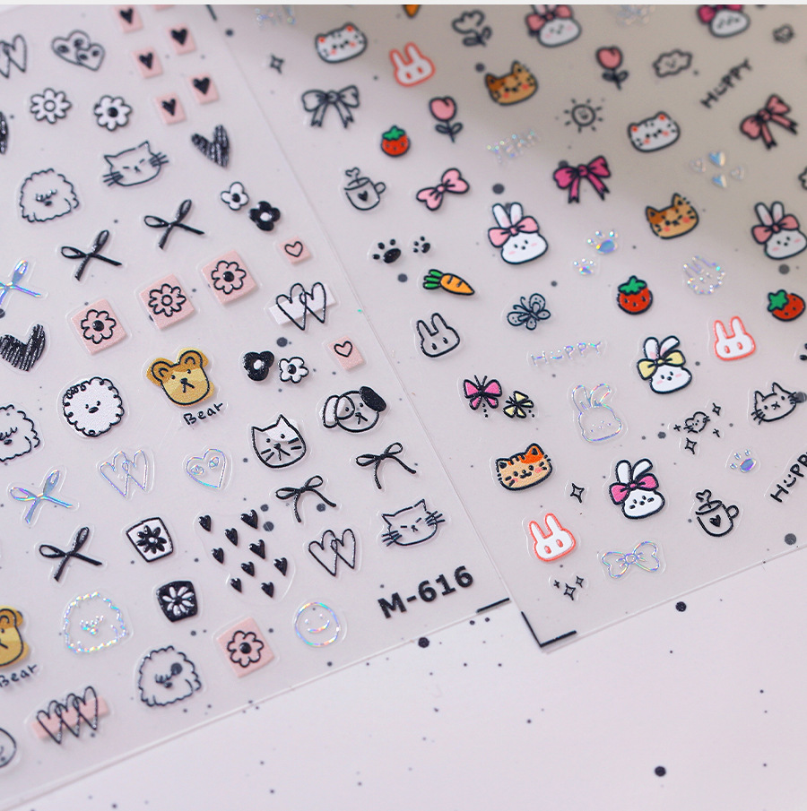 TENSOR 새로운 프로세스 만화 라인 네일 아트 스티커 레이저 백 접착제 네일 아트 스테레오 브론징 시리즈 M-616