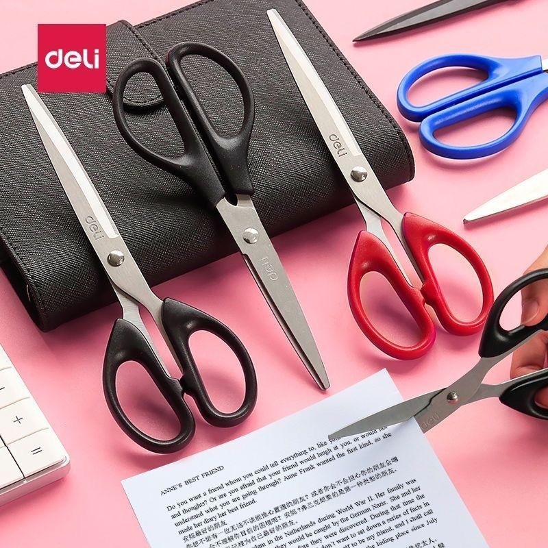 • 델리 【77790】검은날 가위 가정용 날카로운 스테인레스 가위 수제 종이 가위/손 (색상 랜덤)310497