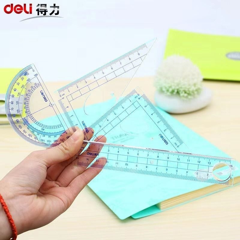 • 델리 【9597】자 세트 학생 자 세트, 자 세트, 자 + 삼각 자 + 각도기, 학생 문구류 4종 세트/세트939235
