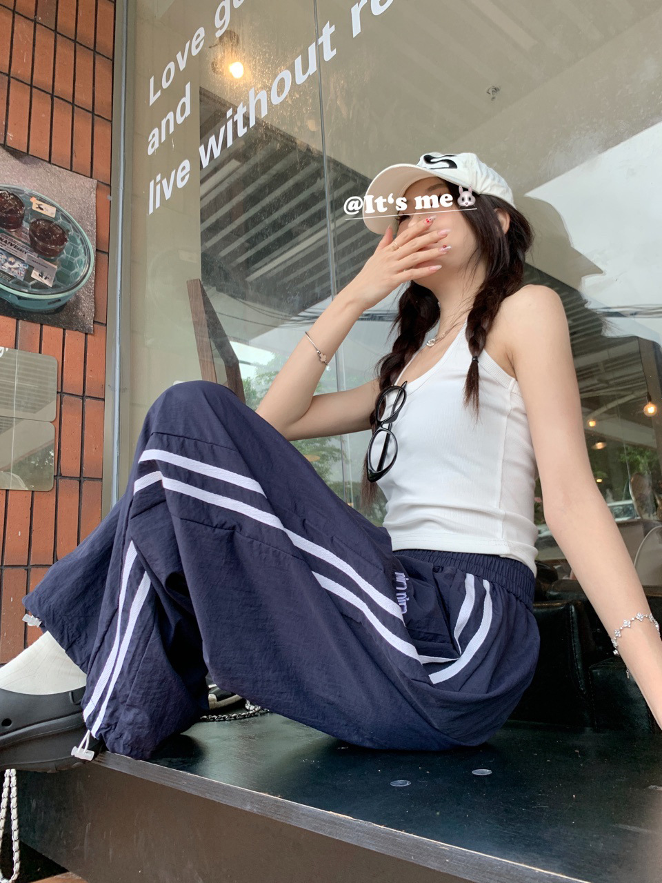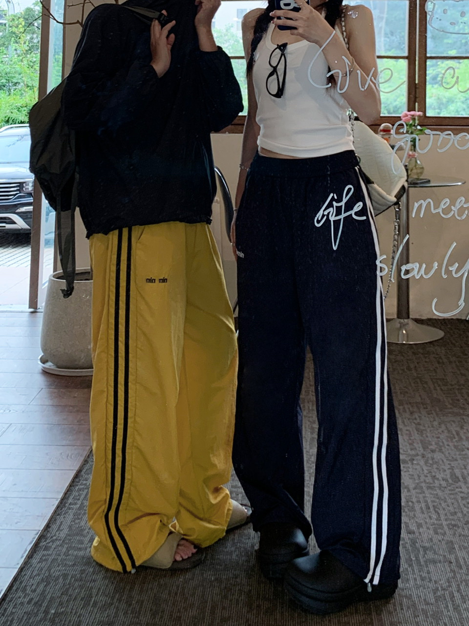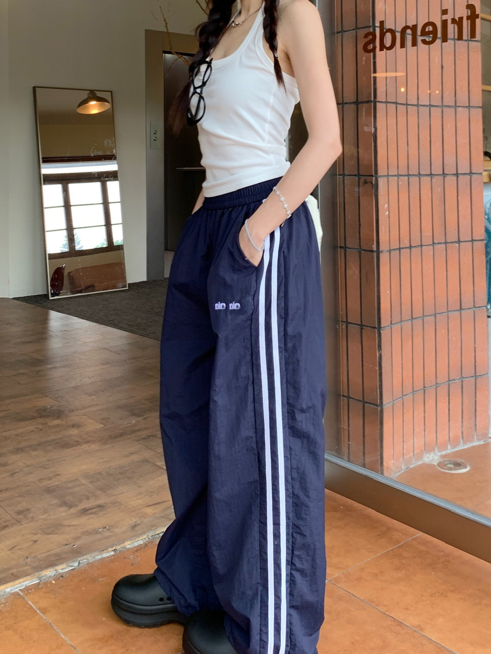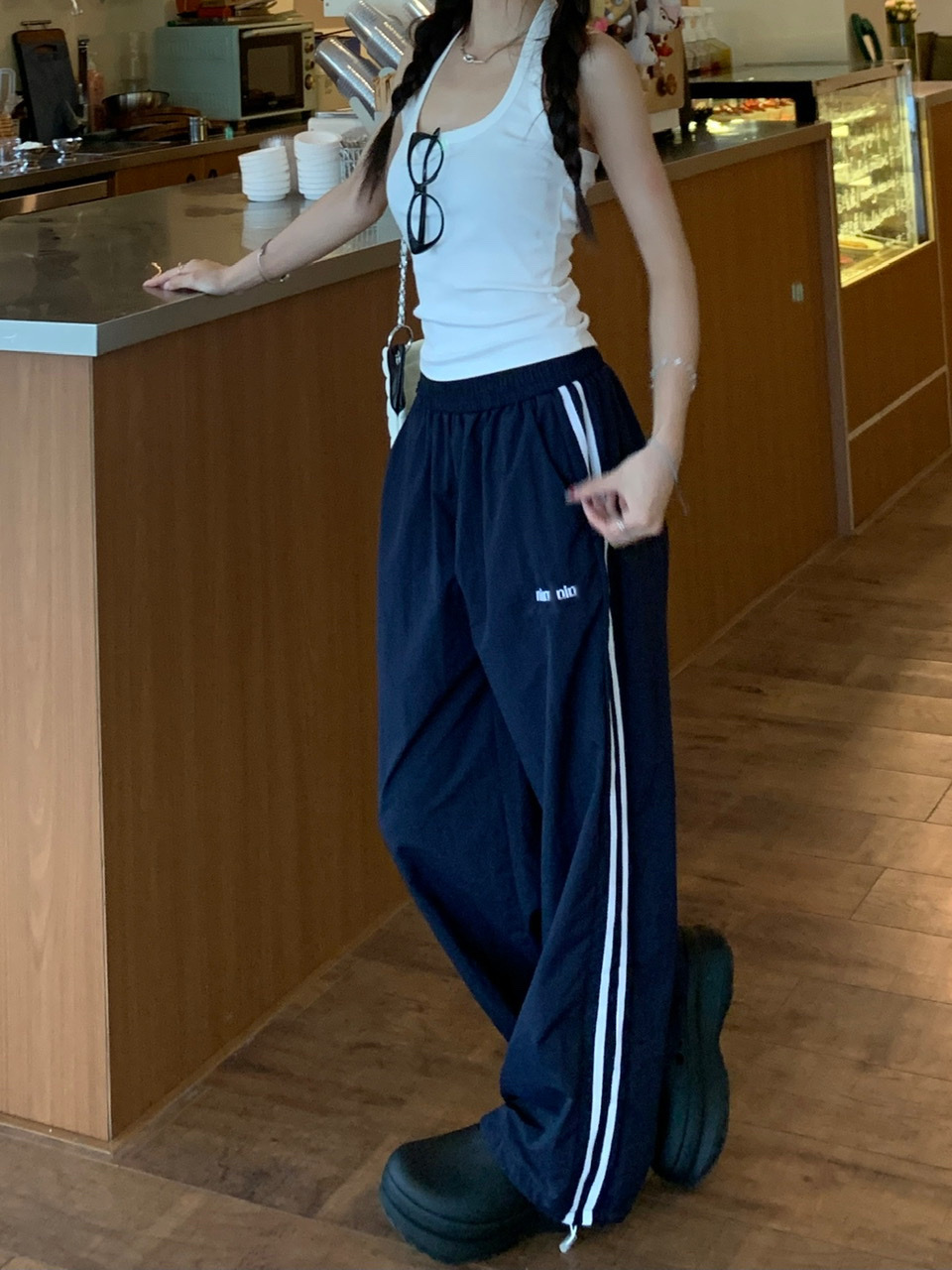 미국식 하이 스트리트 스트라이프 퀵 드라이 와이드 레그 스포츠 바지 여성의 얇은 느슨한 슬림 캐주얼 바지 바지스토어 가기