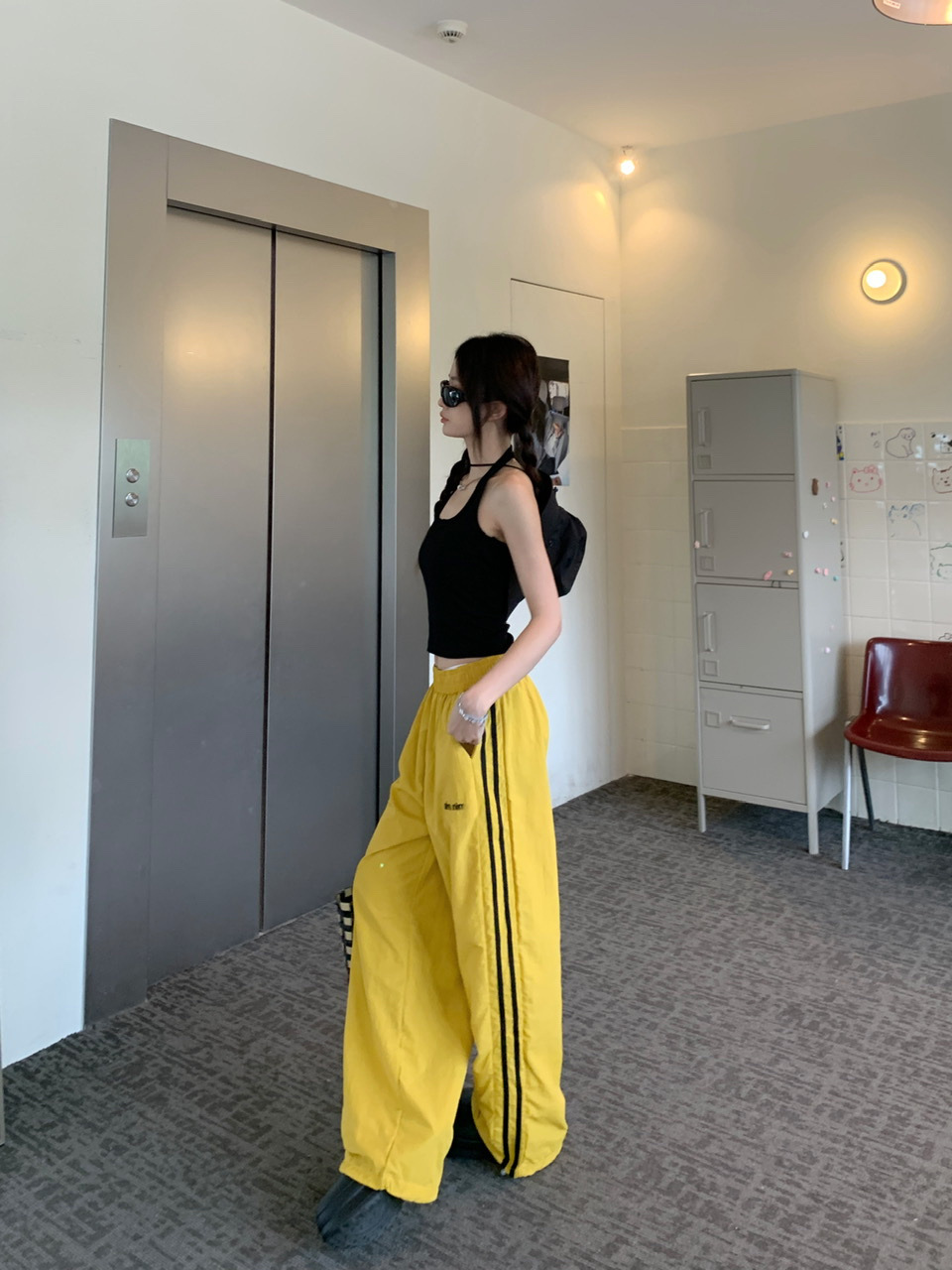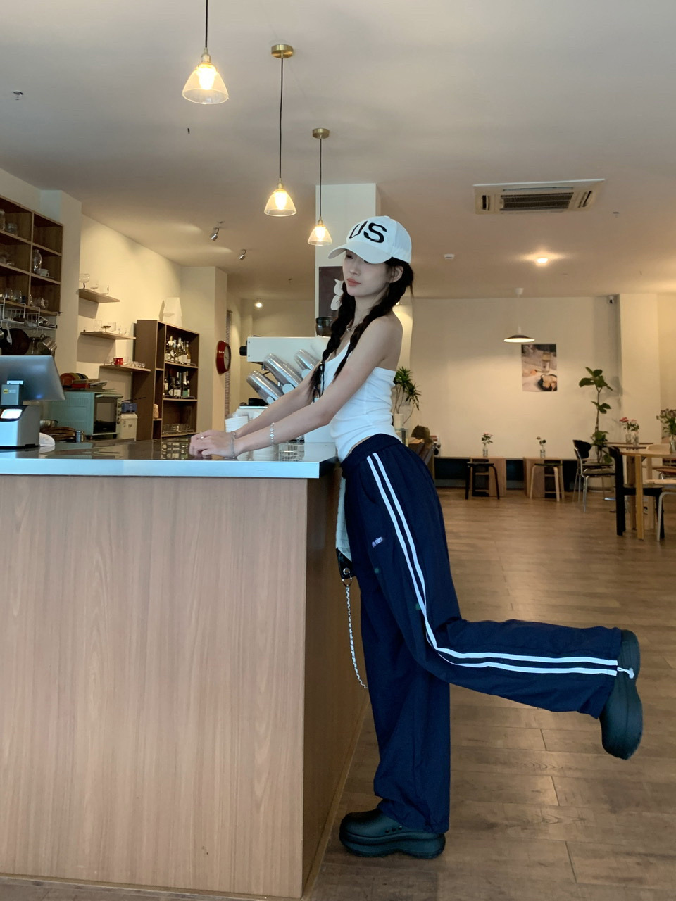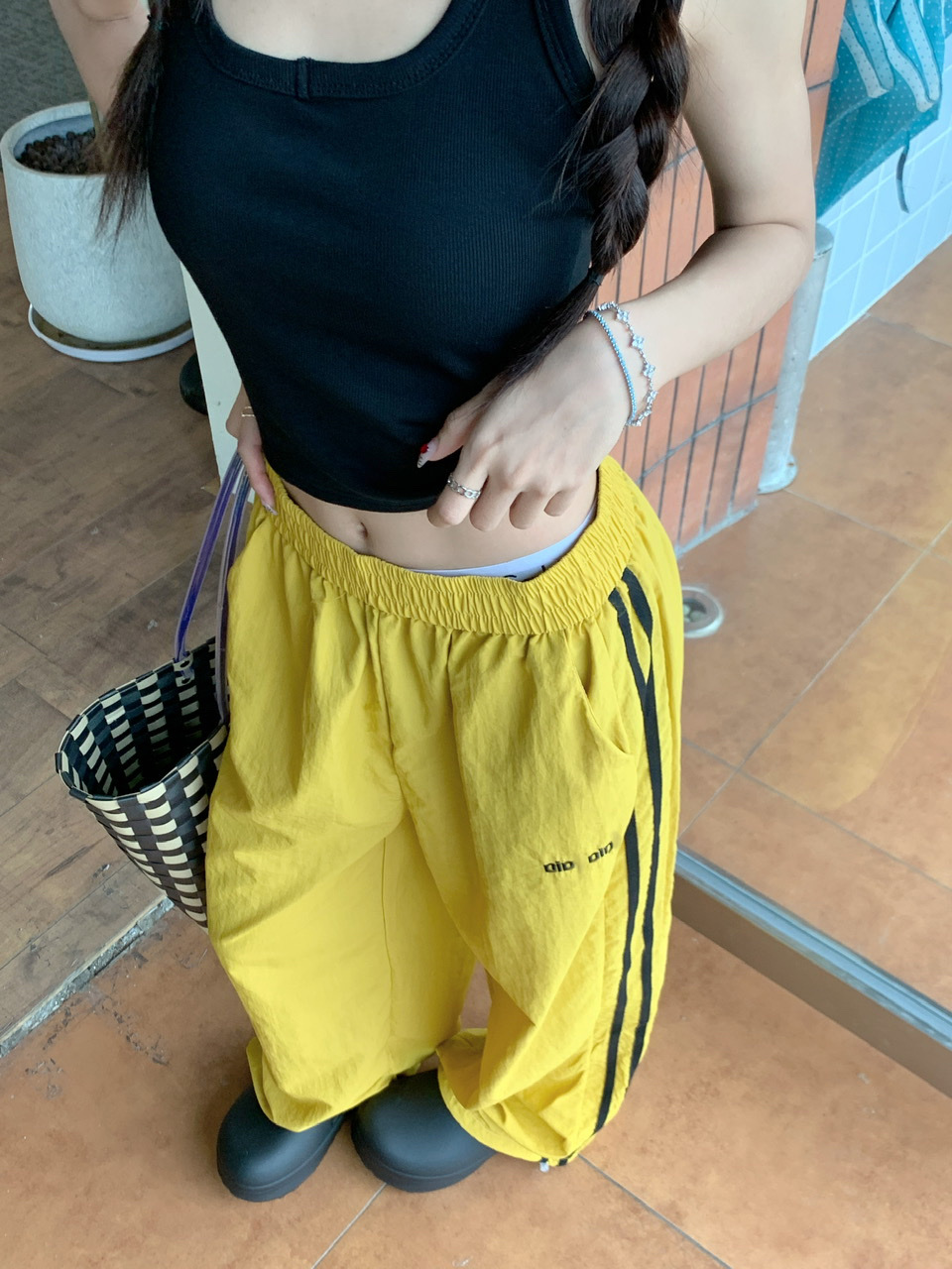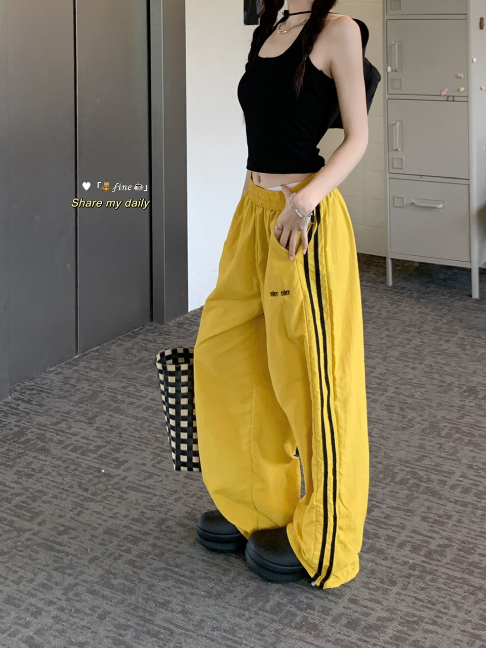 미국식 하이 스트리트 스트라이프 퀵 드라이 와이드 레그 스포츠 바지 여성의 얇은 느슨한 슬림 캐주얼 바지 바지스토어 가기