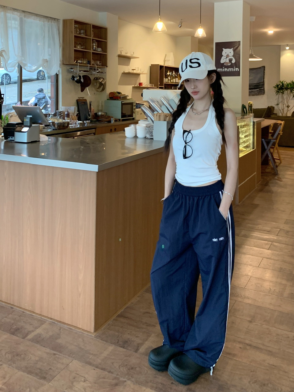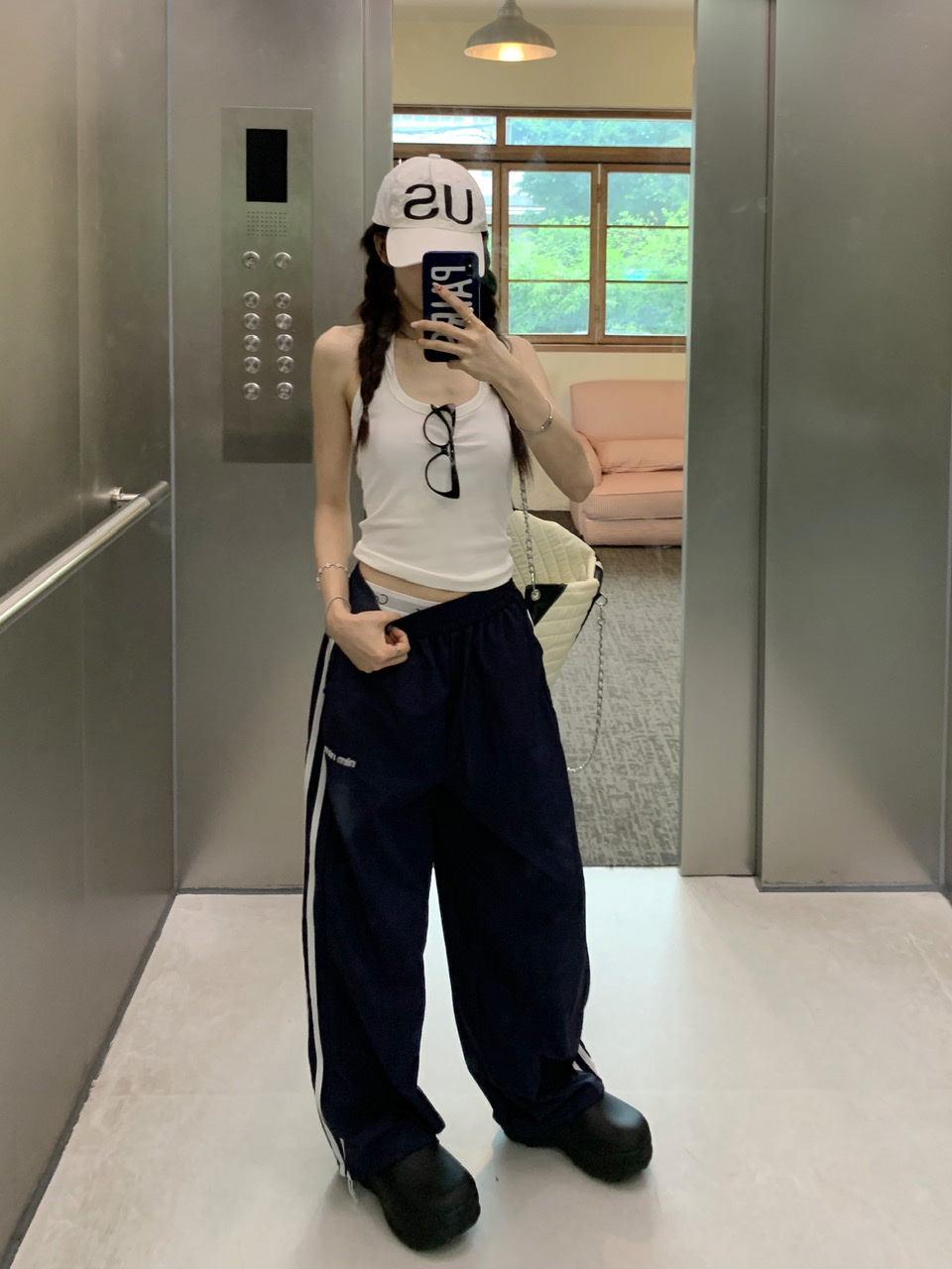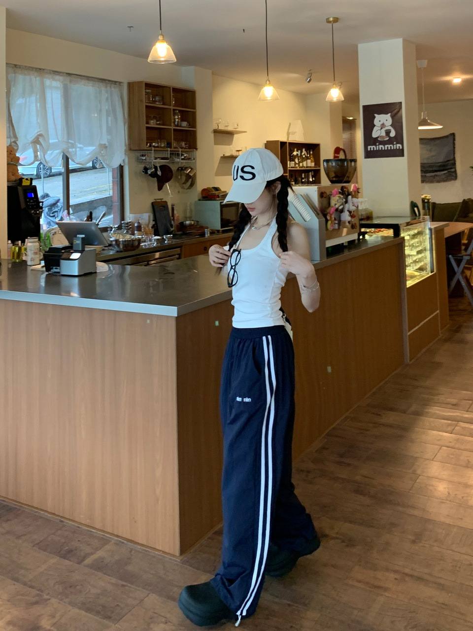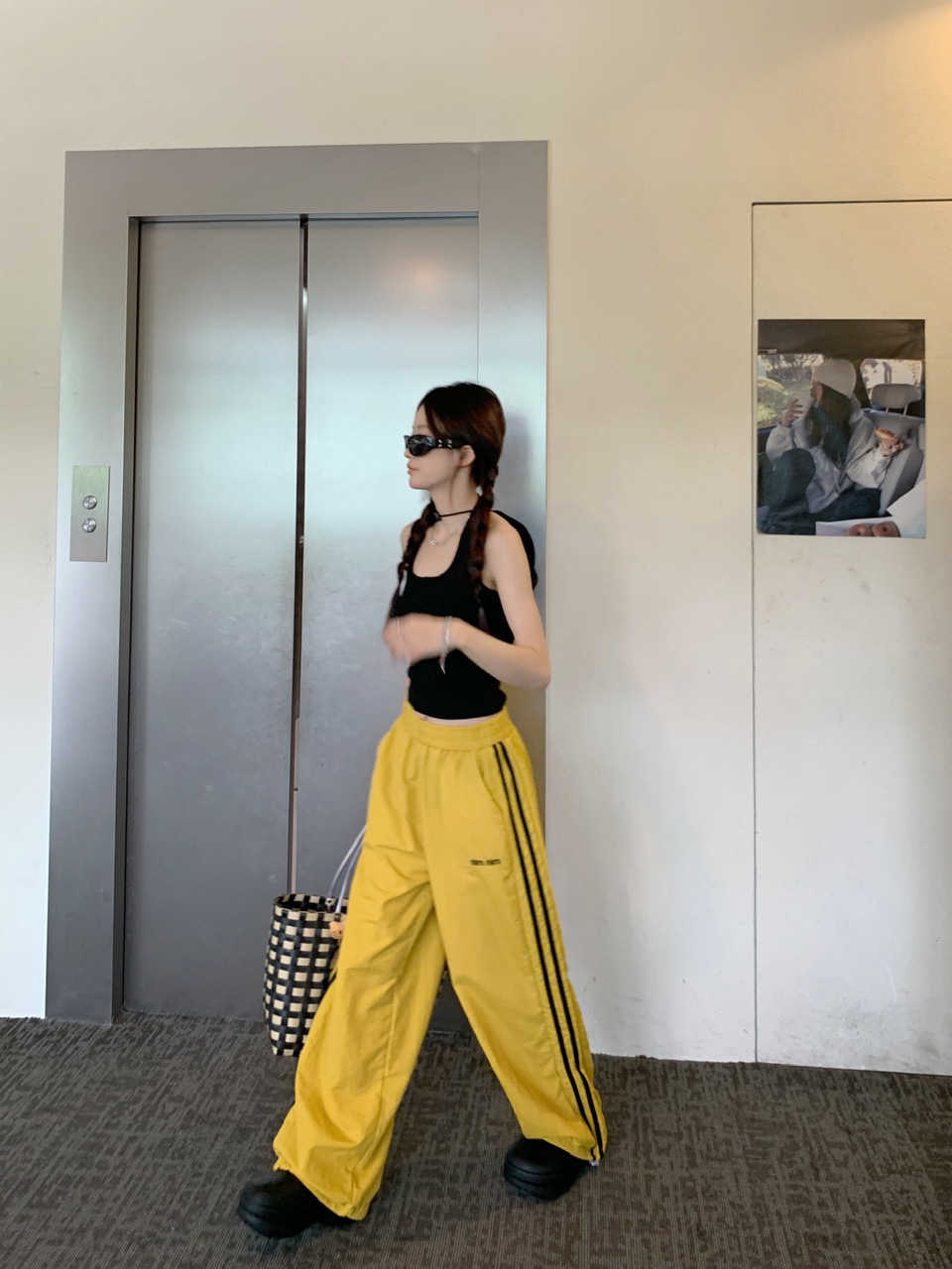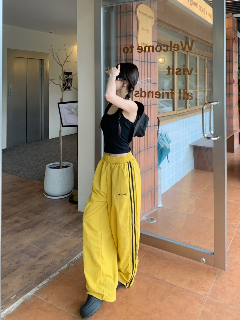 미국식 하이 스트리트 스트라이프 퀵 드라이 와이드 레그 스포츠 바지 여성의 얇은 느슨한 슬림 캐주얼 바지 바지스토어 가기