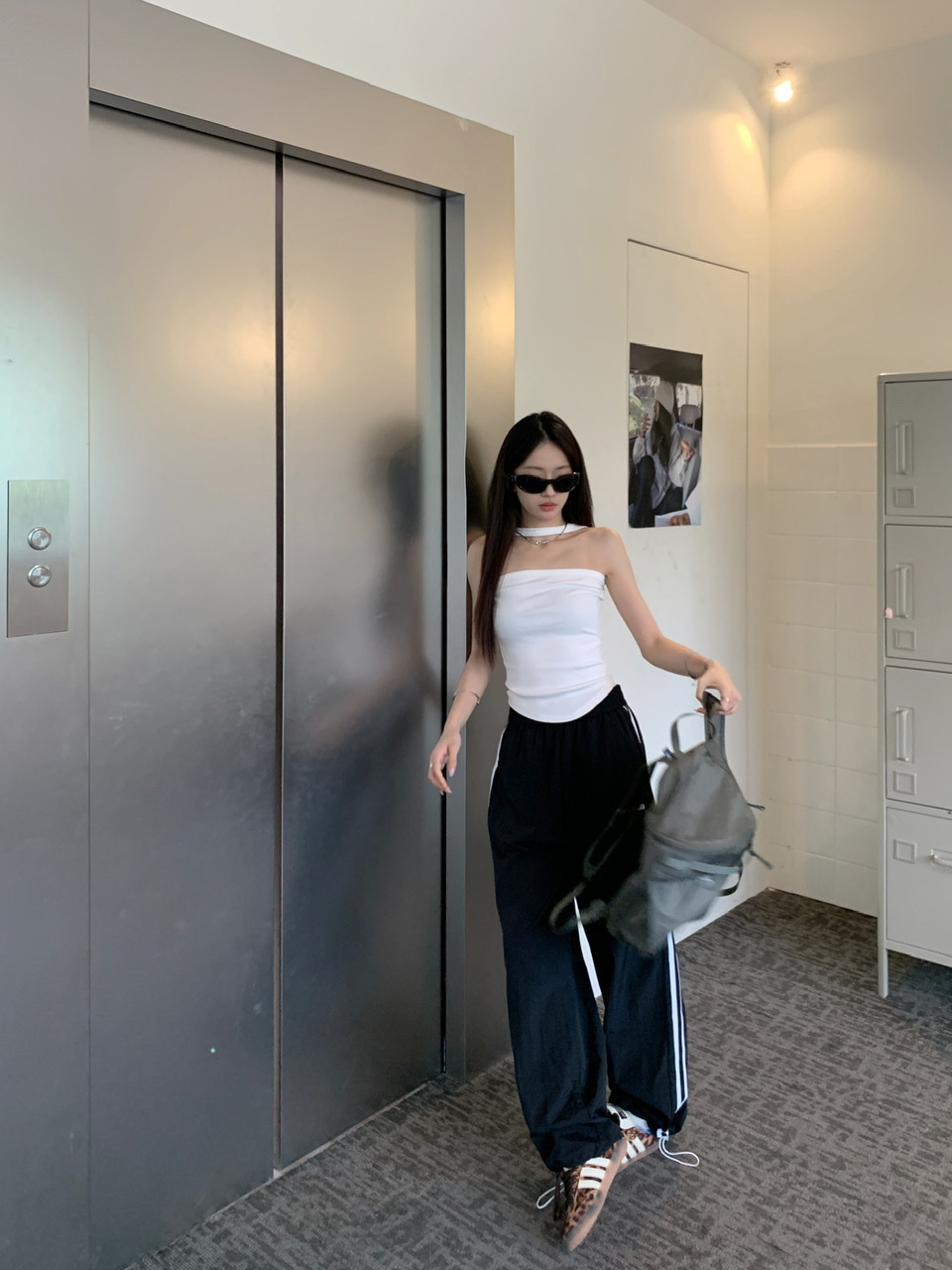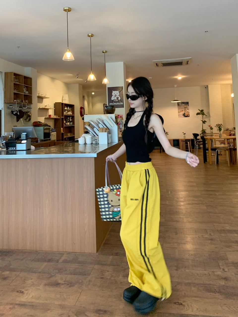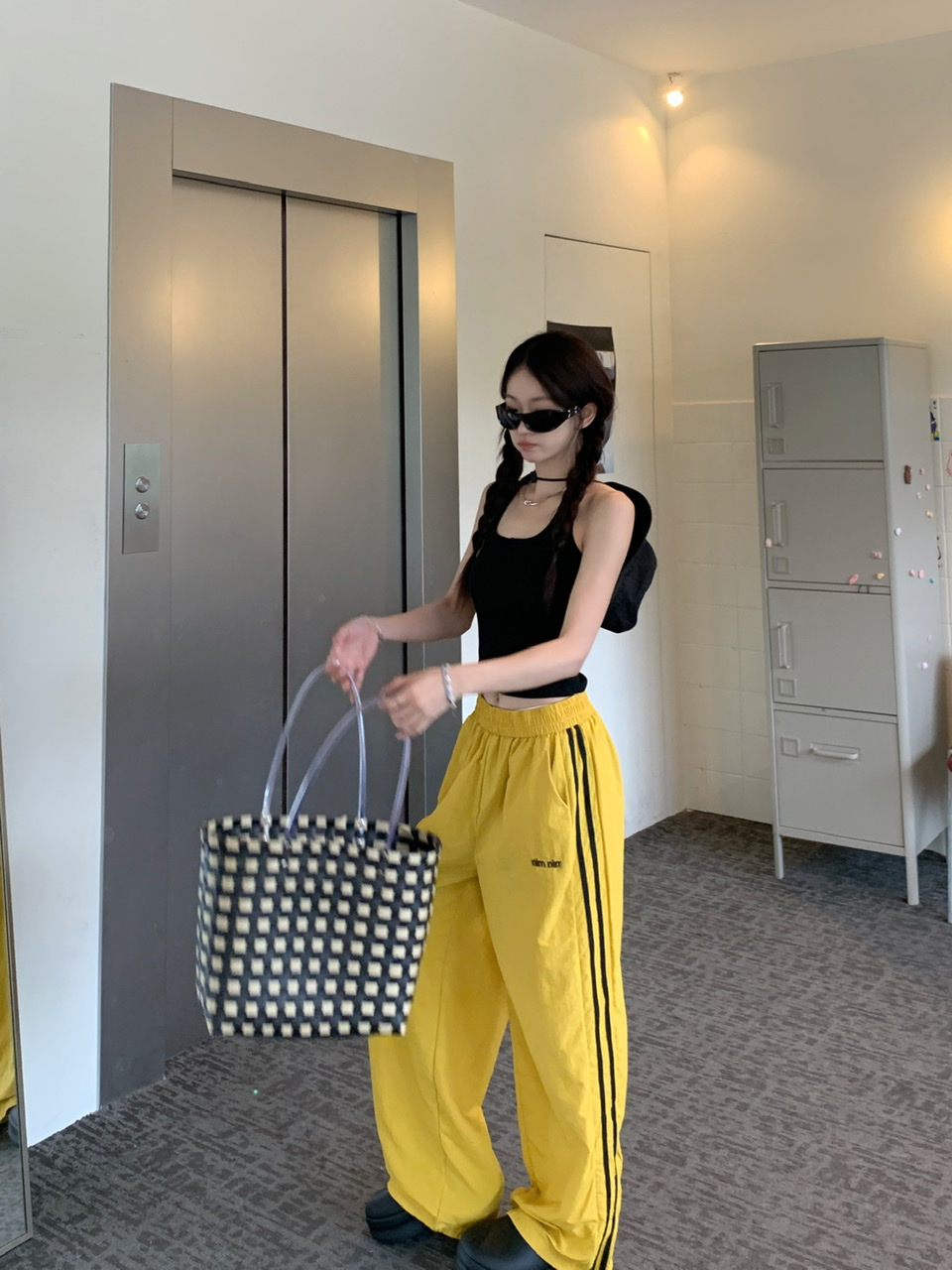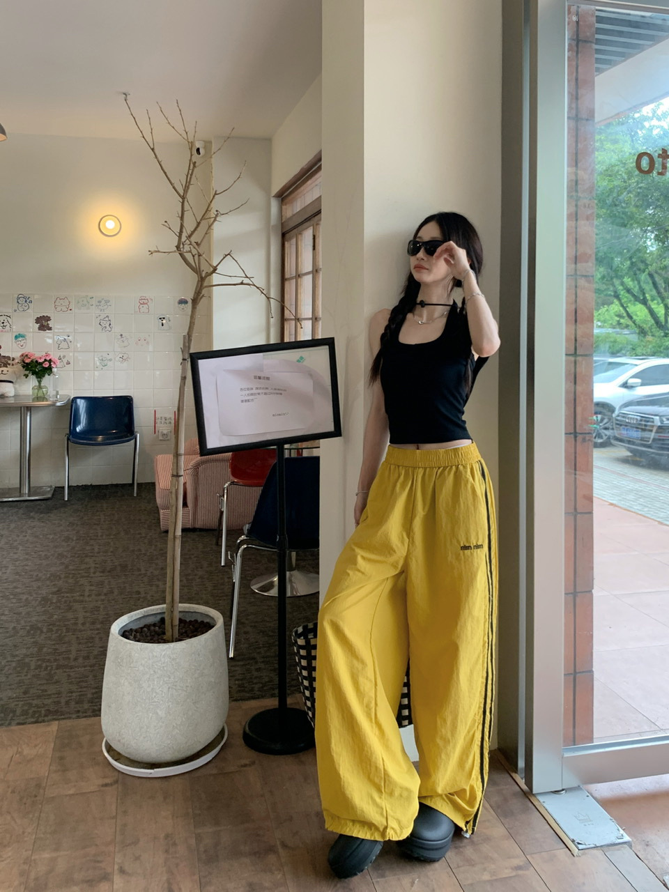 미국식 하이 스트리트 스트라이프 퀵 드라이 와이드 레그 스포츠 바지 여성의 얇은 느슨한 슬림 캐주얼 바지 바지스토어 가기