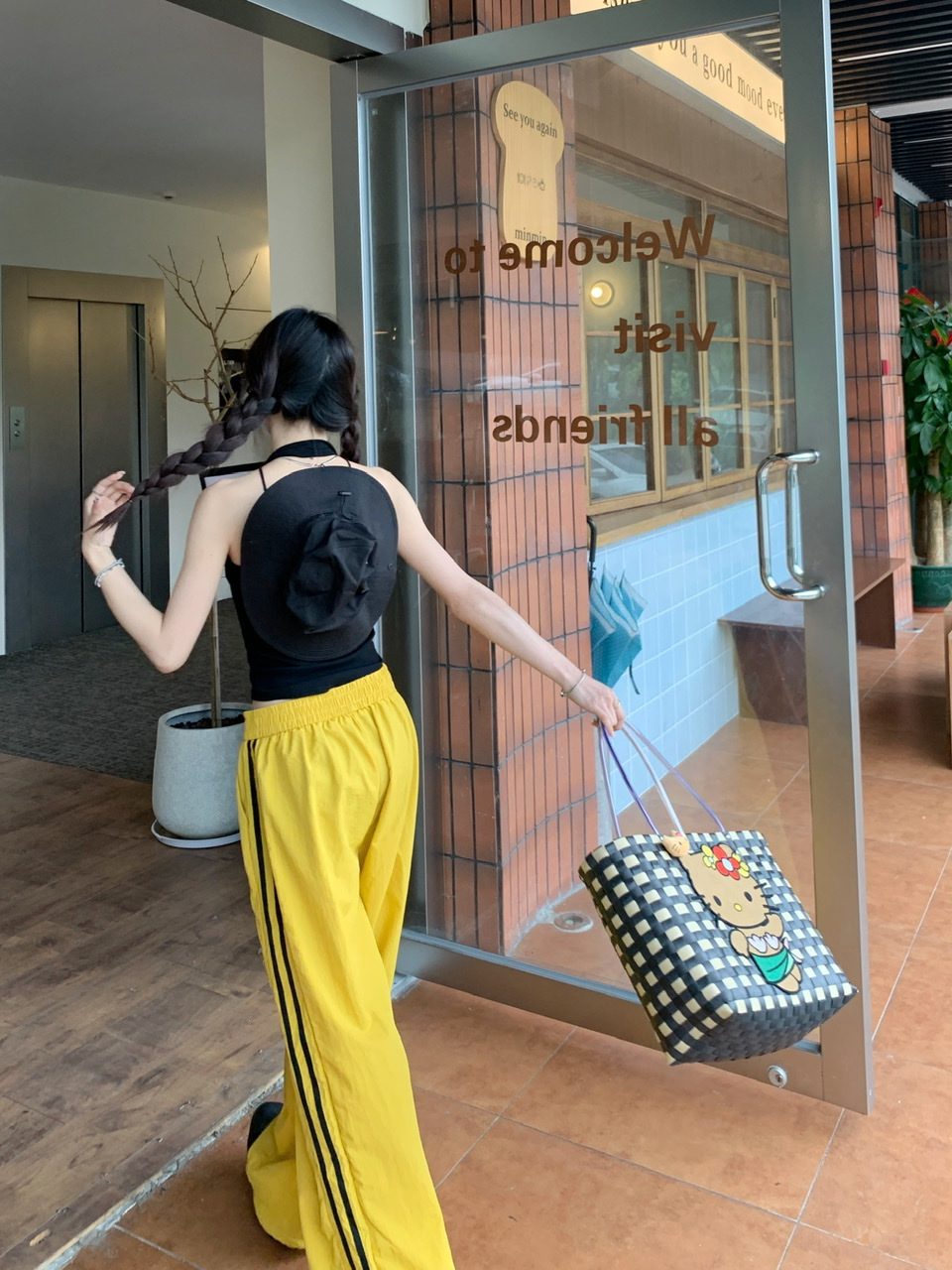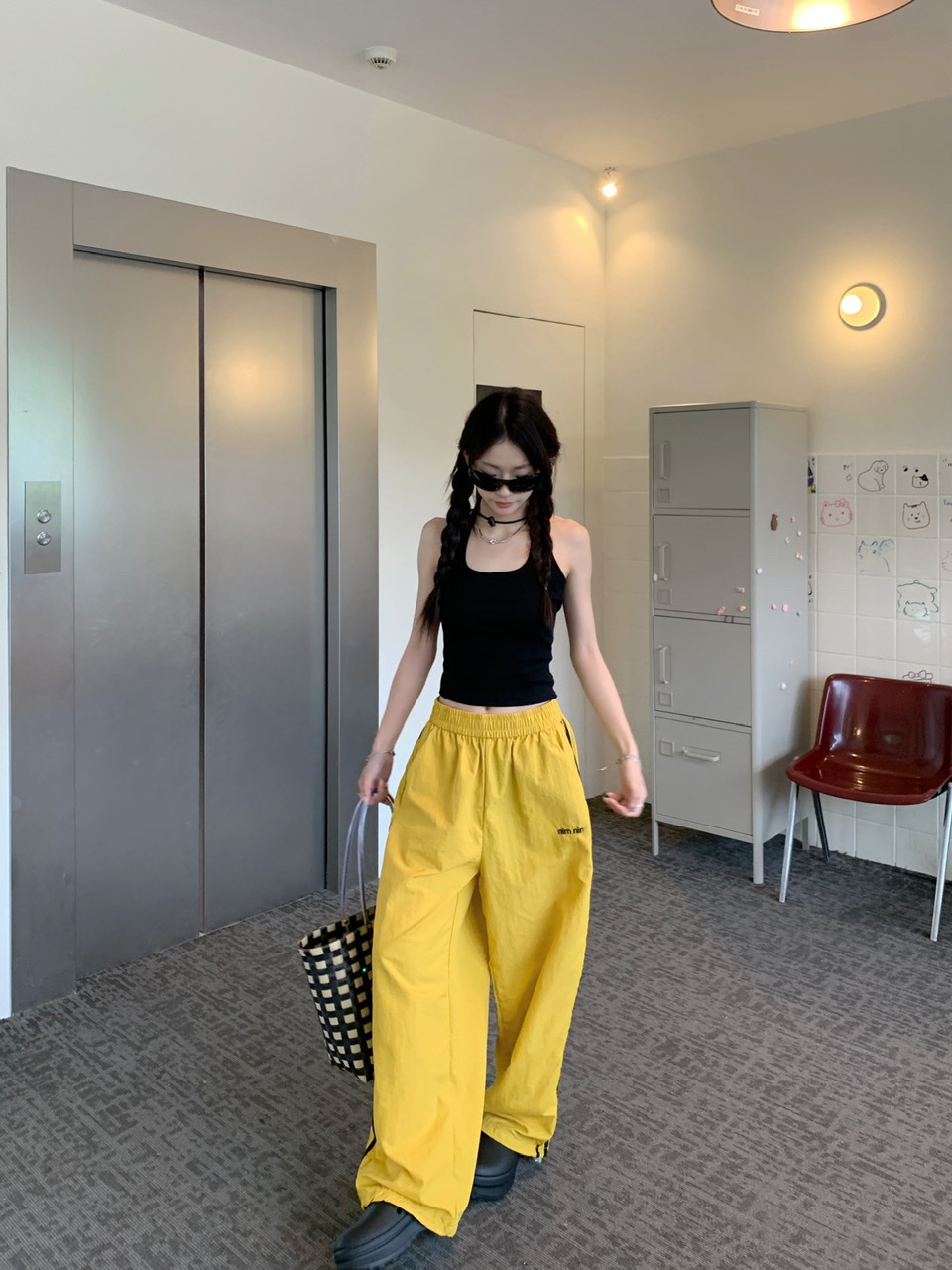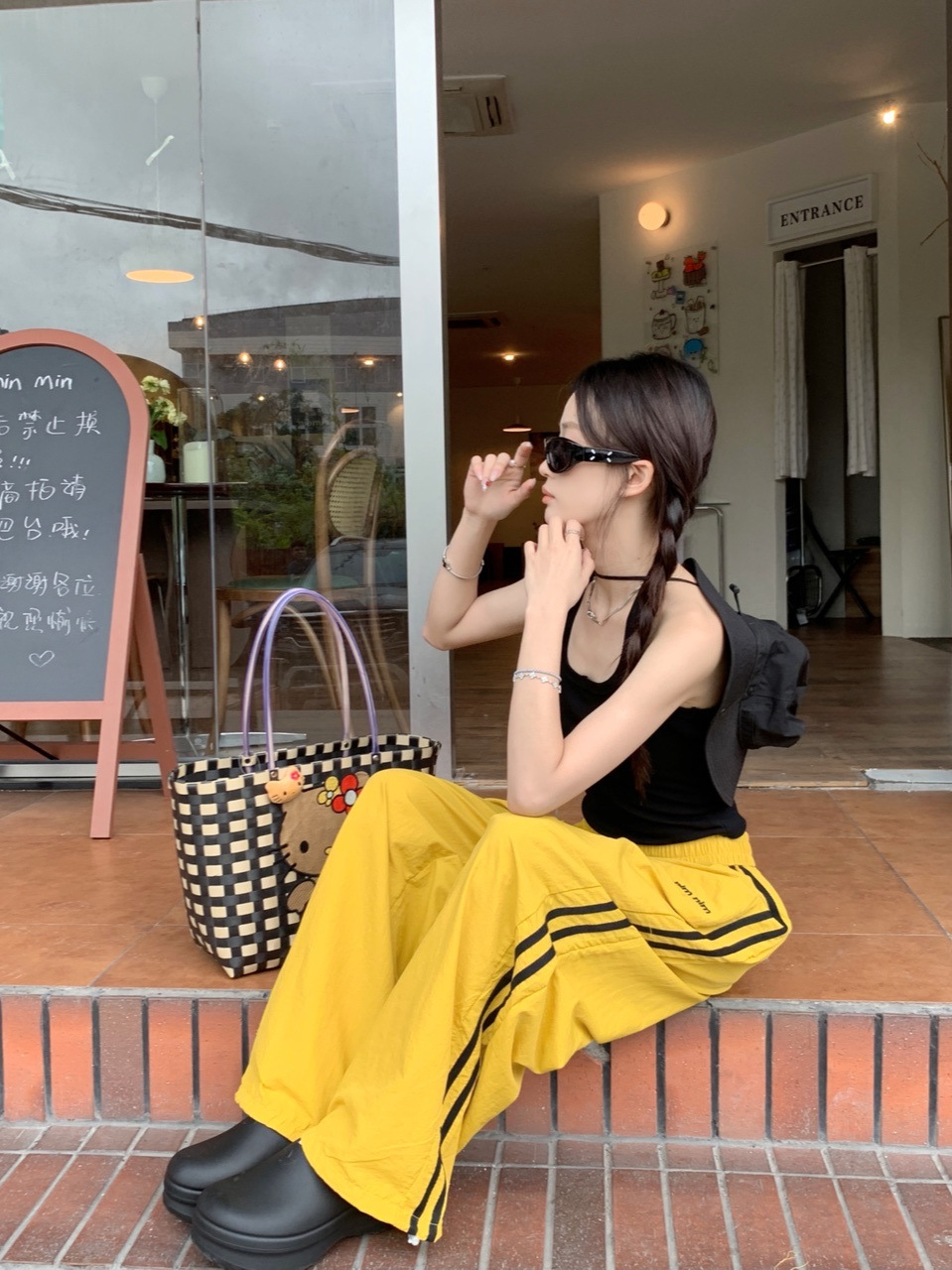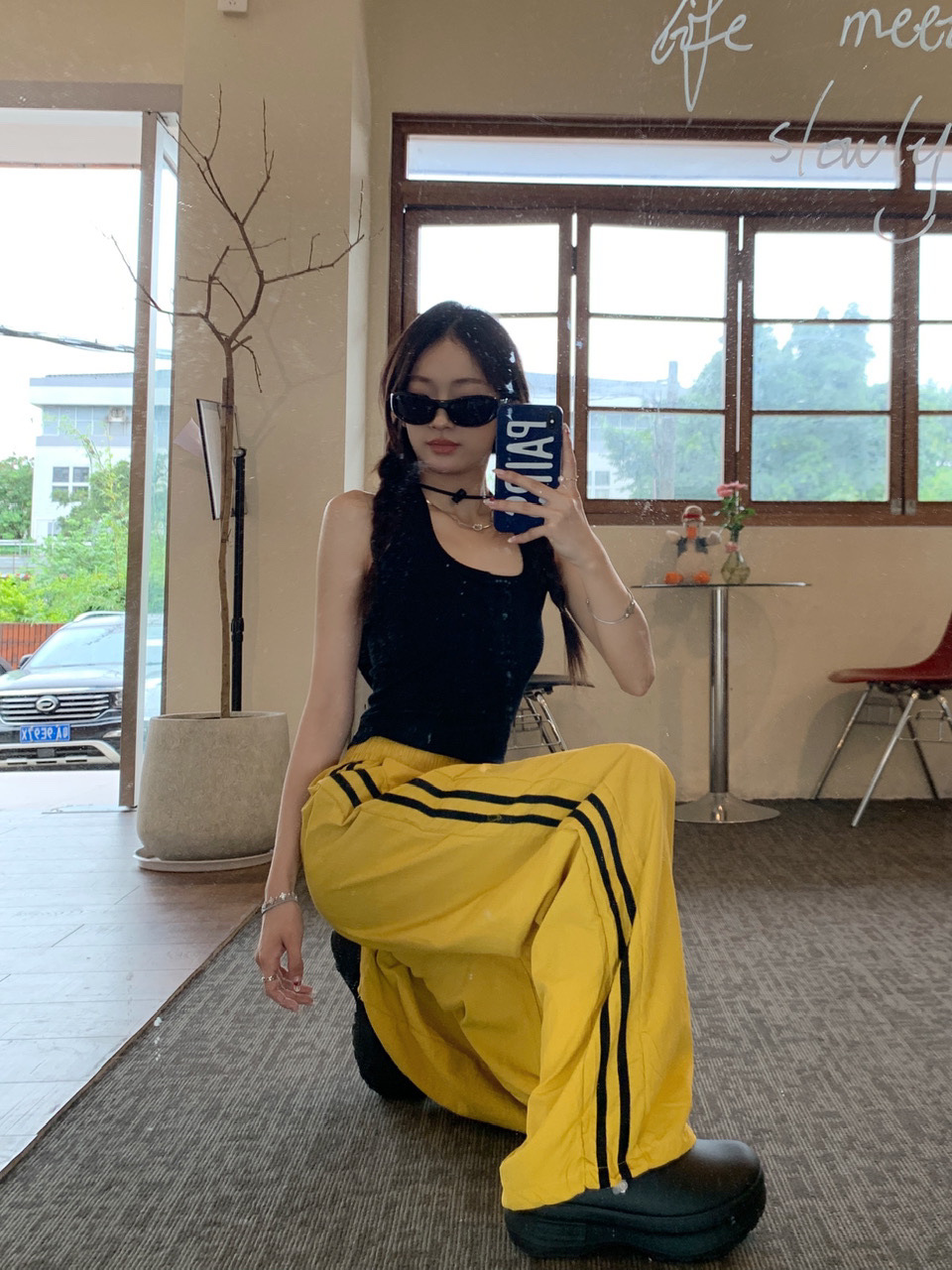 미국식 하이 스트리트 스트라이프 퀵 드라이 와이드 레그 스포츠 바지 여성의 얇은 느슨한 슬림 캐주얼 바지 바지스토어 가기