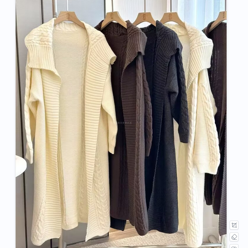 2025 가을 신상 레이지 스타일 꼬임 롱 스웨터 여성용 가디건, 크로스보더 라펠 루즈핏 두꺼운 니트 코트스토어 가기