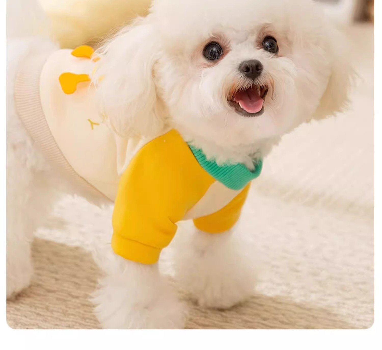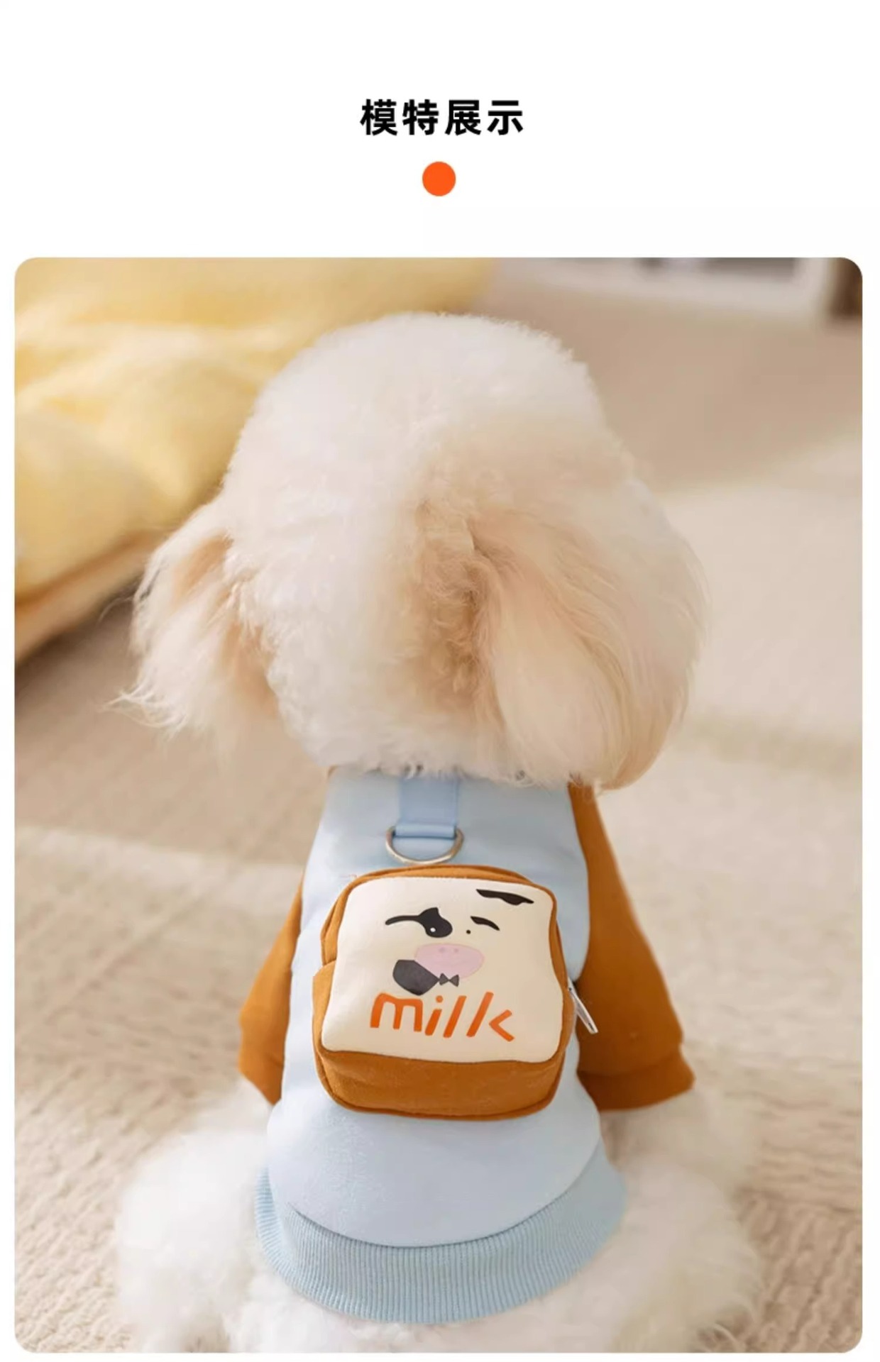 가을, 겨울 개 귀여운 만화 배낭 고양이 두 발 스웨터 얇은 벨벳 따뜻한 비숑 테디 애완견 옷