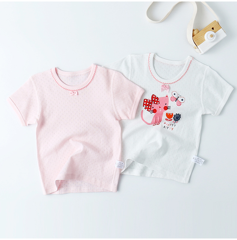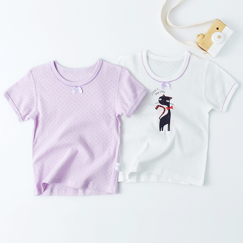 유행 올 매치 소녀의 순수 코튼 메쉬 반소매 셔츠 귀여운 레이스 칼라 여성의 보물 얇은 짧은 소매 소녀의 만화베이스스토어 가기