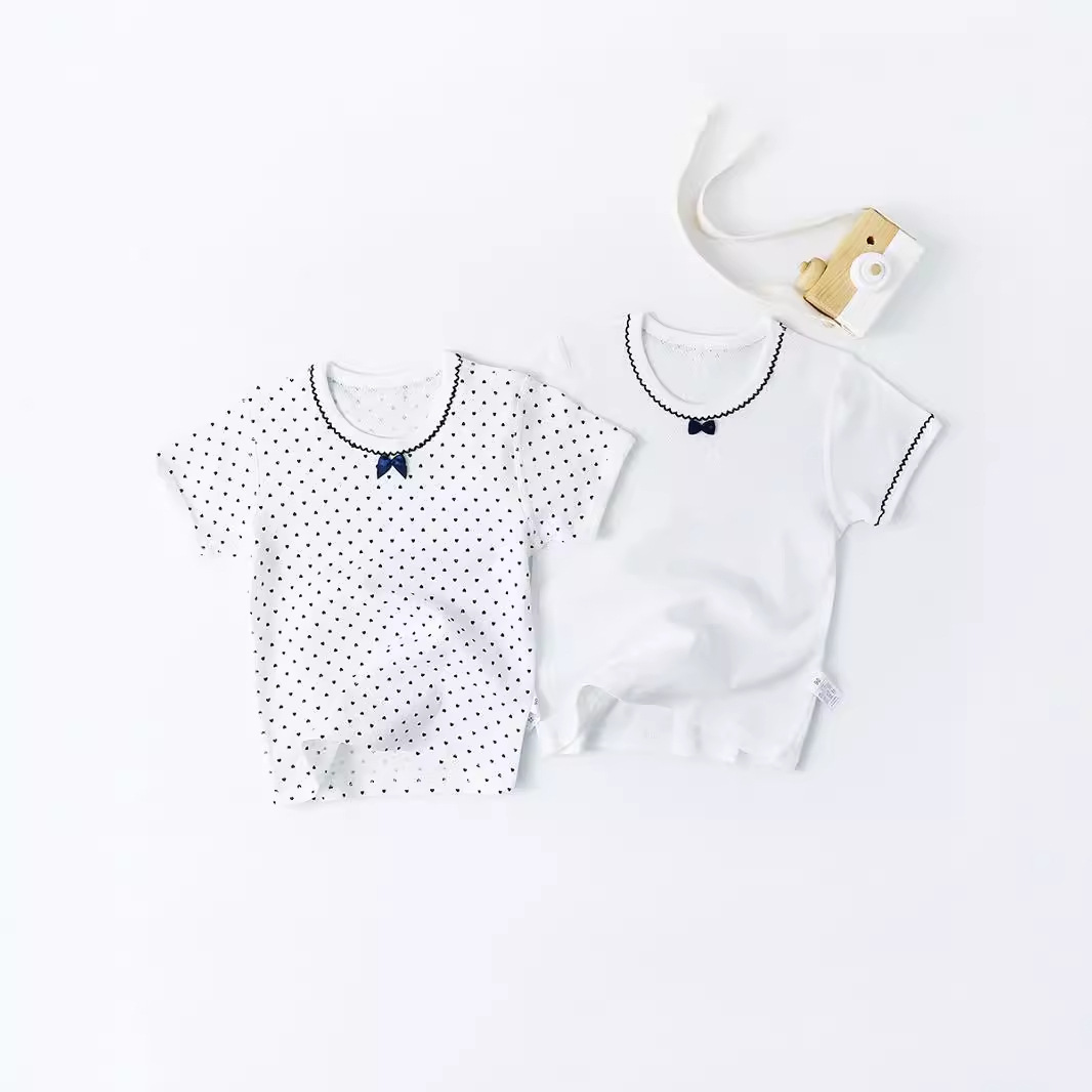 유행 올 매치 소녀의 순수 코튼 메쉬 반소매 셔츠 귀여운 레이스 칼라 여성의 보물 얇은 짧은 소매 소녀의 만화베이스