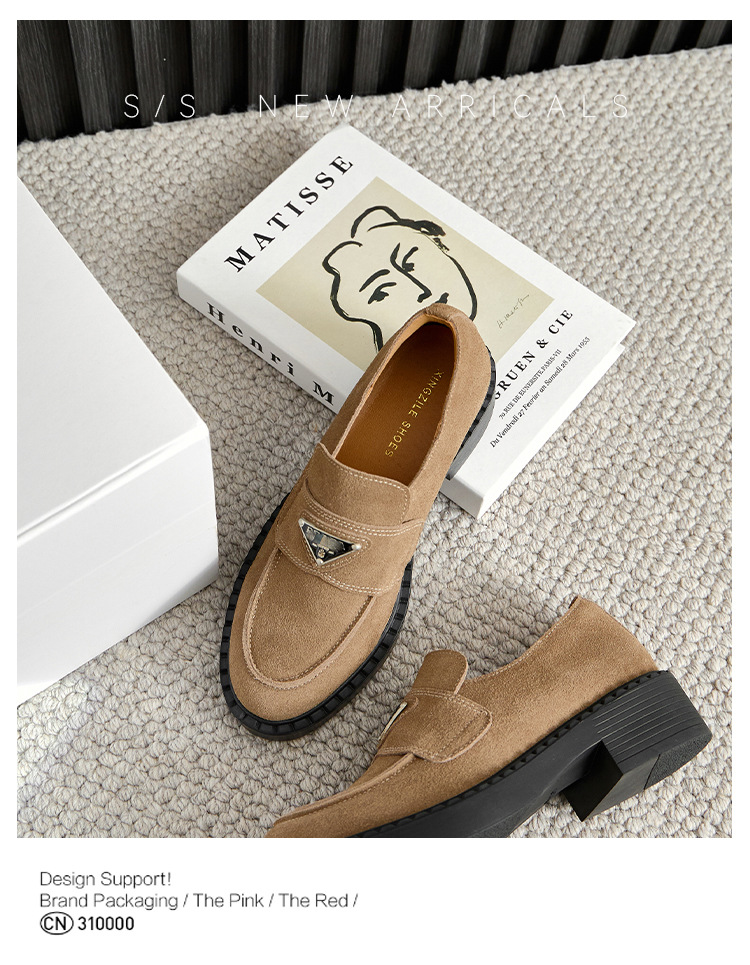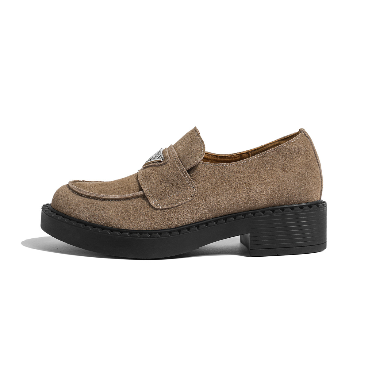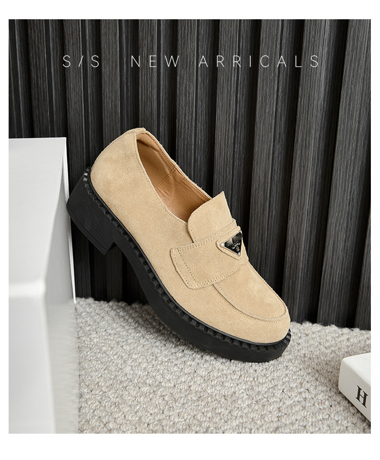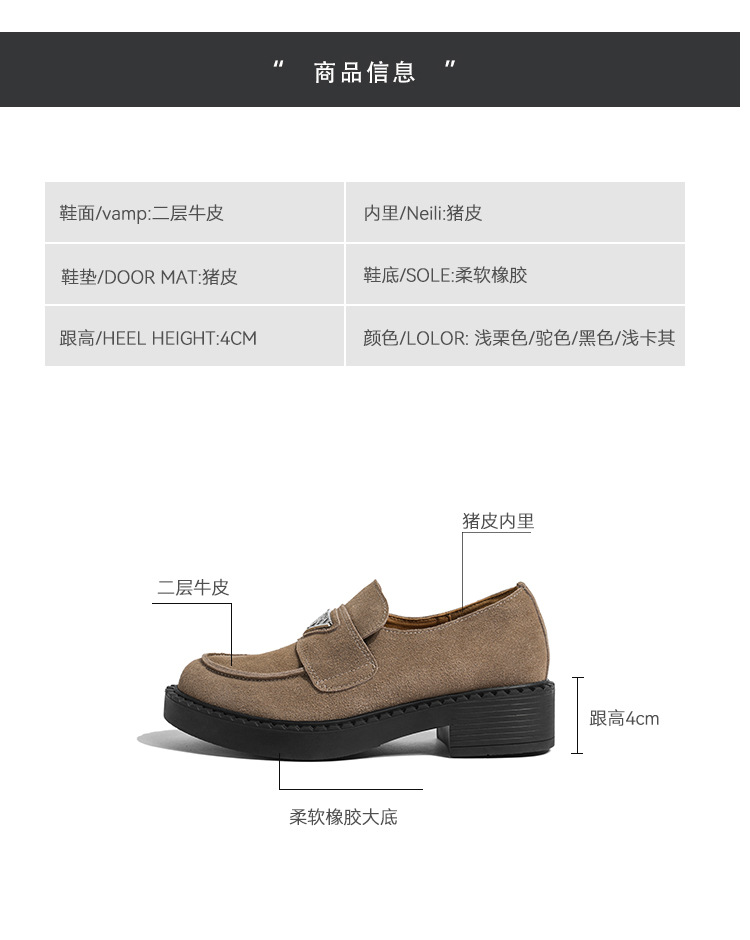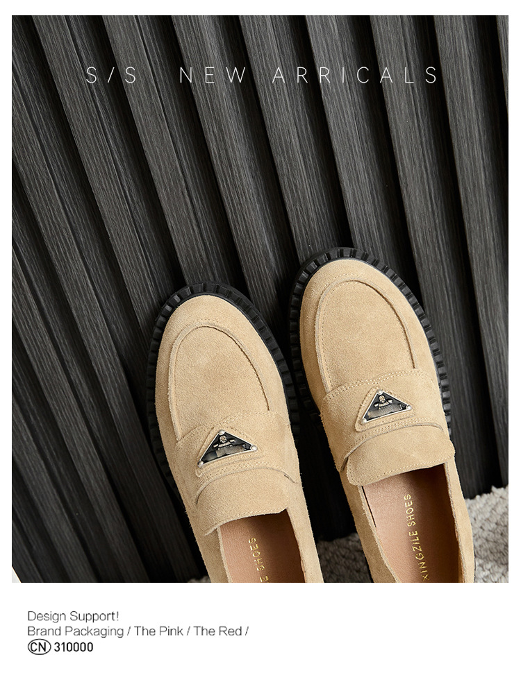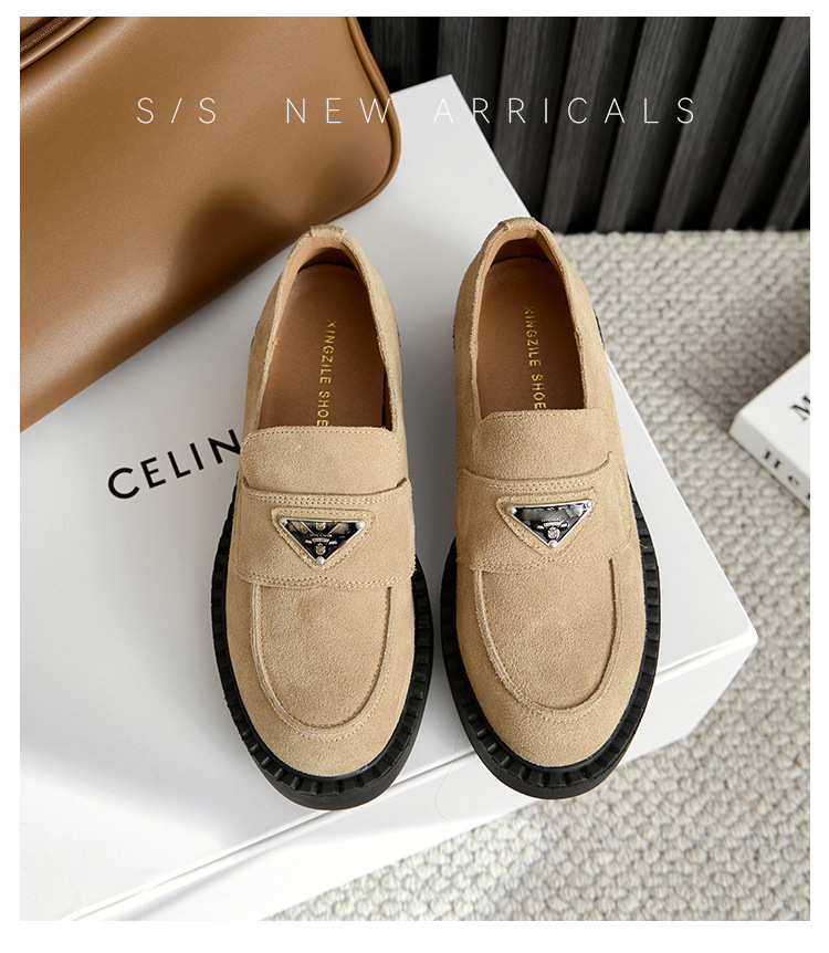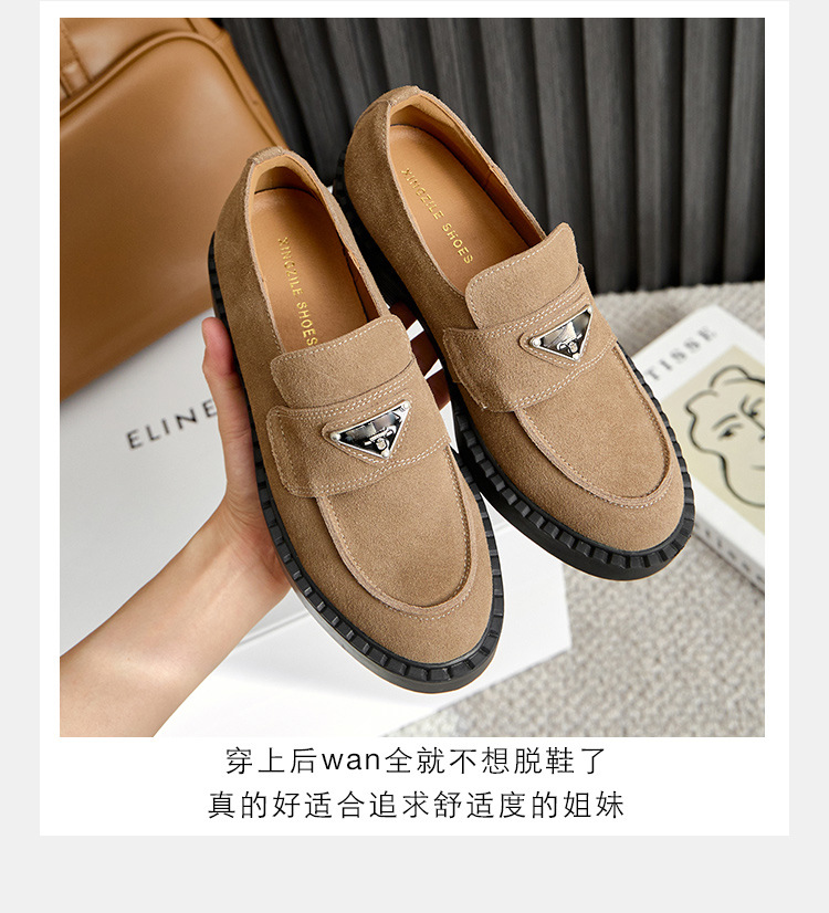 Cowhide 가죽 로퍼 여성의 두꺼운 힐 두꺼운 바닥 삼각형 2024 새로운 스타일 슬립 온 레트로 영국 스타일 작은 가죽 신발스토어 가기