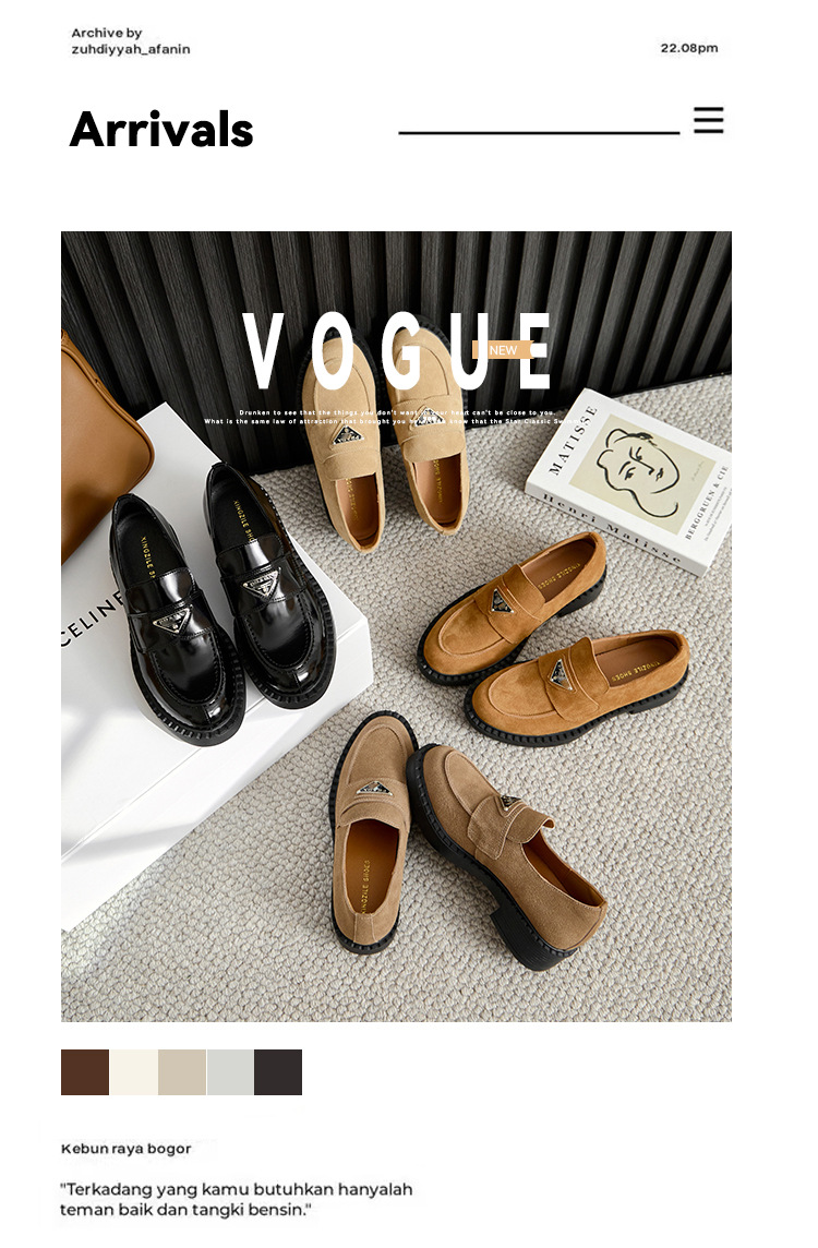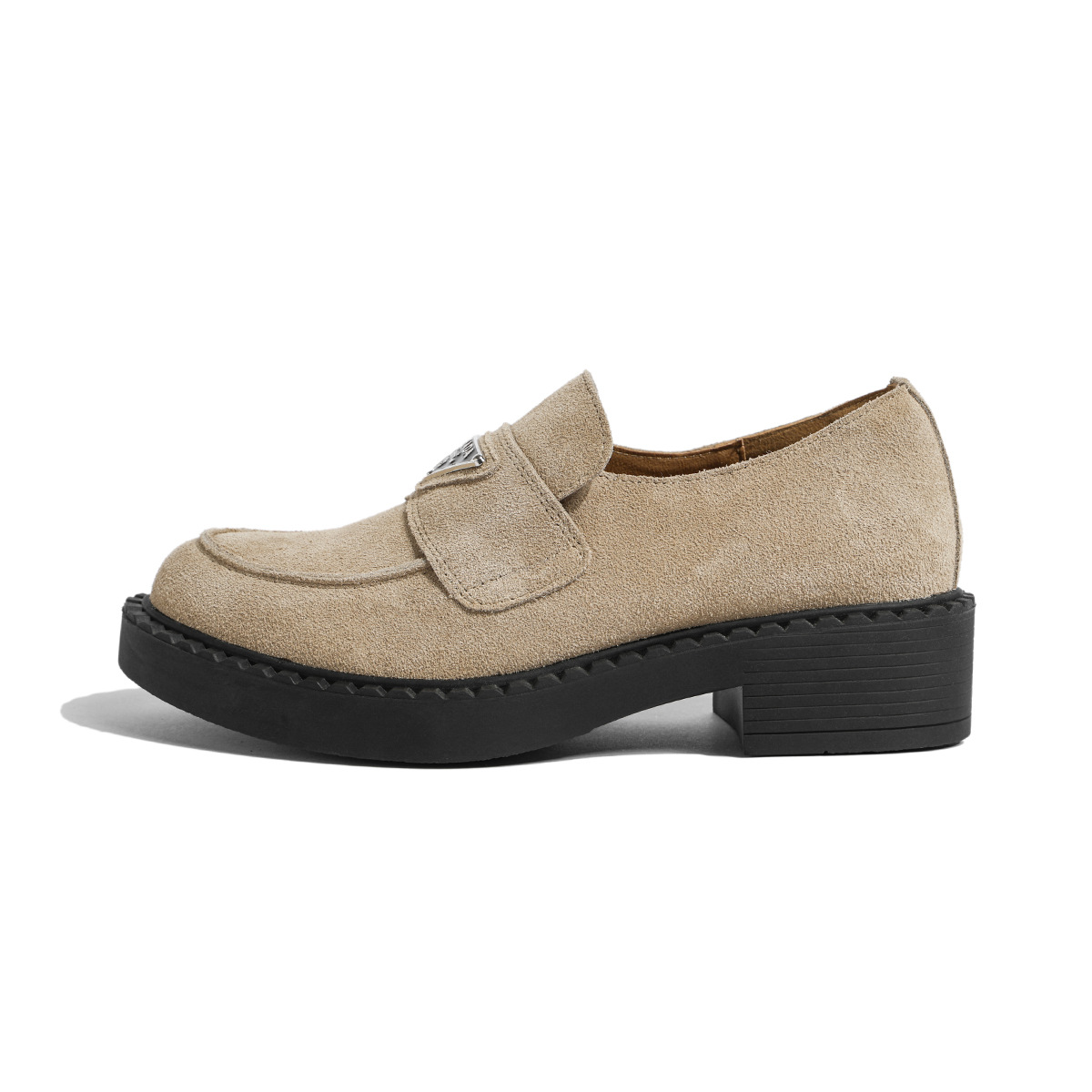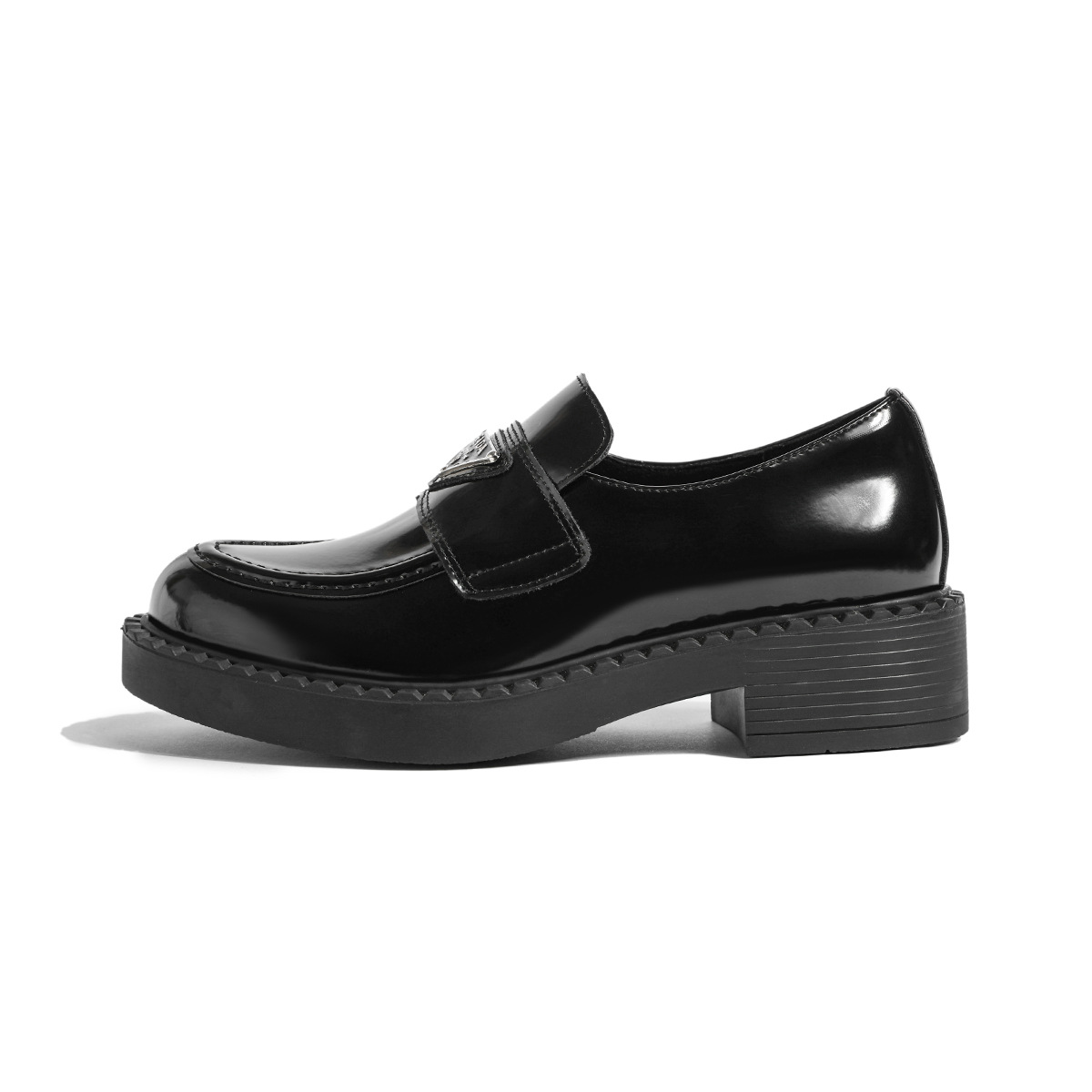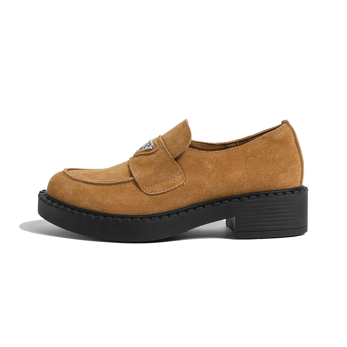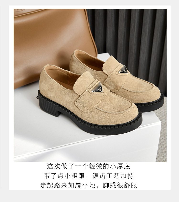 Cowhide 가죽 로퍼 여성의 두꺼운 힐 두꺼운 바닥 삼각형 2024 새로운 스타일 슬립 온 레트로 영국 스타일 작은 가죽 신발스토어 가기