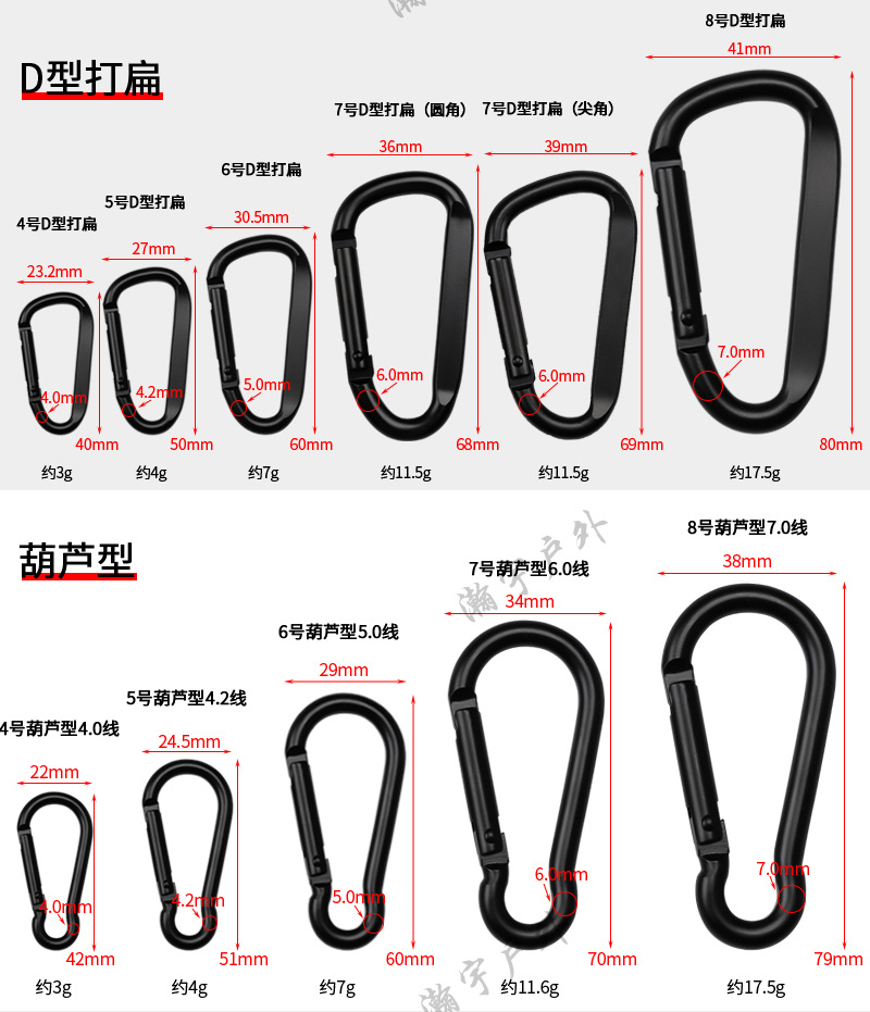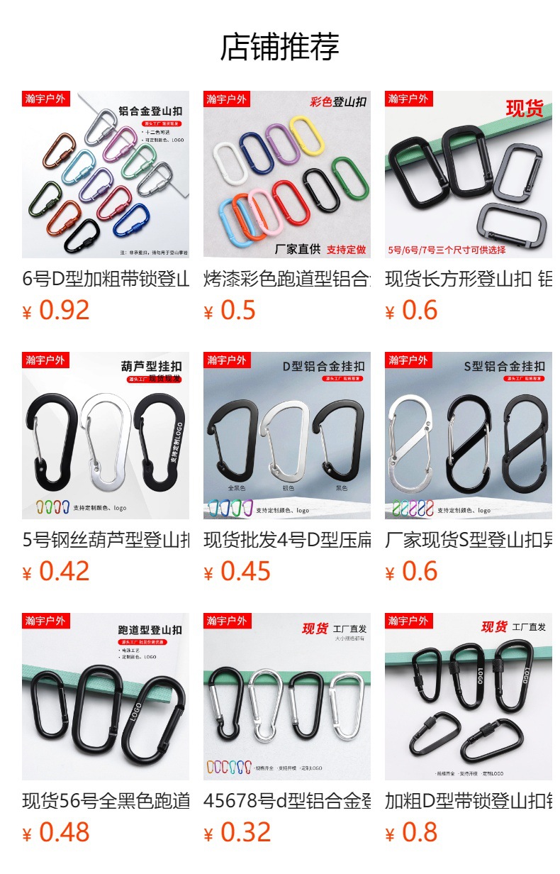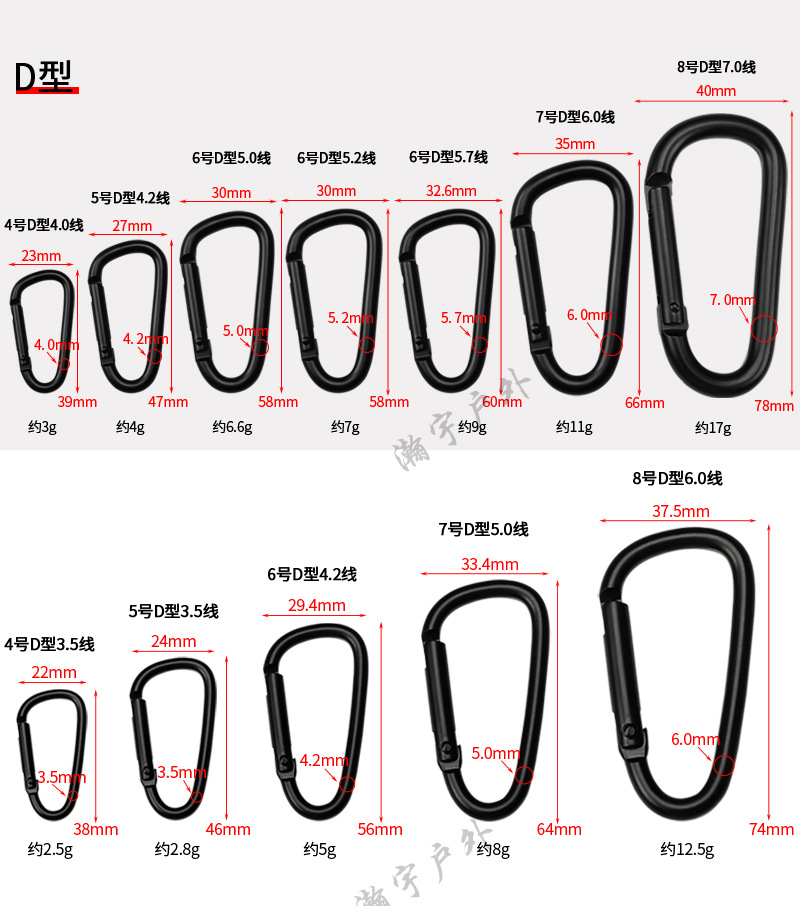 스팟 No. 45678 d 유형 알루미늄 합금 카라비너 조롱박 버클 야외 등산 버클 퀵 후크 제품 로고 사용자 정의스토어 가기